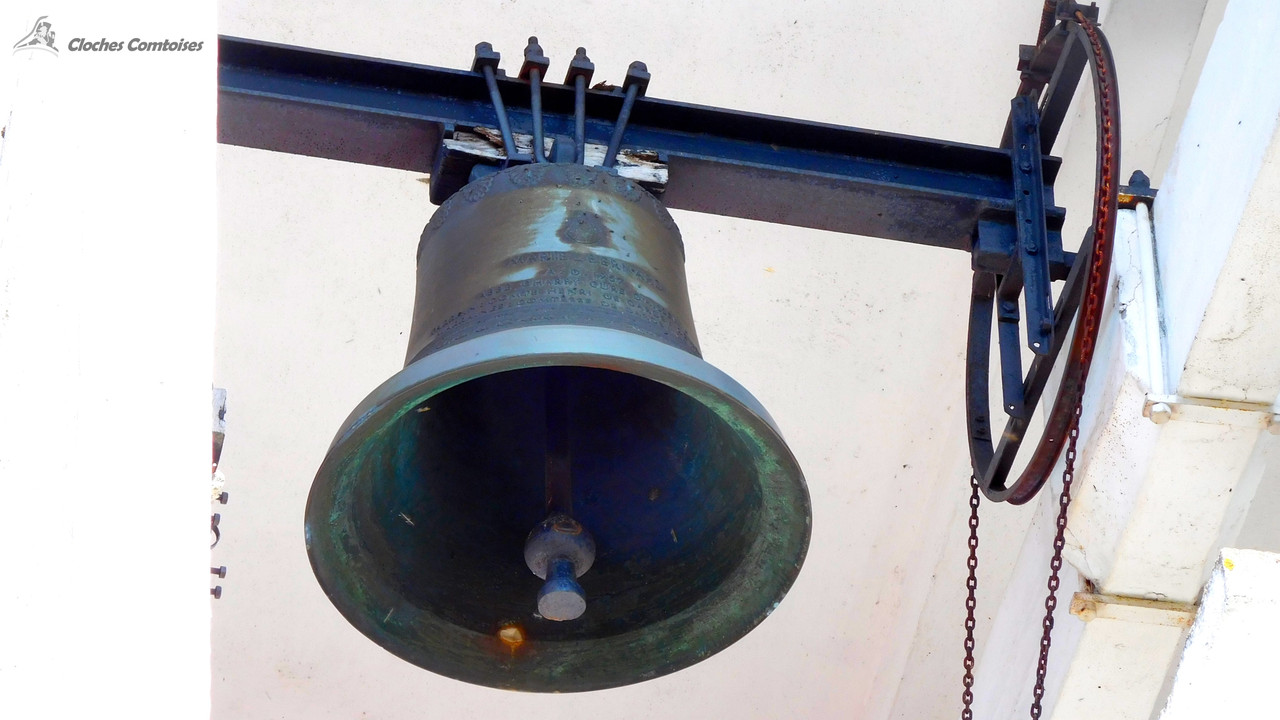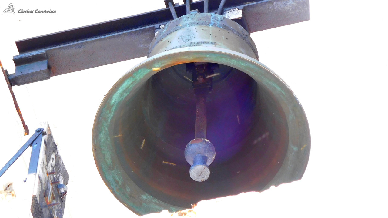 Nom: « Marguerite-Jeanne », Diamètre 110 cm env., Poids 800 kg, Fondue en 1 957 par Paccard, à Annecy-Le-Vieux. Chante le Fa3