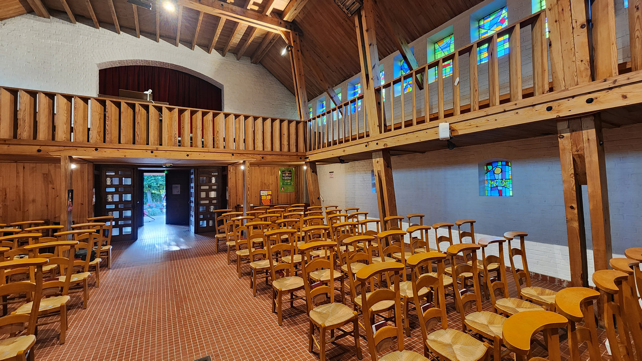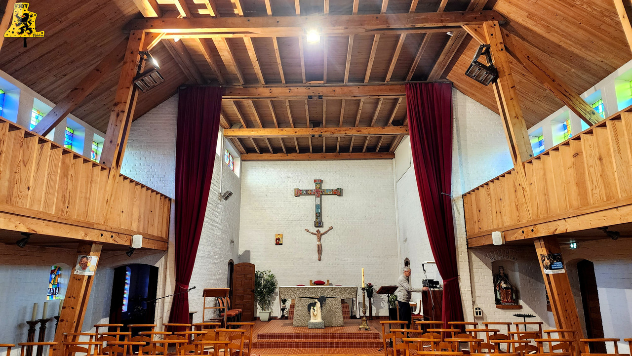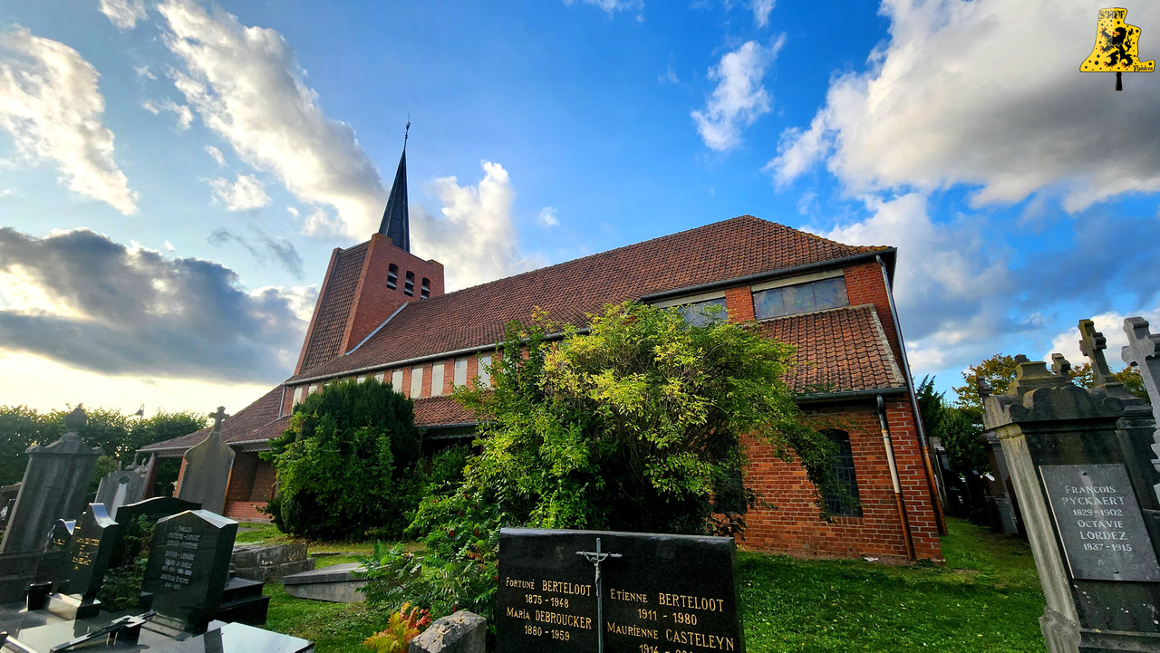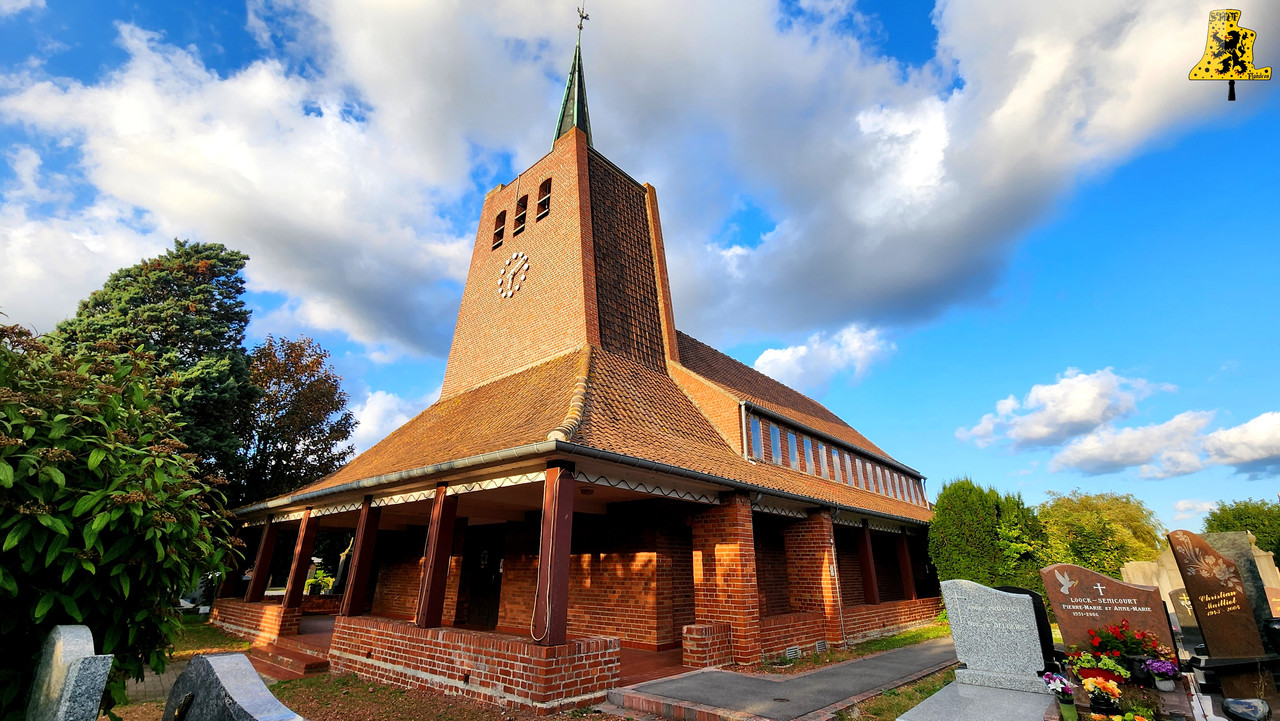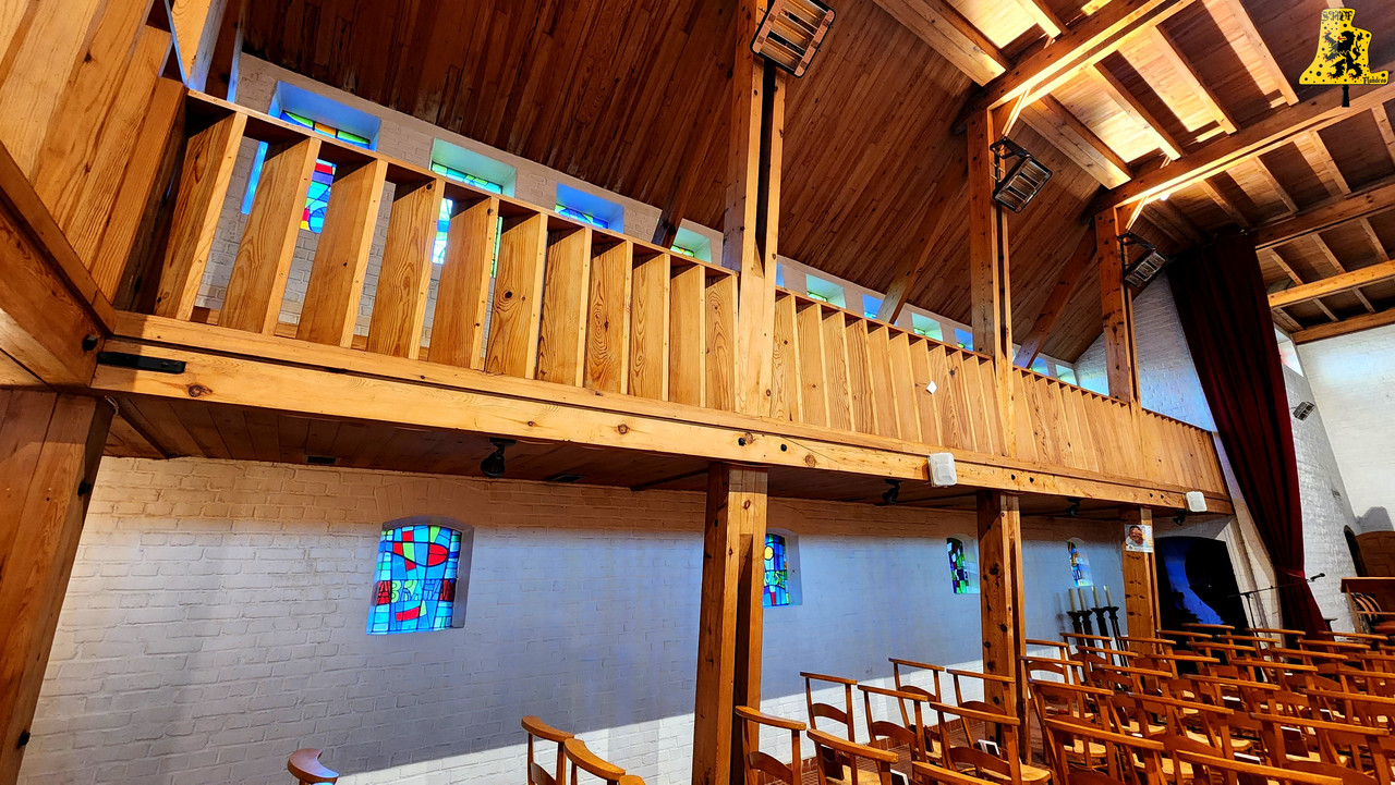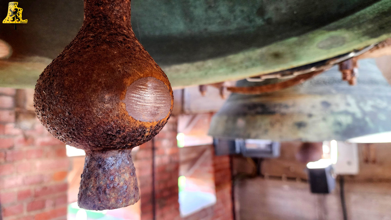 C‘est à Armbouts-Cappel, village de 2 150 habitants, que je vais me rendre, pour vous partager le patrimoine campanaire de la commune. A titre personnel, je suis très heureux de reprendre mes visites en Flandre, après plus d’un an et demi d’absence ici. L‘église de cette charmante commune fut construite en 1 957, à la suite de la destruction durant la 2e guerre mondiale de l’ancienne église du village. Construite avec un style extérieur plutôt moderne, ses dimensions sont relativement modeste, le clocher pointe à environ 20 petits mètres du sol. L‘intérieur n’est pas en reste, et est particulièrement joli. En effet, l’alliance entre bois et Briques se fait à merveille, le mobilier, moderne lui aussi, sublime encore un peu plus cet espace chaleureux. Enfin, il est intéressant de noter, que les vitraux de l’église sont classés, ils sont les œuvres de Jean Bertholle. L‘accès à la chambre des cloches est relativement simple, il nous faudra gravir en tout, 10 mètres avant de pouvoir apercevoir les cloches. Ces cloches se comptent au nombre de 3. Elles reposent toutes sur des poutres en béton armée, le béton armée est un alliage d’éléments tels que du ciment, gravier et sable, qui, en plus de ça, vient s’ajuter de la ferraille. La description sera expresse, puisqu’elles ont toutes été fondue dans les ateliers Paccard d’Annecy-Le-Vieux, le 28 septembre 1 958. La plus grosse des cloches prend le nom de Pierre, son diamètre est de 90 cm, pour un poids de 440 kg. La moyenne, Paul de son prénom, pèse 320 kg, pour un diamètre de 80 cm. Et la plus petite, avec un poids affichant 225 kg, se nomme Jacques. Son diamètre dépasse légèrement les 70 cm. Les cloches sont entretenues, mais l’air marin, bien plus corrosif qu’à l’intérieur des terres, use davantage les équipements des cloches. cependant, le joug de la plus petite des cloches fut changé. Enfin, comme vous avez pu le constater, il manque la chasse du battant de la grosse cloche, vraisemblablement brisé du à la rouille, et, du fait de cet incident, la cloche boîte énormément. En tout cas, ça n’enlève en rien ma grande satisfaction que d’être venue ici, et avec ce joli petit Pater-Noster en La3, Si3 et Do#4, ça met de bonne humeur.