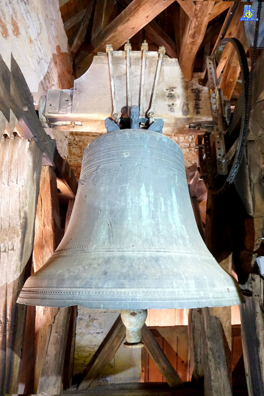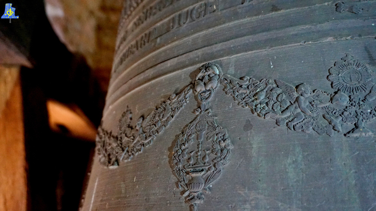 C‘est déjà la 5e et dernière visite de cette escapade bourguignonne en deux jours, mais que ce fut intéressant de le vivre! C’est dans le charmant village de Baigneux, pour les intimes, que j’ai la chance de me rendre pour écrire ce petit article. Bien que l’église, tout du moins son clocher, ne parait pas grand, une sonnerie relativement imposante s’y trouve. C’est après une ascension de 20 mètres, que nous pouvons admirer les 4 cloches! Les cloches sont disposées de façon suivante, les deux plus grandes sont situées dans le 1er niveau, alors que les deux plus petites sur le second, mention spéciale pour la plus petite, qui a son sens de volée perpendiculaire aux trois autres cloches. Commençons par la plus grosse, prénommée Marie-Antoinette, a été fondue en 1 849 par Richebourg-Petitfourt d’Arbot en Haute-Marne, tout comme ses trois autres soeurs d’ailleurs, en revanche, elle est la doyenne. D’un poids de 975 kg, pour un diamètre de 120 cm, cette cloche chante le Mibémol, malheureusement lors de notre passage, le moteur de volée était fatigué, la cloche peinait à sonner de façon homogène.. La deuxième se nomme Emilie-Louise et date de 1 885, elle est bien moins lourde que sa grande sœur, puisqu’elle peine à dépasser les 500 kg, son diamètre quant à lui, est de 98 cm environ, enfin, elle donne la note du Solbémol. La troisième cloche se nomme à l’inverse de sa sœur précédemment citée, Louise-Emilie. De même époque aussi, elle pèse 330 kg pour un diamètre de 80 cm, elle chante le Sibémol. Enfin, la cloche la plus intrigante est sans conteste la plus petite, aucun nom, aucune inscription hormis celle du fondeur ainsi que sa date, 1 858. Cloche oubliée de ses habitants elle fut, selon toute vraisemblance, affectée à sonner dans l’école du village durant les premières décennies de sa vie, avant d’être, comme à Magny-Lambert, montée au clocher, malheureusement, elle n’est pas électrifiée pour la volée.. Vous pouvez entendre plus bas dans l’article, cette charmante cloche volée à la volée, en revanche, même avec un angle de quasi 180°, elle a du mal a se décider entre le lancé Rétro-Mitigé, et le Lancé-Franc… Bien dommage. Pour conclure, cette cloche de 25 kg a un diamètre de 37 cm, et donne la note du Sibémol 4