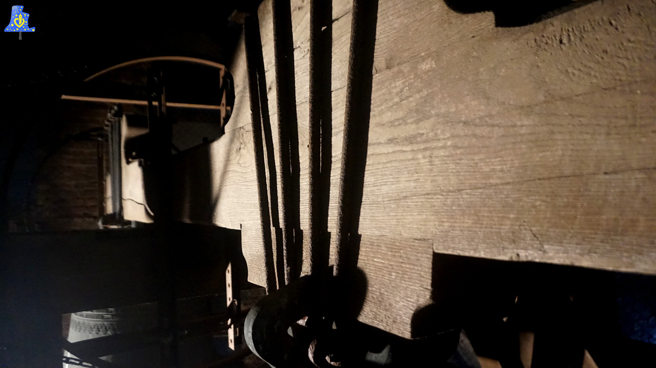 C‘est à Bailleul, commune de 14 500 âmes, que je me rends pour cette première découverte sous ce pseudonyme de « SHDF, comprenez « Sonnerie Hauts-De-France », c’est avec plaisir qu’après une ascension de 35 mètres, nous pouvons observer ces 1ères cloches! Elles sont au nombre de 4, 4 Cloches de Georges Farnier, Fondeur de Robécourt. Elles ont été refondues après la 1ère guerre mondiale, à la suite de la destruction de l’église. Je vais commencer la présentation de la plus petite, à la plus grande des cloches. La plus petite porte le nom de Marie, cette cloche remplace une cloche qui était datée de l’an 1 680, elle mesure 98 cm pour un peu plus de 560 kg, elle donne la note du Sol# du 3e octave. Elle se situe au-dessus du Bourdon. La cloche 3, d’un diamètre de 110 cm, porte le nom d’Antoine, cette cloche remplace aussi une autre cloche plus ancienne, celle-ci fut fondue en revanche en 1 683. Pour finir, elle affiche sur la balance, un poids de 820 kg environ. La deuxième cloche grosse cloche, sous le nom de Vaast-Léonard, pèse la bagatelle de 1 165 kg, pour un diamètre de 124 cm, tout comme ses 2 petites sœurs, elle remplace une autre cloche, elle était datée elle aussi de 1 683! Enfin, le bourdon, la plus grosse des cloches, se nomme tout simplement Jésus, elle a un très beau diamètre de 166 cm, et un poids honorable de 2 870 kg! Cette cloche donne la note du Sib2! Elle ne remplace d’après ses inscriptions, aucune cloche. Cependant, elle ne peut sonner à la volée depuis quelques années, puisque le joug (La partie en bois qui soutien la cloche) s’affaisse dangereusement, un jour est visible de 5 millimètres entre les deux pièces de bois formant un « U ». Toutes ces cloches forment l’accord suivant: Sib2, mib3, Fa3, Sol3, et ont été fondues en 1 932. Petit bonus, la présence d’une 5ième cloche en l’église, en effet, une petite cloche est actuellement expose à côté du maître-autel, fondue par un certain Biron (De Paris), on de sait ni sa date, ni son nom ou même parrain/marraine, aucune inscription ne figure sur cette petite cloche.
