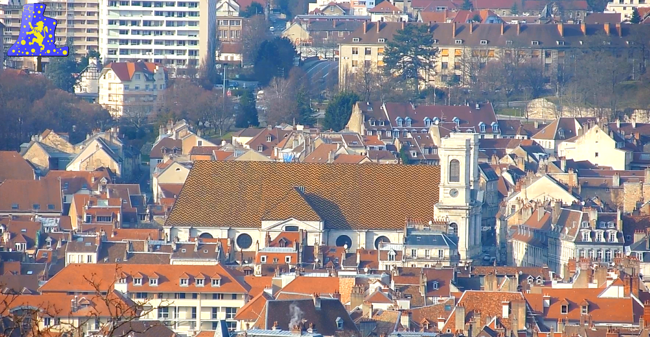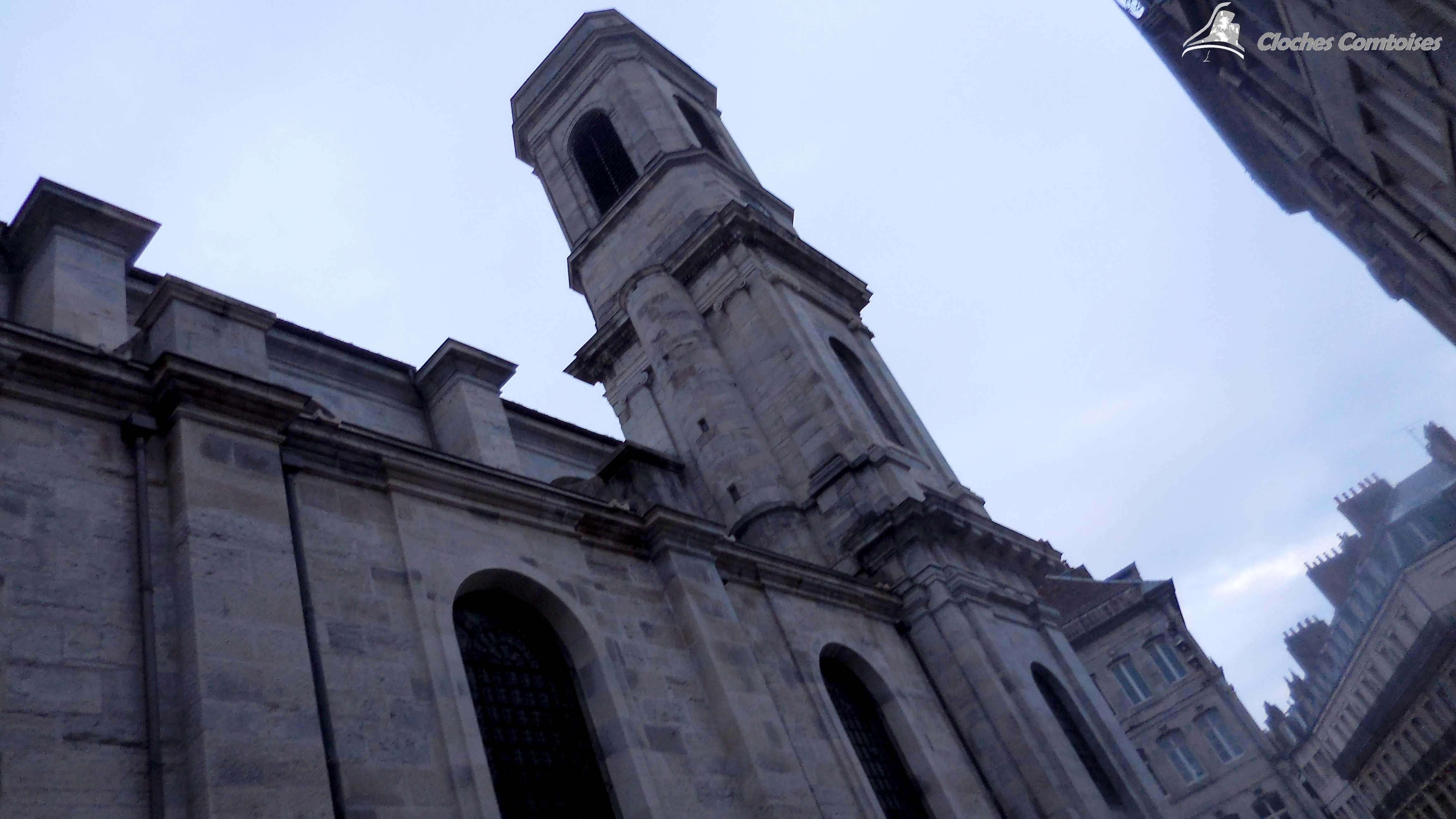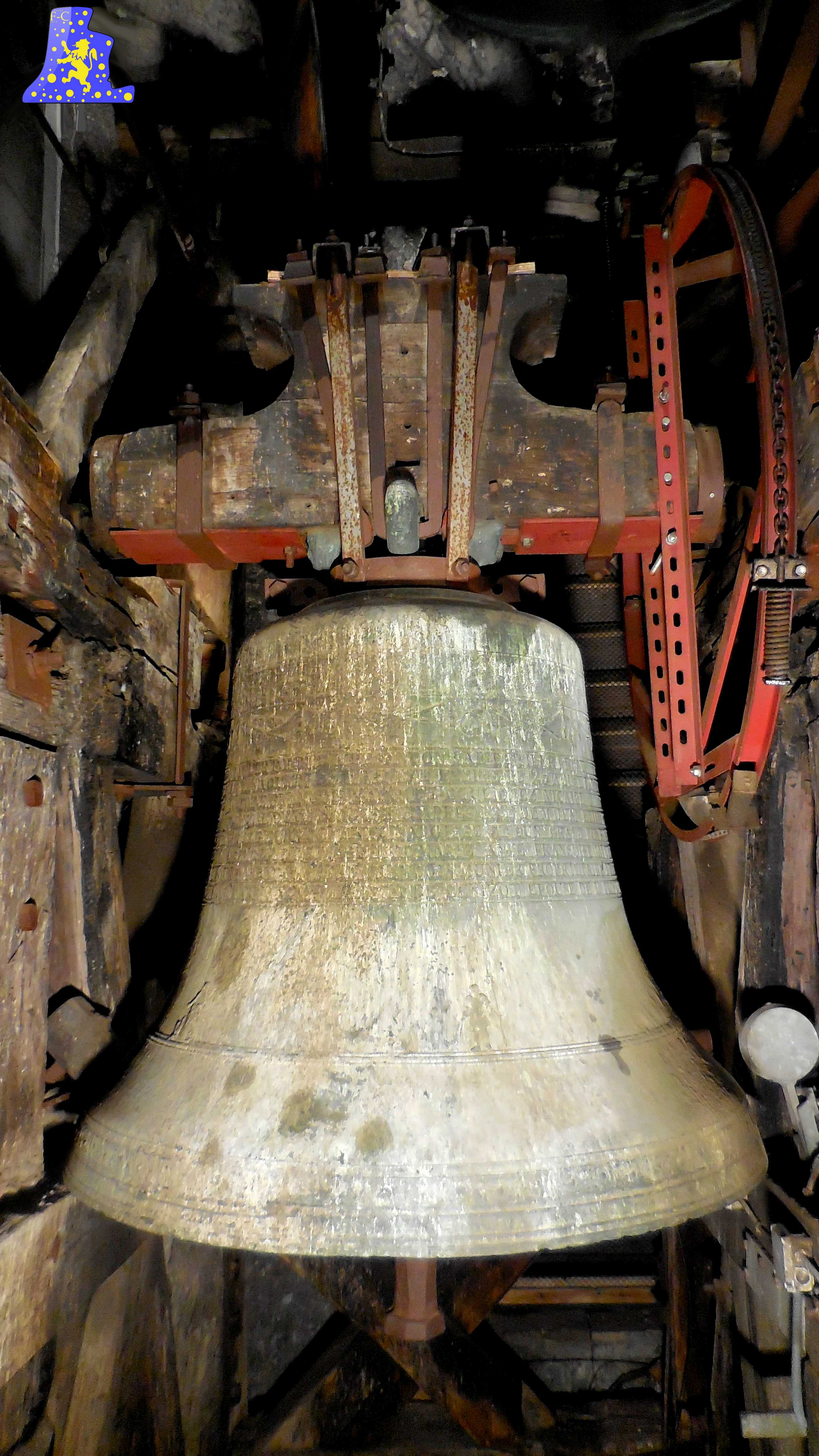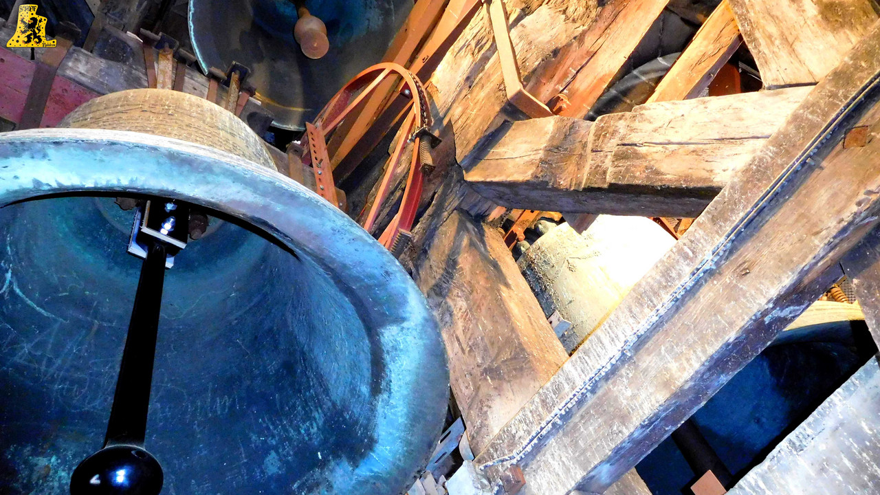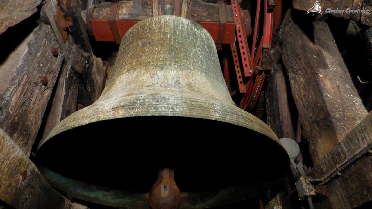 Je suis heureux aujourd’hui, de réécrire l’article sur l’une des plus grosses sonneries de la capitale comtoise! L‘église de la madeleine, comme les locaux l’aiment l’appeler, est un véritable point de repère. En effet, l’église est située en plein cœur du quartier Battant, vieux quartier qui marque l’entrée dans la partie historique de la ville, avec notamment son célèbre quartier du centre-ville, nous nous appelons « La Boucle ». Ce qui nous intéresse vis-à-vis de cette église, ce sont bien sûr ses cloches. En façade, nous pouvons déjà en admirer 3, ou plutôt, deux, plus une « Demi cloche ». La cloche sur laquelle se repose Jacquemard, le soldat marionnette de battant veillant sur ses habitants, est factice, elle est faite de bronze, mais est « coupée » en deux. Les deux autres en revanche, sont belles et bien réelles. Cependant, l’accès étant inaccessible, je n’ai aucune information à vous communiquer là-dessus. L‘accès aux cloches se mérite, car la chambre des cloches se trouve à au moins 35 mètres du sol. Une fois gravit l’immense escalier nous y menant, nous pouvons observer 3 cloches, toutes issues du fondeur lorrain Gillot en 1 841. Ces trois cloches sont assez imposantes, aucune d’elles ne sont sous la barre des 1 tonne. La plus petite, dont le joug a été changée en 2 016, se nomme Louise-Etiennette, elle pèse 1 110 kg et a un diamètre de 122 cm tout rond. Cette cloche se situe au dessus de la cloche de moyenne taille. Justement , parlons de cette dernière. Nommée Marie-Françoise, le poids qu’elle affiche est d’environ 1 530 kg, son diamètre quant à lui, dépasse les 137 cm. Cette cloche a subi les affres du temps, comme en témoigne la fixation des anses au joug, son battant s’est vu être changé peu après mon 1er passage ici (Visible sur la vidéo, et la photo de vu d’ensemble. La plus grosse des cloches, dont le poids dépasse les 2 tonnes, fait un diamètre de 152 cm. Je n’ai, hélas, pu trouver de nom, dû a mon manque de temps.. Et à mon inexpérience. Ces cloches, chantent le Do, Ré et le Mi de la 3e octave, formant ainsi, un joli pater-noster pesant plus de 3t500kg. Dernier point, le beffroi est un subtile mélange de bois et de métal, c’est très surprenant, et, outre les tendeurs, c’est le seule beffois composée ainsi que j’ai vu.