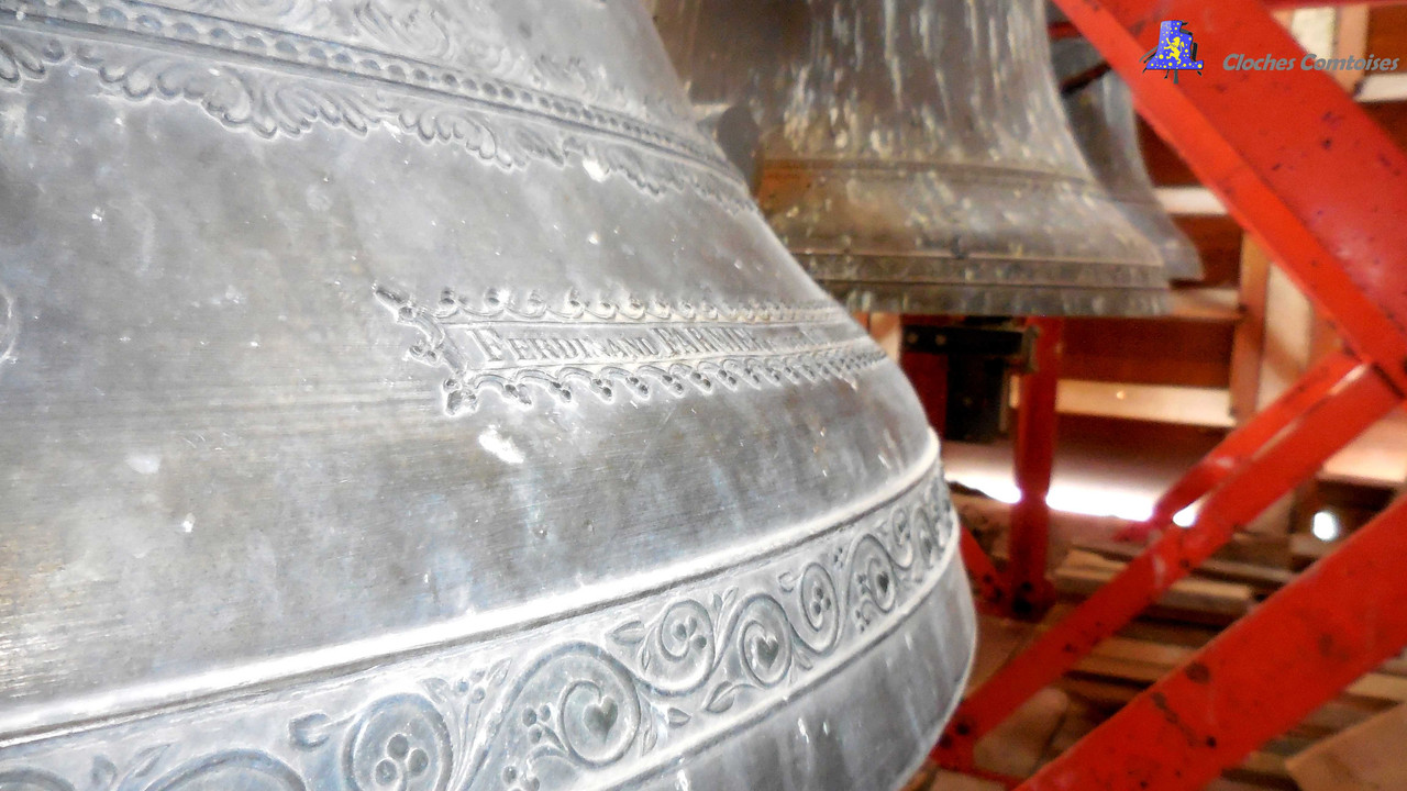 Diamètre 96,0 cm, Poids 535 kg, Faite par François-Xavier Roy, Louis Roy et Joseph Beau, en 1 815, à Besançon, Chante le Sol#3.
