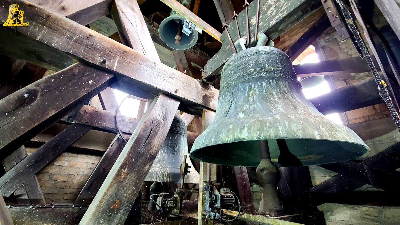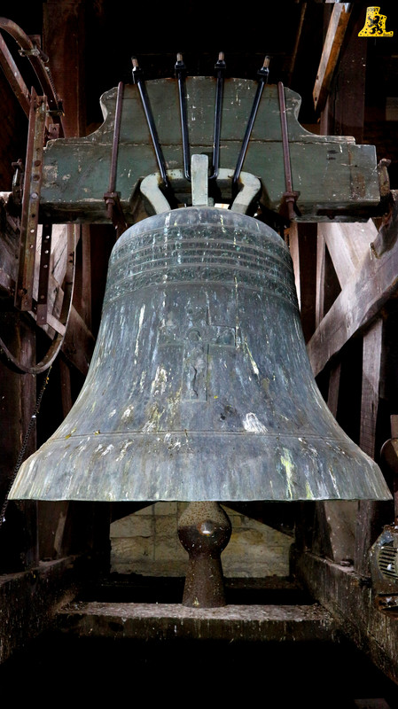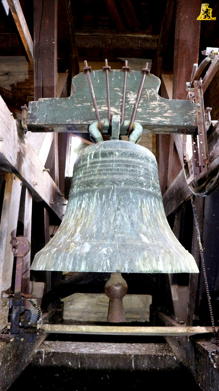 Pour cette avant-dernière visite du week-end bourguignon, Yannick, Antoine et moi-même, nous sommes rendue dans la principale ville de la communauté de communes, j’ai nommé Châtillon-Sur-Seine! L‘église Saint-Nicolas est située en plein centre-ville. L‘architecture de cette édifice est assez originale, de par sa « tour horloge ». L‘intérieur est assez sombre, même lorsque la nef est éclairée, en somme, j’aime plutôt bien l’atmosphère que dégage cette église. La montée jusqu’aux cloches est assez compliquée, avec des passages pour le moins assez périlleux, mais non dangereux. Une fois arrivés aux cloches, nous pouvons constater la présence de trois cloches principale, toujours en état de marche, et de deux autres, sur les baies des ouvertures qui, généralement, sont pourvues d’abat-son. Nous allons surtout nous attarder sur les cloches dites « De volée », celles sonnant les heures et les événements religieux divers. Toutes les cloches ont été fondue en l’an 1 952 par le fondeur Blanchet, un fondeur qui officiait du coté de Bagnolet, à la frontière avec Paris. La plus petite, située en hauteur, se nomme Aleth-Armand, elle pèse 305 kg, pour un diamètre de près de 80cm, elle nous chante le Si3. La cloche moyenne, dite « Jeanne-Catherine-Roger », est plus grande de 8 cm, et plus lourde de 110 kg. Sa note est un joli Sol# du 3e octave. Quant à la pièce maîtresse de l’ensemble, elle affiche un poids de 970 kg, pour un diamètre plutôt conséquent de 118,1 cm. Elle a pour nom, Geneviève-Suzanne-Henry, et la note émise de cette cloche est un Mi3. Les deux petites cloches situées en façade, n’ont pu être relevées, mais une chose est sûr, c’est que ces deux cloches sont d’une époque assez reculée, suffisant pour que les cloches aient toutes deux des inscriptions gothiques. Sur la photo plus bas, dans la partie « Cloches 4 & 5 », nous pouvons voir que les formes entre les deux cloches changent, elles ne sont donc pas de même époque. J‘estime l’époque de ces cloches (Et là, ce n’est qu’un jugement via ma petite expérience), au XVe et XVIe siècle! Un vrai trésor si celui-ci est confirmé un jour. Il est a noter, que lors de la volée des cloches, dès que la grande se met à sonner, les marteaux des cloches 2 et 3 se mettent à frapper les cloches en pleine volée, pour une raison que j’ignore. En effet, le système de mise en volée est de 2 021, et nous avions bien mise « Volée », et non glas.. Ce fut aussi le cas à Prusly…