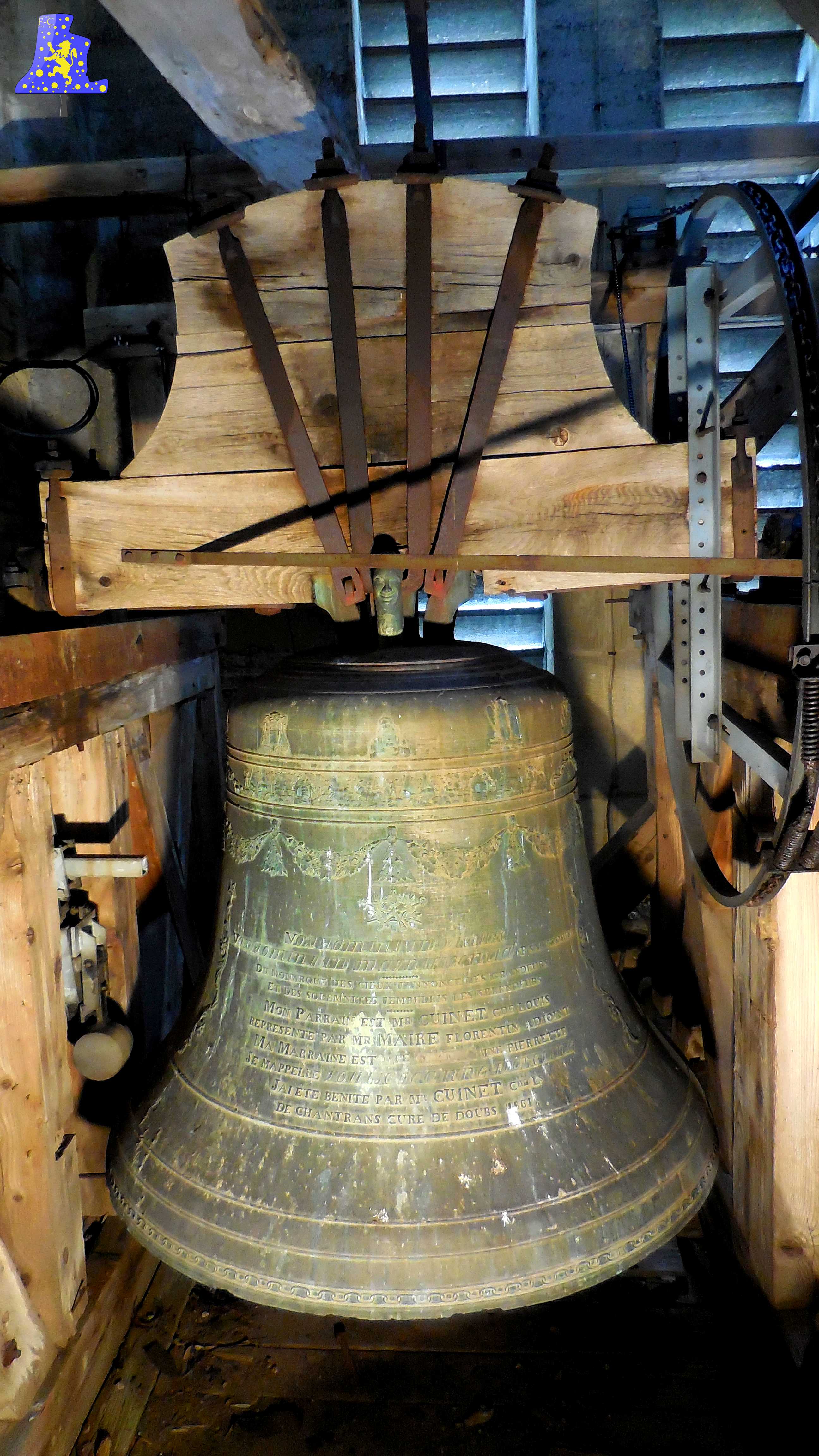 Même pas 6 mois après le début de mes reportages vidéo dans les clochers Franc-Comtois, que j’avais déjà la chance d’aller immortaliser la sonnerie de cette très très imposante église qu’elle celle de Doubs. La ville de Doubs compte plus de 3 200 habitants, ce chiffre est en constant augmentation du fait de ses proximités avec Pontarlier, et surtout la Suisse, qui profite aux frontaliers. Ce qui est assez rigolo ici, c’est que la commune de Doubs se situe dans le département du Doubs, et pour couronner le tout, la rivière du Doubs y passe! C‘est peut-être un cas unique en France! L’église de la ville est remarquable de par ses démentions exceptionnelles! Véritable point de repère dans le Grand’Pontarlier, cet édifice possède le clocher le plus élevé du Doubs, du sol, à la pointe de la flèche. Le chœur et la nef possèdent de beaux espaces. La hauteur sous voute est de 25 mètres. L‘église a subi une véritable cure de jouvence voila maintenant 7 ans, lui rendant toute sa splendeur d’un blanc beige pur et immaculé. Perchées dans le clocher, nous pouvons y contempler pas moins de 4 cloches, mais nuances, puisque seulement 2 sonnent à la volée, et ce sont les plus grosses. Les plus petites sont dédiées aux tintements des quarts. Elles ont toutes deux été fondues par Ronat en 1 930. Elles sont toutes deux disposées en hauteur, le long des abats-son. La plus petite des cloches dites de Volée, a été fondue par la très célèbre fonderie Paccard, et ce, en 1 948. Avec ses 1 080 kg, Elle est incontestablement la plus jolie de l’ensemble. Enfin, Marie-Gabrielle-Georgette est son joli petit nom. La plus grosse est la seule cloche Comtoise de l’édifice. Avec ses 2 310 kg, elle est la véritable pièce maitresse de cette sonnerie, bien que le son qui s’en dégage soit un peu frêle. Louise-Jeanne-Floretine de son nom, fut fondue en 1 861 par la fonderie de François Humbert, fondeur à Morteau. Le battant de cette cloche, d’époque, a été alourdi par la suite via des « Anneaux », mais ceux-ci ne sont pas soudés à ce dernier, et « Grelottent » à chaque frappe.