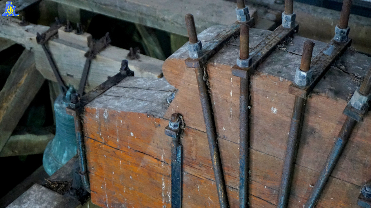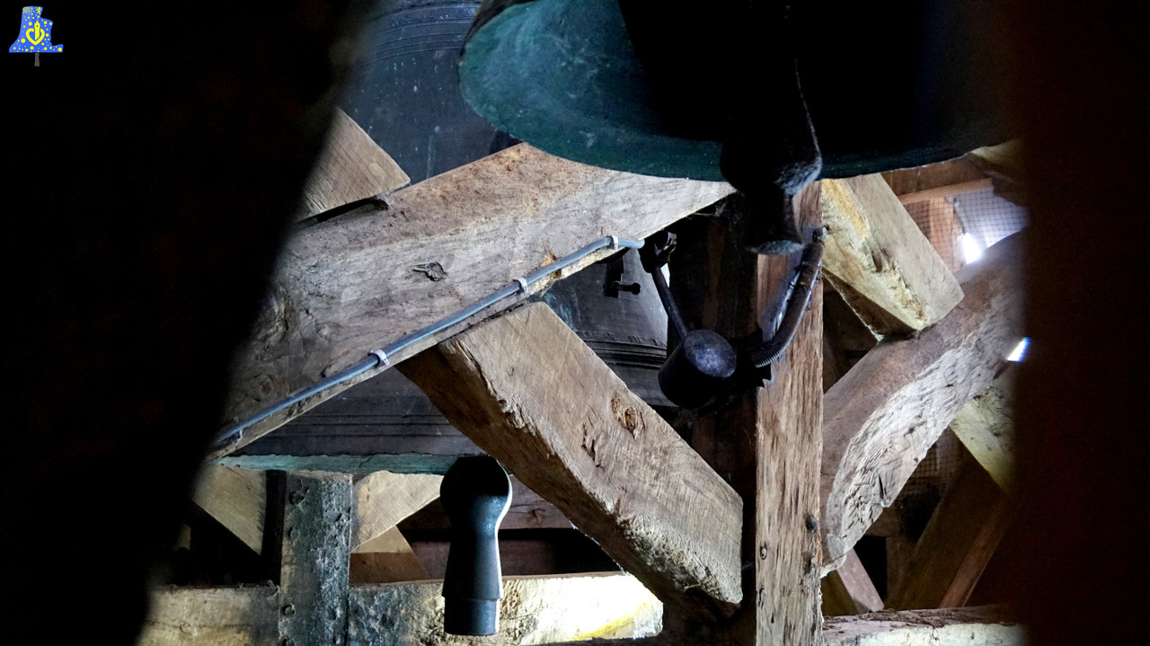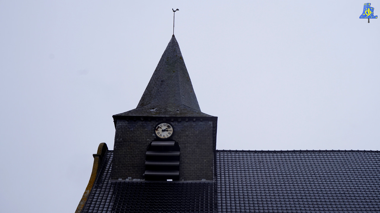 Je me rends aujourd’hui à Ebblinghem, afin de vous faire découvrir le patrimoine de cette charmante petite commune, située entre Hazebrouck et Saint-Omer. Lors de la montée au clocher de l’église, rénovée en 2 015, je ne me m’attendais pas ce qui allait s’offrir à moi une fois arrivé sur place! Dans la chambre des cloches, se trouve un beffroi relativement imposant, posées sur celui-ci, deux cloches se laissent facilement observer, aux vues de leurs formes, elles me paraissaient relativement anciennes. Depuis le début de mes découvertes dans les différents clochers, que ce soit dans les Hauts-De-France, ou en Franche-Comté, jamais je n’ai eu la chance d’observer une sonnerie 100% historique possédant 2 cloches et plus, de ce fait, je ne pensais pas qu’ici, ça serait la toute première.. Et Pourtant, les deux sont belles et bien pré-révolutionnaires! La plus petite, qui hélas, ne dispose pas d’équipement de volée électrifiée, mais qui se sonne manuellement dans le clocher, fut certainement oubliée de tous les habitants du village durant des dizaines et des dizaines d’années, comme en témoigne les dires d’une voisine, qui, ayant entendu cette petite cloche, s’en ait étonnée, car jamais elle ne l’avait entendu. Cette cloche est datée de l’an 1 732, et a été fondue par un certain Adrianus La Place. Elle a un diamètre proche de 50 cm, et pèse 68 kg. Pour finir, elle semble ne porter aucun nom. Sa grande sœur, qui est également plus ancienne, porte le joli nom d’Anne-Françoise, elle fut fondue en 1 680 par Nicolas De La Paix, avec un diamètre de plus de 115 cm, et un poids avoisinant les 950 kg. La cloche fut tournée d’un quart afin de la préserver, joug, battant, chaîne et moteur, ont été changer il y a pas très longtemps. Cette dame de bronze nous chante le Mi du 3e Octave, alors que sa petite sœur, lui répond avec le Sol4. Nous avons donc ici, une sonneries des plus intéressantes sur le plan historique! Une véritable rareté dans le monde des cloches. En revanche, ne pouvant pas faire autrement (Panne moteur), j’ai dû sonner la grande cloche de façon assez scabreuse, je me suis assuré de la solidité des poutres, cependant, je demande à tous ceux qui me suivent, de ne pas reproduire ce genre de sonnerie manuelle pour minimiser les risques.
