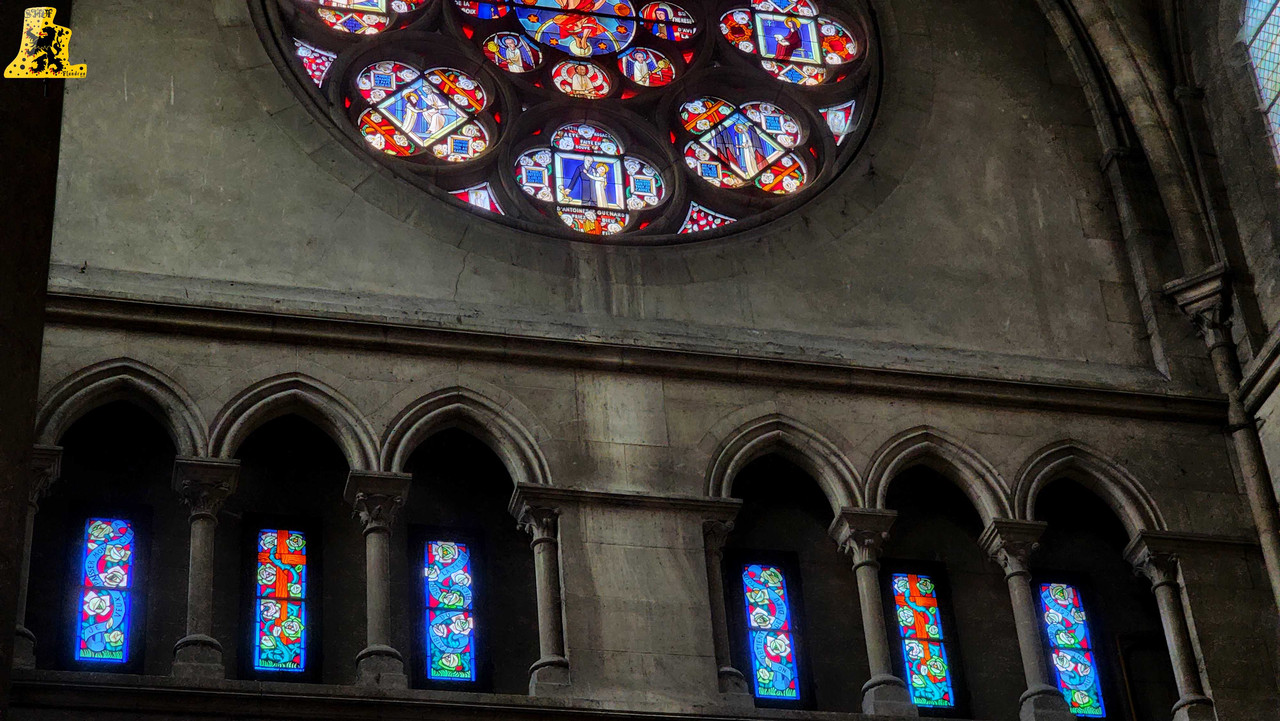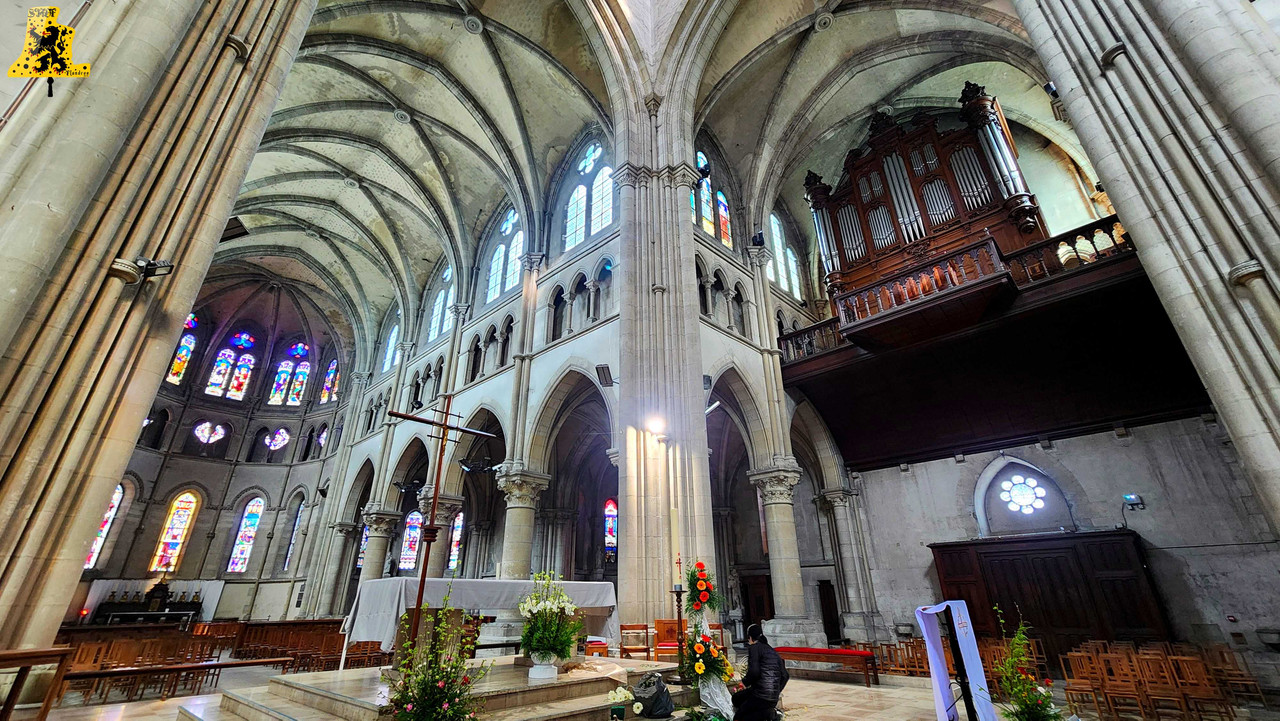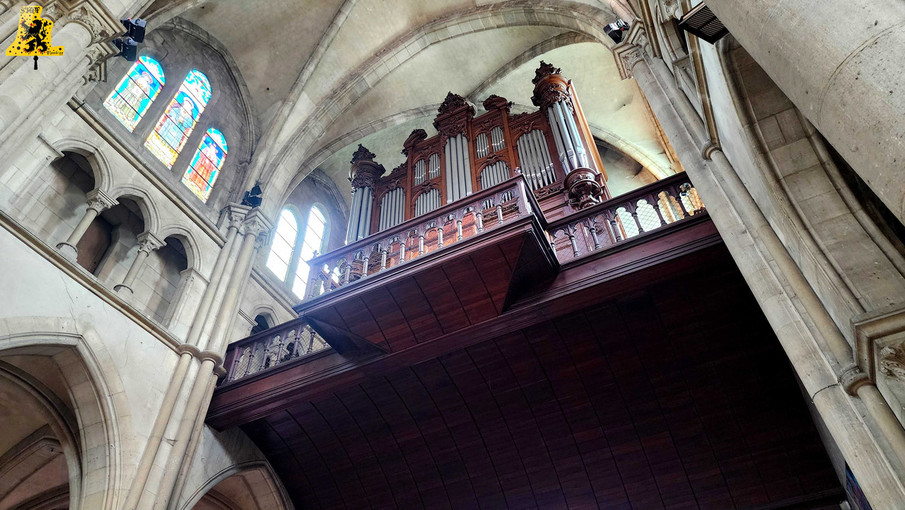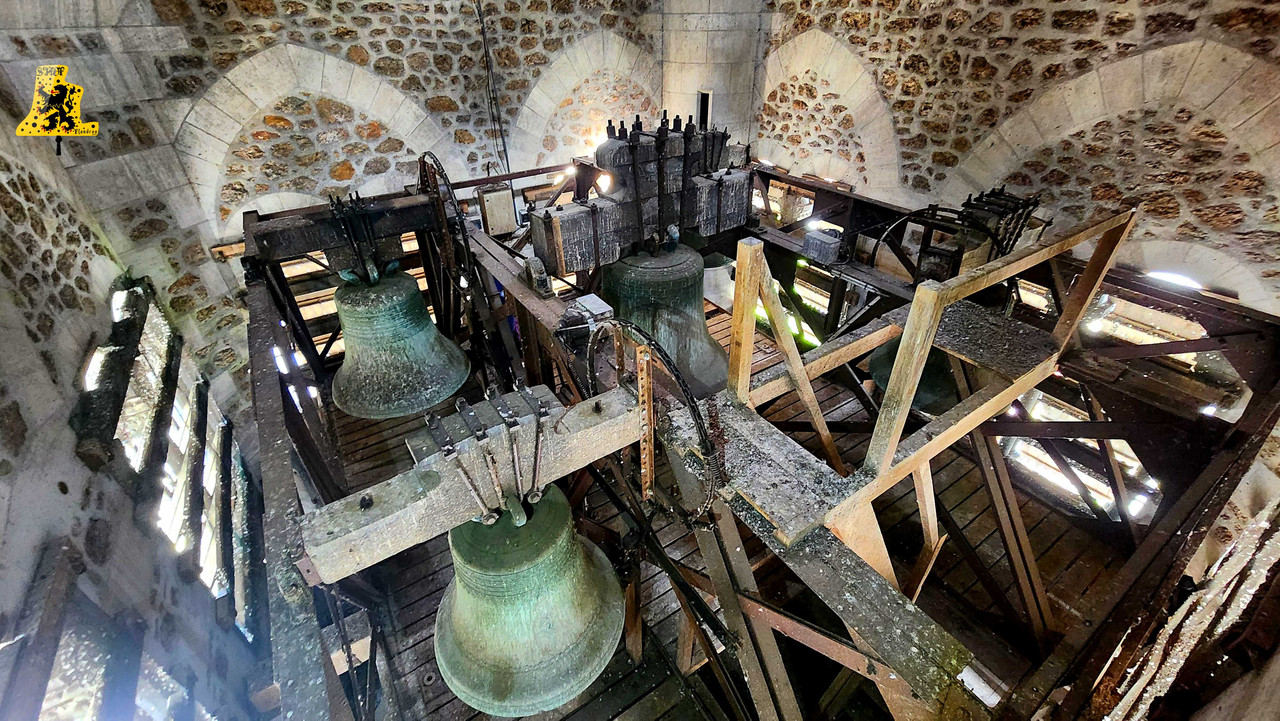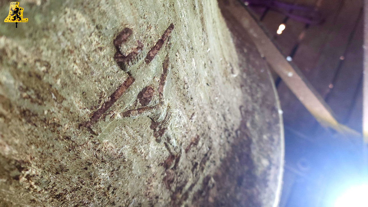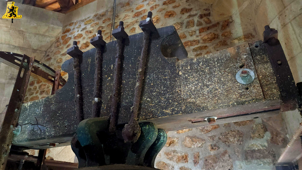 C‘est avec joie et émotion que je me suis rendue à Epernay pour vous y partager l’antre du clocher de Notre-Dame… Pourquoi ai-je dis « émotion »? Tout simplement parcequ’Epernay est la ville qui m’a vu naître, et grandir les 9 premières années de ma vie, alors c’est peu dire que tant de souvenirs sont encore présents en ma mémoire… Mais là n’est pas le sujet, parlons plutôt de cette imposante église, ainsi que de ses cloches. L‘église d’Epernay est un véritable point de repère pour tous les Sparnaciens, en effet, avec son clocher pointant le ciel jusqu’à 83 mètres, celui-ci est visible de part et d’autre de la ville. L‘intérieur de l’édifice n’est pas en reste, avec notamment sa hauteur sous voûtes de la partie nef, léchant les 30 mètres, et même 50 mètres au niveau du transept! C‘est vraiment impressionnant. L‘église possède des vitraux fortement intéressants, ainsi que de beaux tableaux classés. Nous ce qui nous intéresse grandement, ce sont les cloches. Seule rescapée de l’ancienne église, le « Bourdon », mais je vais y revenir un peu plus tard sur cette pièce pour le moins… Très intéressante. Il fut un temps où les cloches pouvaient être sonnées en carillonnant, pour y jouer des mélodies. Ne subsiste de cet instrument que le pédalier qui était relié aux 5 cloches, qui de nos jours, est hors d’usage. Comme je viens de le dire, il y a 5 cloches, toutes posées sur un beffroi métallique.. Les puristes désapprouvent surement, préférant les matériaux nobles comme le bois. Ceci étant que l’accès aux cloches est simplifié. Celle qui est, et de loin, la plus intéressante, est la Grand’Cloche. Cette belle dame de bronze, d’un diamètre de 158,3 cm, et d’un poids calculé à 2 480 kg (Contre les 3 800 kg souvent évoqués), fut fondue en l’an 1 491! C‘est un véritable trésor campanaire! Elle est certes peu décorée, comme la plupart des cloches médiévales, mais elle possède de belles inscriptions en lettres gotique. Les parrains de cette cloche sont Pierre Aubelin et Jehan Feuillet.. Quant à ses marraines, seuls des noms de femmes sont visibles, sans y voir la mention de « Marraine », Katherine, Marguerite et Marie. Katherine de son nom, fut bénite par l’abbé d’Esparnay (Ancien nom de la ville) P.Gaultier. Il faut tout de même savoir que cette cloche est pour le moment vouée à rester muette, et ce, pour deux raisons. D‘une part, elle n’est pas équipée pour sonner à la volée, malgré le fait qu’elle soit sur un système de roulement à bille. Et d’autre part, et c’est le plus préoccupant, c’est l’absence de l’une de ses anses, qui fut remplacée il y a de nombreuses décennies, par du rafistolage avec un anneau qui semble être sous-dimensionnée et fragilisée par la rouille. Il semblerait, via les photos d’archives de lorsque la cloche fut remontée au clocher avec les 4 nouvelles, dans les années 1 910, elle possédait déjà cette anse métallique. De plus, le joug de la cloche semble souffrir du temps, et lorsque nous étions sur site, je trouvait que le joug était cintré sous le poids de la cloche. Et enfin, j’ai voulu essayer de la faire voler de quelques degrés, des craquements se sont fait entendre dans le joug, me disant ainsi de ne prendre aucun risque. La description des 4 autres cloches sera assez rapide puisque celles-ci sont issues de la fonderie Farnier. Cette fonderie était basée à Robécourt, dans les Vosges, de nos jours, le site s’est mué en musée, et organise environ une fois par an, une coulée pour particuliers, communautés religieuses et communales. C‘est en 1 913 donc, que ces nouvelles cloches sont livrées à la paroisse, soit, un an avant la 1ère Guerre Mondiale, qui marqua ainsi 4 ans de non-activité à la fonderie, et surtout, la passation de pouvoir entre Ferdinand et Georges à la tête de la fonderie. La plus grosse des 4 se prénomme Renée-Rosy, elle pèse un honorable poids de 1 429 kg, si je suis aussi précis, c’est grâce aux archives consultables sur le site Clocherobecourt.com, accessible au plus grand nombre. Quant à son diamètre dont j’ai pris les mesures, il est de 130,8 cm. La troisième elle, pèse un poids de 982 kg, elle est suivie de près par sa petite sœur. Le nom qui fut choisi pour cette dame est Nicole. Son diamètre est de 116,5 cm, pour une épaisseur au niveau de la frappe, de 8,3 cm. C‘est via le diamètre et l’épaisseur aux points de frappes non usés, que nous savons calculer le poids d’une cloche avec un peu de marge d’erreur. La cloche numéro 4 dans la sonnerie, se nomme Julie-Augustine. Elle pèse 829 kg, pour un diamètre avoisinant les 110 cm. Et enfin, la 5e et dernière cloche de l’ensemble pèse un poids de 586 kg alors que son diamètre est de 97,9 cm. Ces quatre cloches Farnier sont toute accordées avec le Bourdon historique, donnant à la sonnerie les notes suivantes: Do3, Ré3, Mi3, Fa3 et le Sol3. Je n’ai hélas aucune information sur d’éventuelles anciennes cloches qui accompagnait Katherine dans le passé. Mais une chose est sûr, c’est qu’Epernay, possède l’une des plus vielles cloches de Champagne-Ardenne!