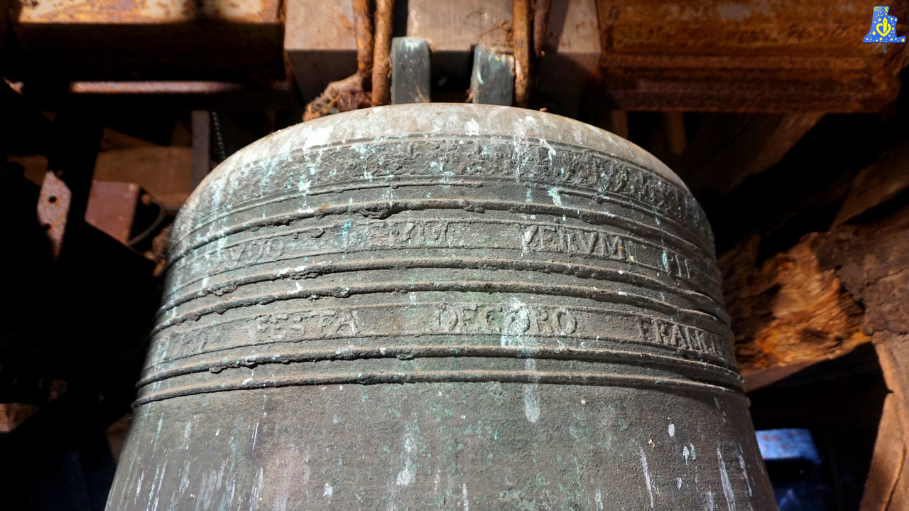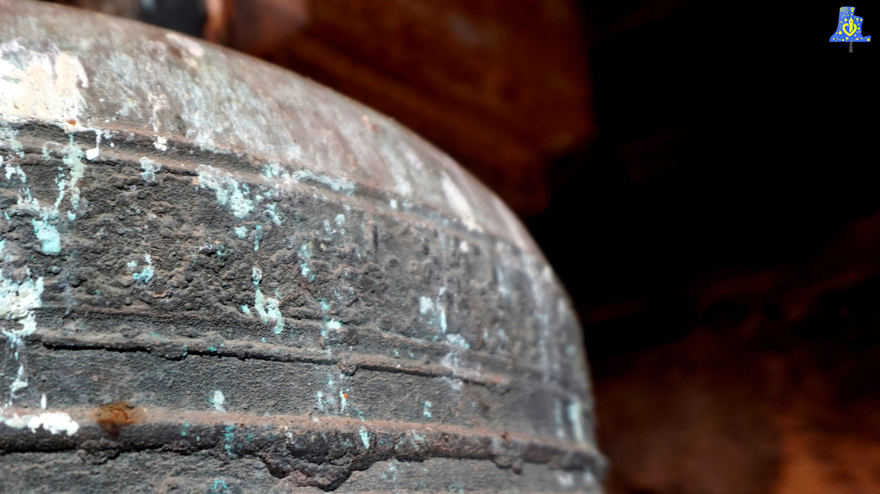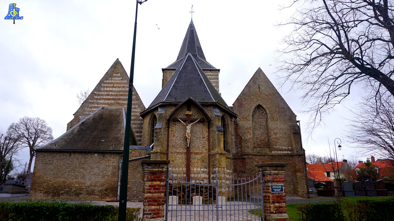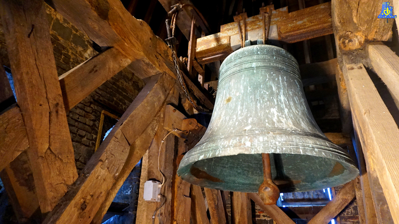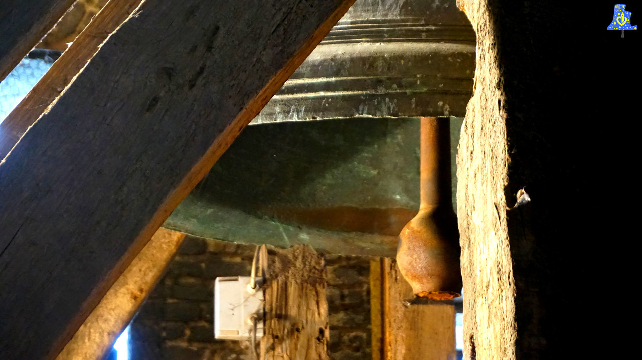 En ce jour venteux, j’ai eu la chance de me rendre dans la ravissante petite église Saint-Martin d’Eringhem afin de filmer et recenser la seule et unique cloche de l’église. Tout d’abord, parlons de cette sombre époque pour les cloches qu’est la Révolution française, puisque qu’ici, plus qu’ailleurs, les ravages de cette époque sont encore bien visibles. Quasiment toutes les cloches furent descendues de leurs clochers afin d’être refondues en pièce de monnaie, ou en armes telles que les canons, un décret autorisait toutefois, à conserver une cloche par paroisse afin d’avertir la population aux divers dangers, c’est le Tocsin. Ici, sur les trois cloches pré-révolutionnaires, deux ont été enlevées, et ne furent pas remplacées, laissant à la place, deux espaces totalement vides. Ces cloches « Fantômes », comme je les surnomme, étaient plus petites que la cloche toujours en place, je n’ai aucune autre info a leurs sujet. En revanche, la seule cloche encore en place est une véritable petite pépite de par son âge, cette vieille dame de bronze à 455 ans! Elle a été fondue en 1 564 sous le nom de « Jesus ». La cloche possède de nombreuses inscriptions latines avec le nom du curé de l’époque, en outre François Couzyn, le nom de la cloche mentionné plus haut, et le nom d’Abel Bardel, apparaissant juste avant la date de fonte, serait-ce le fondeur de cette cloche? Mes recherches n’ont abouties à aucune conclusion concrète, je me permets donc je le mentionner comme fondeur avec cette interrogation... Cette cloche est parsemée de quelques décors comme sur chaque coté, des feuilles se croisant, une jolie petite fris au niveau de l’épaule, ainsi que quelques moulures. Jésus pèse 965 kg d’après mon estimation, et a comme diamètre, 115 cm, elle donne la note du Mi du 3e octave. C‘est une cloche à la sonorité très pure et profonde, malgré son battant allégé avec l’amputation de sa chasse. Cette drôle de chose a été faite, selon mon hypothèse, dans le but de conserver davantage la cloche en exercent moins de force aux points de frappes, car sans la chasse, le battant a été allégé d’un bon 15 kg, cette partie est exposée dans l’église.
