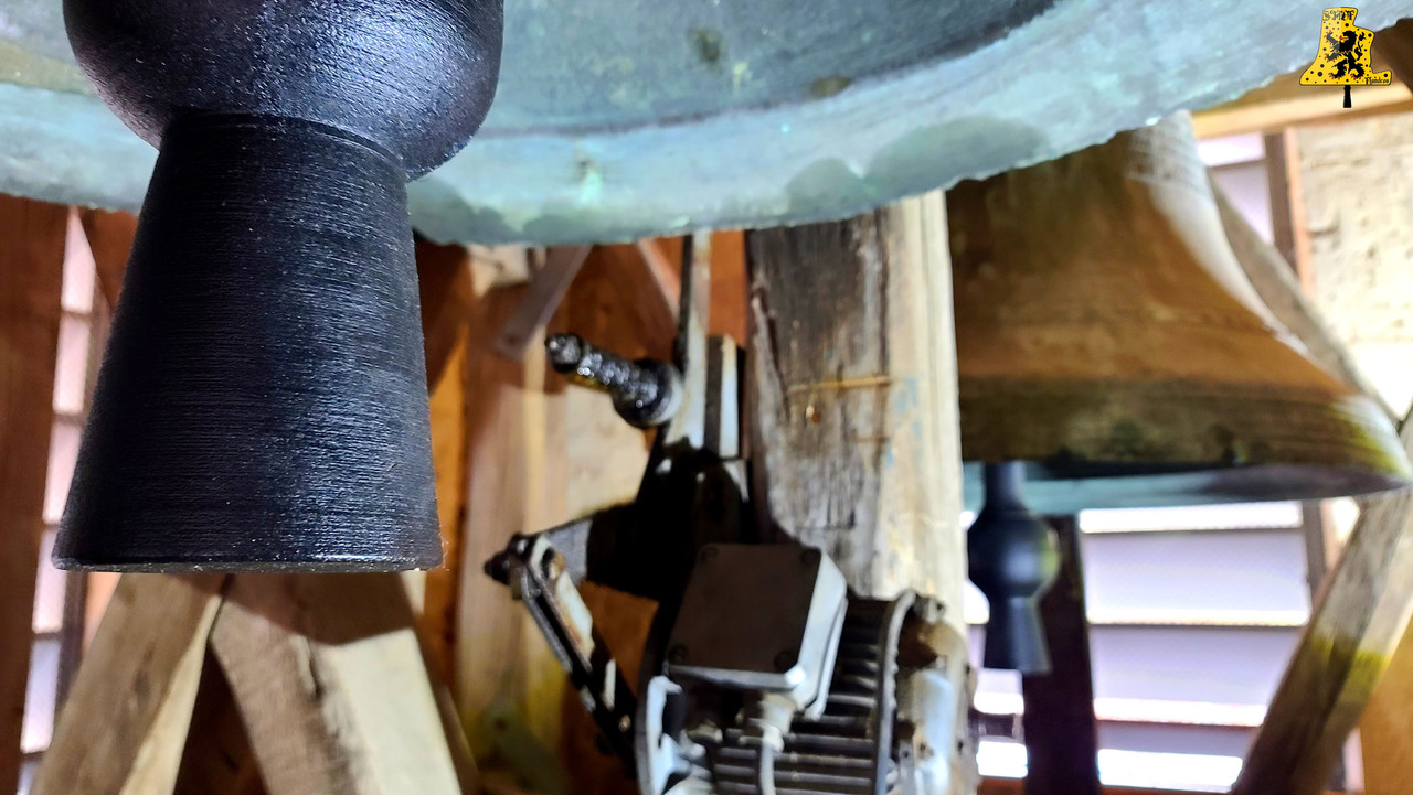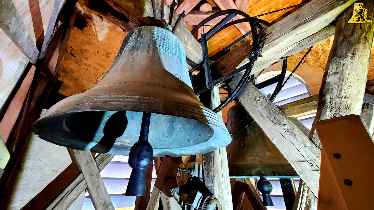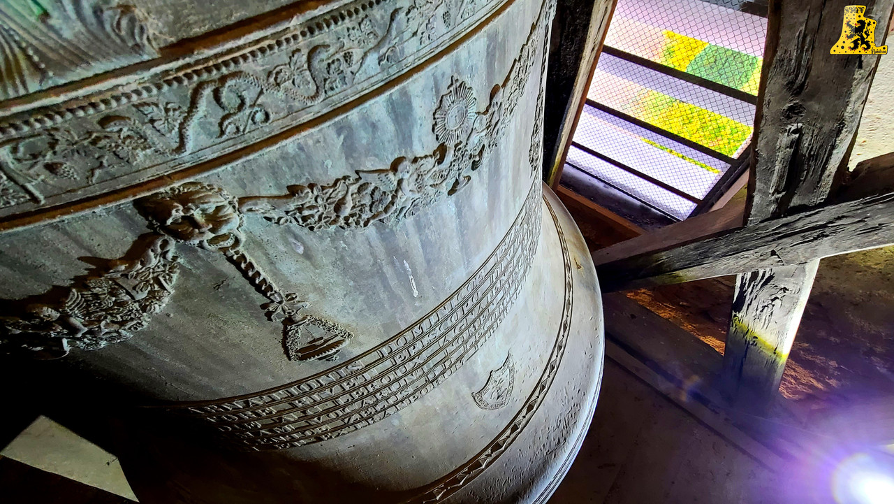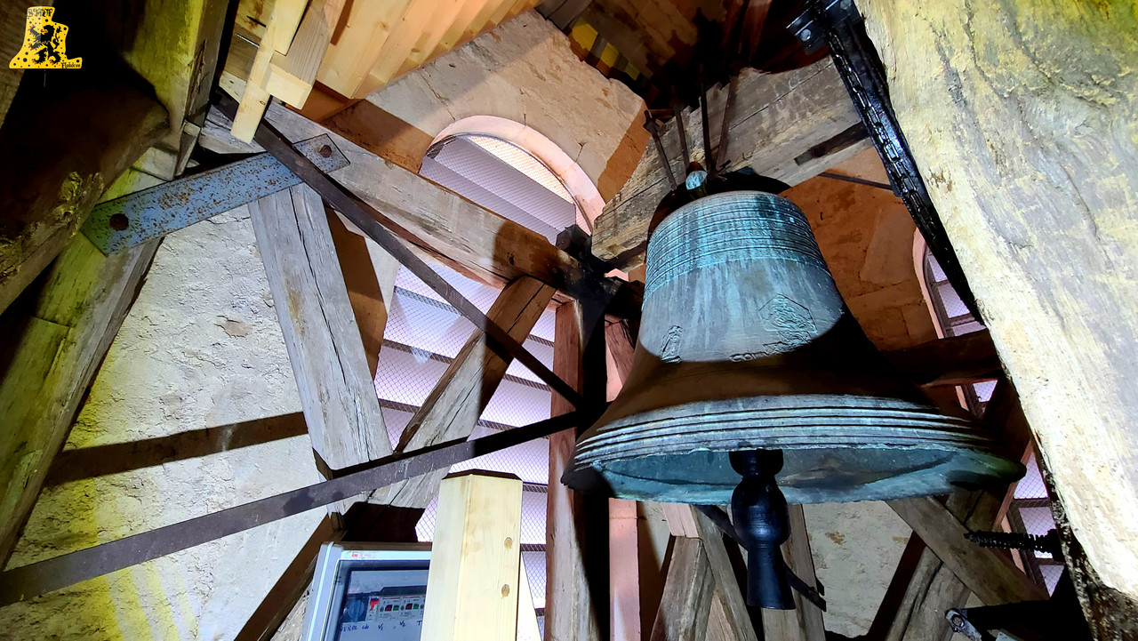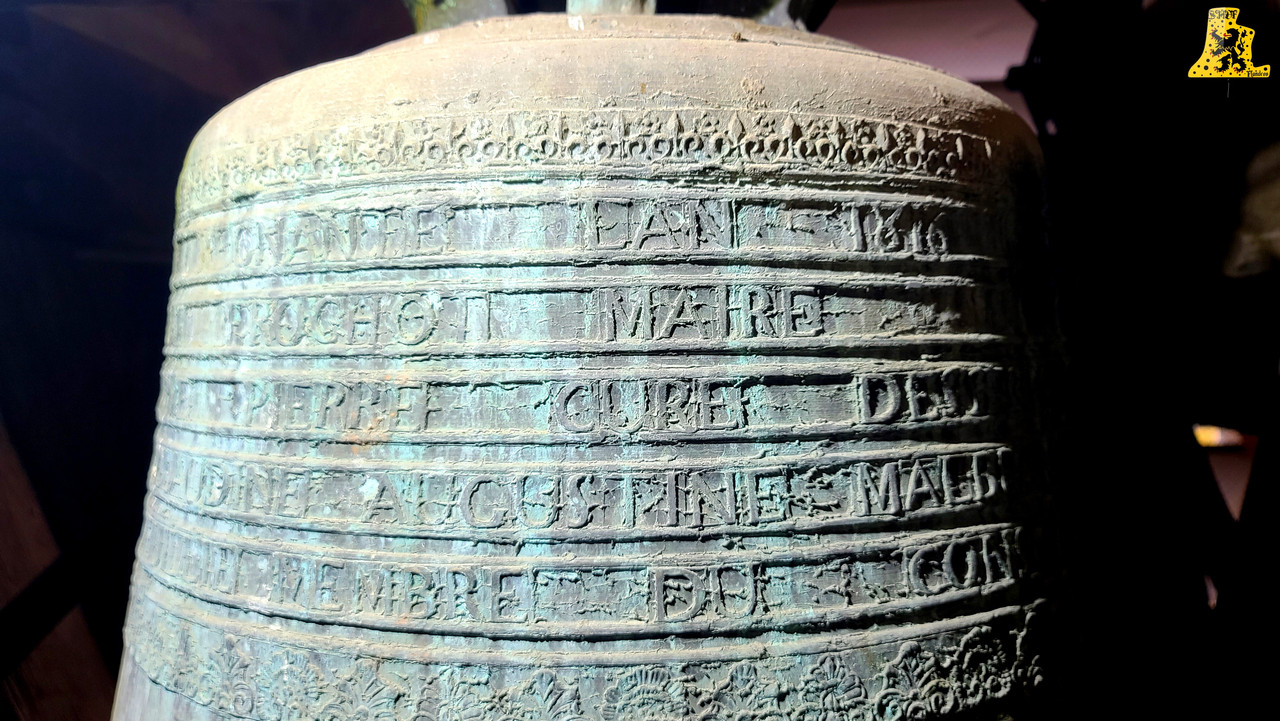 De nouveau en voyage en Bourgogne, pour quelques jours, c’est encore une fois avec l’organisation de Yannick, que je vous partage avec joie, le patrimoine de l’église d’Etalante! La petite chose assez amusante, c’est que j’ai eu la chance de visiter une église, via ClochesComtoises, d’un village se nommant Etalans, c’est en quelque sorte, la féminisation de ce nom. L‘église fraichement refaite pour sa partie extérieure, accueille deux cloches, il nous faut avant de les découvrir, gravir 15 petits mètres, via des escaliers en colimaçon, et des échelles de meunier. La montée est relativement aisée, et propre, puisque le clocher a subi une petite cure de jouvence, avec la réfection totale de l’accès a la chambre, et sous la charpente du clocher. La charpente soutenant les cloches, se nomme le Beffroi. Ici, il est relativement bien entretenu, tout comme l’ensemble des équipements des deux cloches. La plus grosse des cloches nous vient de la fonderie des Richebourg-Petitfour, dont la fonderie était basée à Arbot, non loin de là. Cette cloche, dont nous n’avons point trouvè son nom, pèse la bagatelle de 800 kg. Son diamètre est quant à lui, de 110 cm. Le son que cette cloche émet est un très beau Mi3. Enfin, elle vit le jour en l’an 1 878. Sa petite sœur, pesant 550 kg, se prénomme Claudine-Augustine. Elle a été fondue en 1 816. Cette cloche se démarque un peu plus de sa grande sœur sur le point de la découverte, car c’est le fondeur Gouyot qui l’a fondue. Cela me permet de rectifier un article que j’avais fait avec ClochesComtoises, lors de ma visite à Montbozon (70). En effet, sur la signature de la cloche, je lisais « Gouyotuict », hors, il y a un léger espace entre le « T » et le « U ». Autre grossière erreur de ma part, croyant la griffe du fondeur en écriture latine, je pensais que le V était un U, hors c’est bien le V de Victor. Avec l’appui de Yannick, nous savons que c’est Victor Gouyot qui en est l’artiste. Pour conclure avec cette pièce, elle répond à sa sœur d’un beau Fa#3. Bien que cette sonnerie soit « petite », il est indéniable qu’elle fut une superbe découverte, de plus, je suis relativement content de la qualité audio. Petit hors sujet, il s’agit de mon premier article dont toutes les photos sont exclusivement prises avec mon téléphone, je pense continuer ainsi pour ne pas m’encombrer davantage avec un gros appareil.