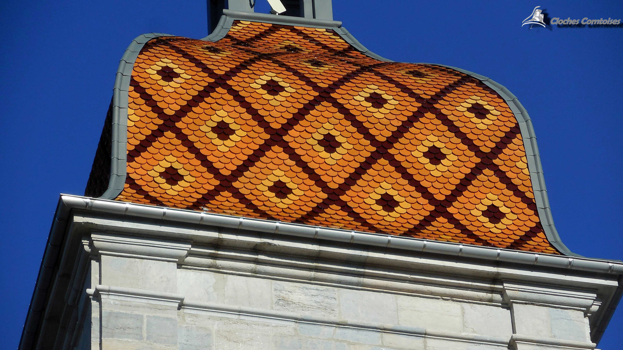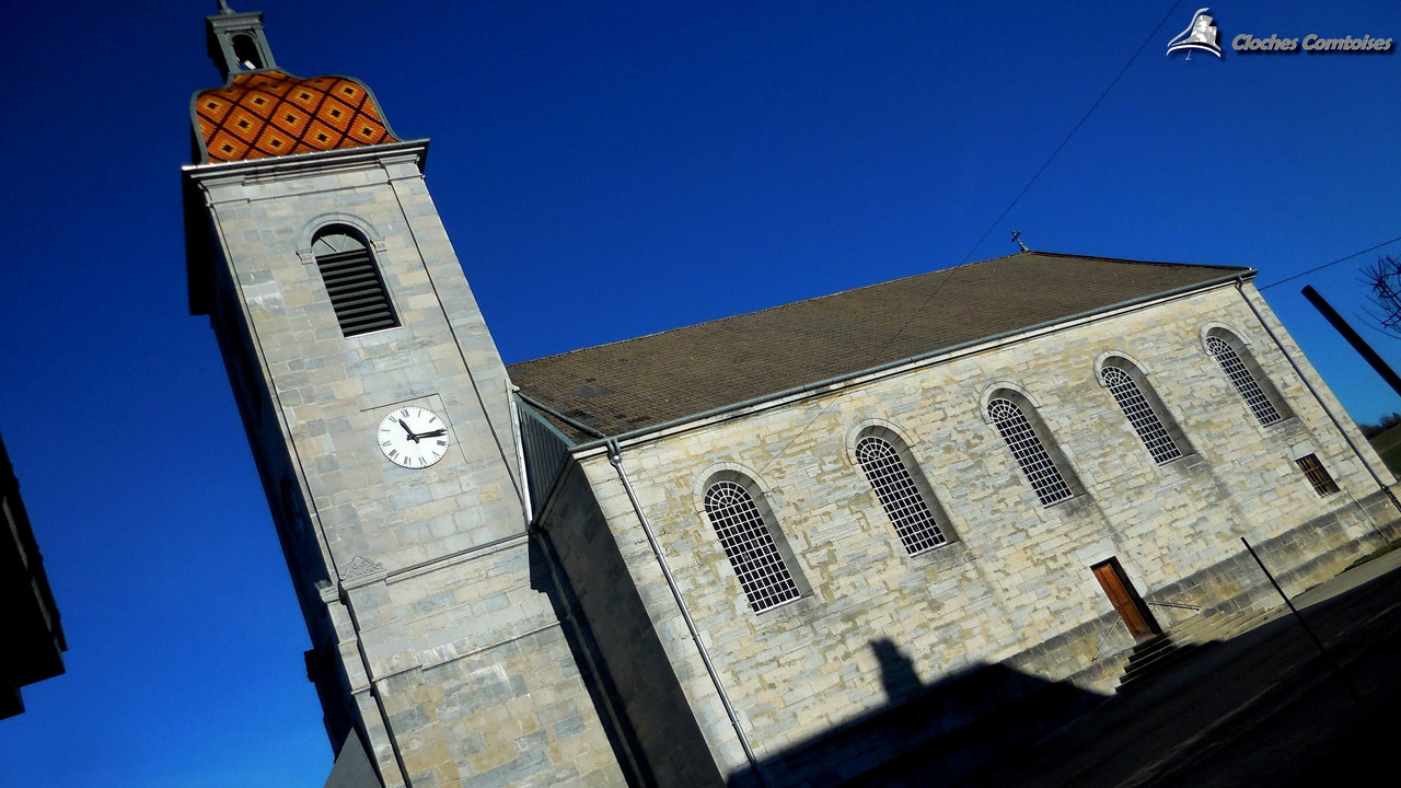 Cette visite se fait à Fournets-Luissant, au lieu-dit « Les Fournets ». Ce lieu-dit possède l’église de la Nativité, c’est une des plus belles églises du secteur, et sans aucun doute, l’un des plus beaux clochers comtois à tuiles vernissées et colorées que j’ai eu la chance de voir. A l’époque, je vivais dans la commune voisine de Fuans, il m’était donc très simple de me rendre en ce lieu. Le clocher de l’église culmine à 25 mètres environ. L‘intérieur de l’église d’un beau blanc cassé, est sobre, mais superbement entretenu. Il y a tout de même du mobilier intéressant, comme la chaire, l’autel, et le chemin de croix. Dans le clocher de l’église, nous pouvons y voir deux cloches posées sur un superbe beffroi en bois, les deux furent fondues par les soins du fondeur François Humbert. Cette fonderie se situait à Morteau jusqu’à la fin du XIXe siècle. La plus grosse, Marie-Agatine, nous pèse un joli poids de 1 730 kg, un poids considérable pour une si petite commune (à l’époque). Elle fut fondue en 1 856. En revanche, sa petite sœur dénommée Jeanne-Alexis qui elle, pèse 750 kg, fut fondue plus tôt, c’est en 1 833 qu’elle donna ses premiers coups de battant. Les notes de ces deux cloches sont le Do#3 et le Fa3. Un duo assez imposant, qui, du haut de sa montagne, peut se faire entendre à des kilomètres à la ronde. Je trouve à titre personnel, que cette sonnerie purement Comtoise, est douce et agréable à écouter, ce qui est moins le cas pour le hameau du Luisant, située à 2 km de là, et donc un article est aussi visible sur ce site.