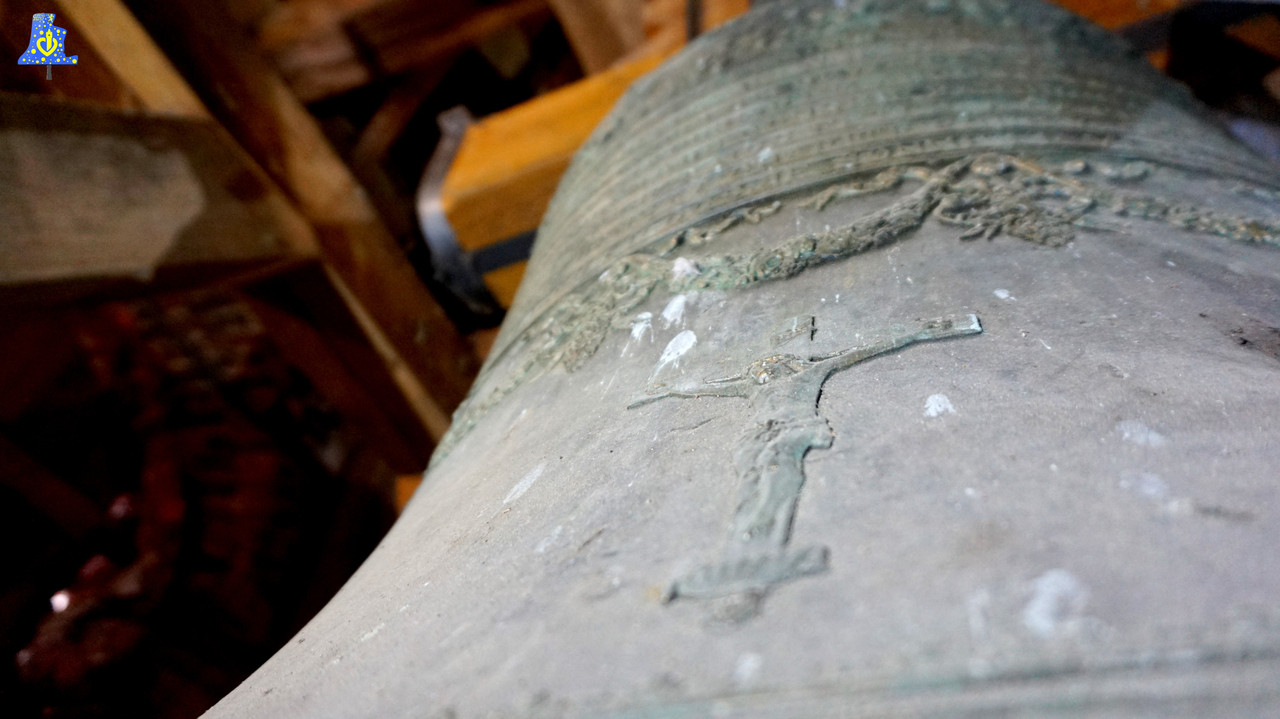 29e édifice dont j’ai la chance de vous faire découvrir le patrimoine campanaire, c’est à Haverskerque que cela se passe! L’église, sous le vocable de Saint-Vincent, dont sa tour est millénaire, possède en son sein deux belles cloches. C‘est après une petite montée de 20 mètres, que nous avons la chance de les découvrir dans un magnifique beffroi en bois (La charpente supportant les cloches). Avant de parler plus en détails de ces belles dames de bronze, attardons nous sur les équipements dont les cloches disposent. Restaurés il y a peu, nous pouvons constater avec surprise, la présence de moteurs linéaires, chose qui est assez rare en soi. De nouveaux jougs, battants ainsi que les ferrures ont été repris intégralement. Les cloches forment un type sonnerie assez original, mais bien persistante dans le secteur Hazebrouckois, avec la présence d’une cloche de taille moyenne, et d’une toute petite cloche, avec plus d’un octave d’écart.. Avant cette visite, dans ce secteur, Saint-Floris, Saint-Venant et Ebblinghem ont cette forme de sonnerie. La plus petite des cloches pèse 88 kg, elle se nomme Thérèse De L’Enfant Jésus, et a été fondue en 1 926, par Charles Wauthy, dont la fonderie était basée à Douai. Cette jolie petite cloche d’un diamètre de 50 cm, chante le Sol bémol du 4e octave. Sa grande sœur, plus lourde de plus d’une tonne (1 210 kg), nous provient elle aussi de la fonderie Wauthy, mais elle est plus jeune de quelques années, en effet, 1 931 est son année de « Naissance ». Avec son diamètre de 125 cm, « Jeanne-Gaston » de son nom, chante un Mi bémol 3 assez pur! Seule chose qui est un peu dommage, est son angle de volée un chouïa bas, qui ne lui permet pas une sonnerie uniforme des plus optimales. Enfin, chose très intéressante, Jeanne-Gaston nous dévoile à travers de ses inscriptions, un peu de l’histoire de sa prédécesseur, « Philipette » de son doux nom, a rythmé la vie des villageois depuis l’an 1 557… Malheureusement, elle se fêla peu avant sa refonte.. En conclusion, c’est une très jolie petite sonnerie, dont j’ai énormément pris plaisir à découvrir , et surtout, à vous faire découvrir.