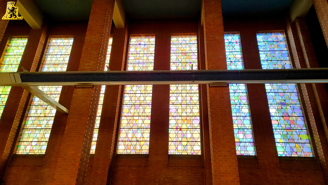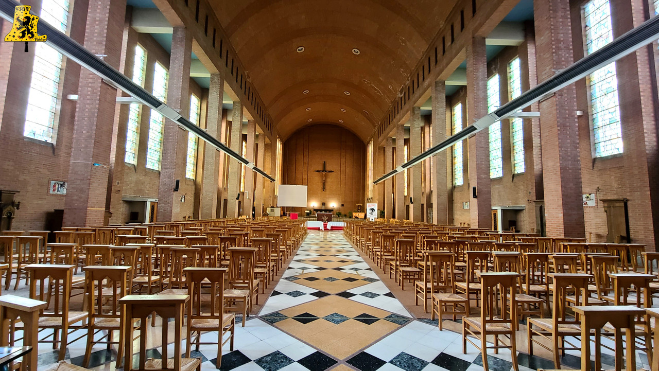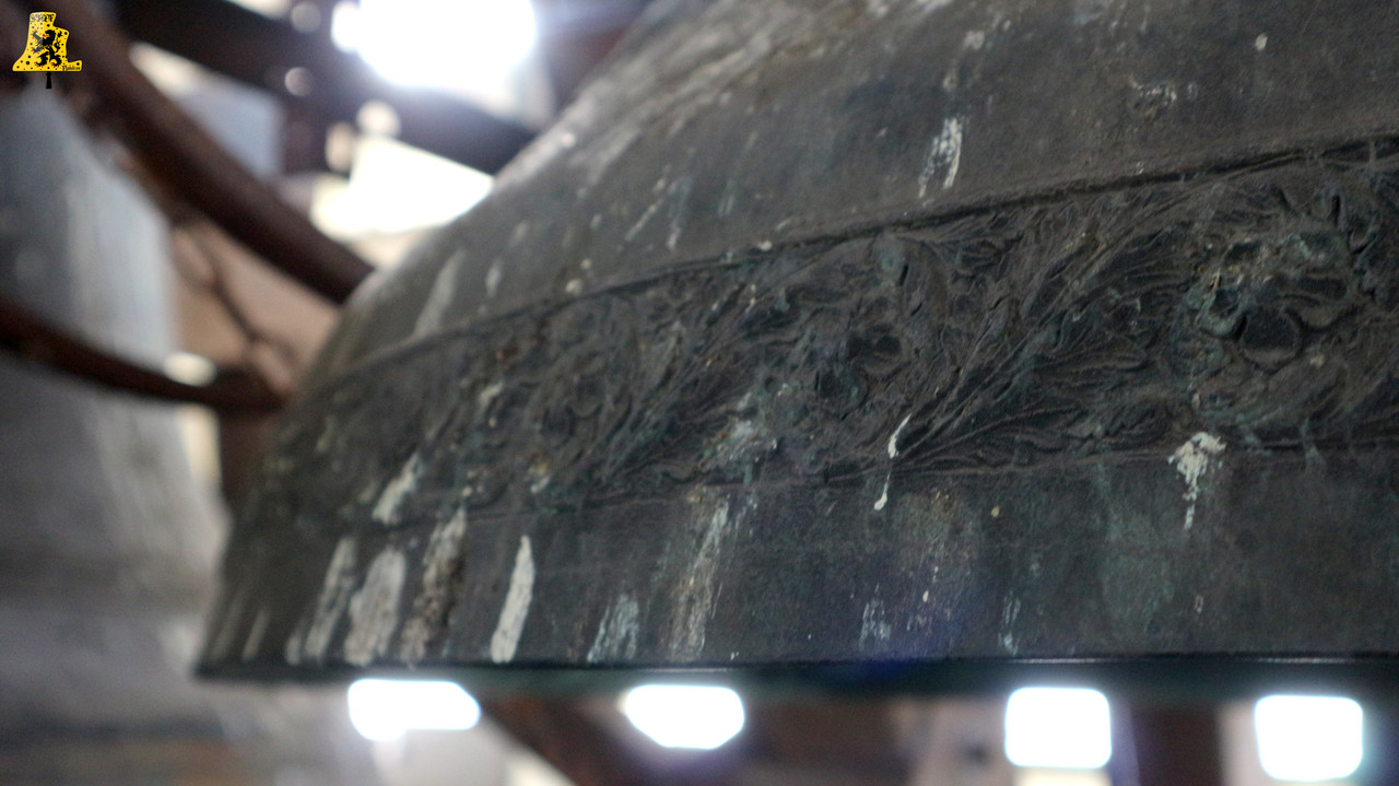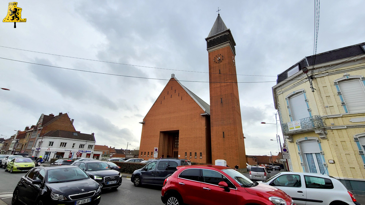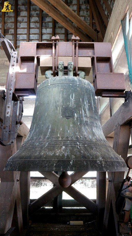 Après la visite de l’église Saint-Eloi, située dans la même ville, nous nous sommes rendu dans l’impressionnante église Notre-Dame, impressionnante de par ses volumes intérieurs, et son style moderne. L‘église est assez récente, du fait que l’ancienne église fut détruite durant la Seconde Guerre mondiale. Je vous laisse cliquer ici pour découvrir a quoi ressemblait l’ancêtre de cette nouvelle construction datée de 1 960. Le clocher de l’église culmine à 50 mètres, et est constitué de béton armée, nous allons en reparler pour conclure cet article. Après avoir gravi plusieurs centaines de marches, courant le long de la paroi du clocher, nous arrivons au niveau des cloches, ces cloches se comptent au nombre de trois, et sont posées sur un beffroi en bois. Nous allons parler de la plus grosses des cloches, qui est très clairement la plus intéressante du lot. Cette cloche fut donnée par une certaine Mme Masson-Beau,et bénite le 17 juillet de l’an 1 887. Cette cloche aux dimensions assez conséquentes, 135 cm quand même, pèse un bon 1 520 kg! Le créateur de cette belle pièce n’est nul autre que Paul Drouot, établie a l’époque à Douai. Enfin, elle porte le nom de Notre-Dame-De-Lourdes. La cloche moyenne, nommée Bernadette, est l’œuvre d’un fondeur mondialement connue, et encore en activité de nos jours. En effet, c’est la fonderie des fils Paccard, qui la livrèrent en 1 936. D‘un diamètre qui s’approche des 120 cm, la cloche dépasse la tonne, de quelques kilos. La plus petite des cloches , Jeanne d’Arc, fut elle aussi sortie des ateliers Paccard, à la même période. Comparée à ses deux sœurs, celle-ci peut paraître légère, puisqu’elle ne dépasse pas les 700 kg. Ce qui reste quand même un très beau poids. Son diamètre titille les 105 cm. Ces trois cloches sont liées à la vie de la ville de par leurs noms, en effet, la grande porte le nom de l’église, la moyenne, de la salle paroissiale Sainte-Bernadette, quant à la petite, de la petite place située à 100m en direction de l’est. Ces trois cloches sont montées sur des jougs (La pièce métallique qui soutient la cloche sur son axe de balancement) dit Rétrograde, ce qui permet un effort beaucoup moindre sur le beffroi, pour tout vous dire, une cloche pesant 1000 kg, peut exercer une force de 3000 kg sur la structure du beffroi sans ce système de volée. Ici bien que les cloches exercent peu d’efforts, nous avons pu sentir, lorsque les trois sonnent, le clocher osciller de 15 à 20 cm!!! Croyez moi, c’est assez impressionnant à vivre. Mais rassurez-vous, c’est tout à fait normal, et sans danger, puisque comme mentionné plus haut, le clocher est en béton armée, matériau souple mais plus solide que de la pierre.