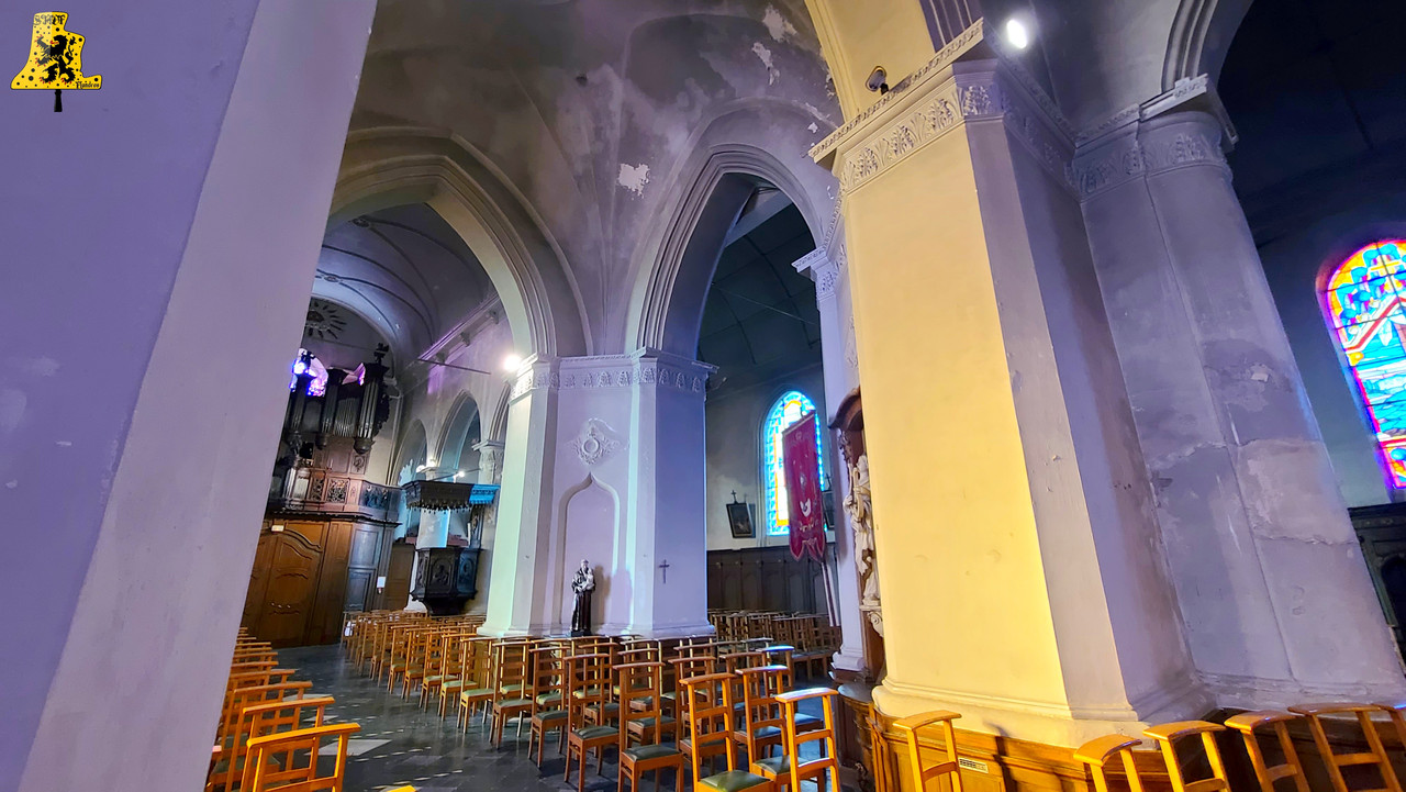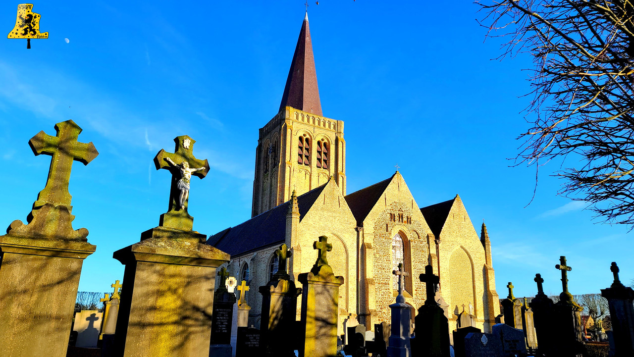 Une nouvelle fois, je reste dans les Flandres pour cette nouvelle découverte! Killem, petite commune située non loin d’Hondschoote, nous ouvre à son tour les portes de son clocher. La jolie hallekerque fut édifiée à la fin du XIe siècle, avant d’être détruite durant la guerre des « Gueux », avant d’être reconstruite par la suite, au XVIe siècle, avec la forme que nous lui connaissons aujourd’hui. Ce qui nous intéresse à nous, c’est ce qu’il se cache dans le clocher situé au cœur de la structure, pour y monter, une porte dérobée sur un des piliers soutenant le clocher nous ouvre la voie. Une petite série d’escaliers en colimaçon nous est à franchir, avant de tomber nez à nez avec deux échelles de meunier. C‘est assez ardu, mais nous y arrivons. La monter étant finie, nous pouvons admirer, à 20 mètres du sol, deux cloches sur un beffroi pour le coup, bien assez grand. La place pour travailler autour de ces dames est confortable. Par le passé, le clocher comptait 3 cloches, car en effet, il y a la présence d’un espace vide dans le beffroi, avec des traces d’une ancienne installation. C‘est ce que j’appelle à titre personnel, une « Cloche Fantôme ». La plus petite des cloches se nomme Paulette-Marie, elle possède un diamètre extérieur au niveau de sa pince, de 95 cm. Son poids est quant à lui, estimé à 515 kg, grâce à un calcul, me donnant une marge d’erreur de 3 %. Son parrain fut Marcel Schipman, alors maire de l’époque, et sa marraine, Mme Paulette Van Robaerys. La cloche fut fondue en 1 956 par la fonderie Paccard, et ce, à partir du métal de sa prédécesseur. Nous le savons de par les inscriptions qu’elle contient. Michel, qui fut son nom, avait été fondue en 1 778, nous ne savons pas si cette cloche avait été détruite durant l’un des deux conflits mondiaux. De ce fait, l’ancienne sonnerie comportait au moins deux cloches ayant survécu à la Révolution Française! La plus grande, est aussi la plus intrigante, car, hormis l’inscription suivante: « Iay été fondue en l’an 1 784 », et la marque du fondeur, il n’y a absolument rien d’autre à lire. De ce fait, nous ne connaissons ni les parrains / marraines, ni son nom. Cette cloche a survécu à bons nombre de conflit, ce qui fait d’elle, un vrai petit trésor, elle fut fondue par Regnaud, un fondeur lorrain itinérant, c’est-à-dire qu’il se rendait sur site, et fonda la cloche au pied du clocher. C‘était assez répandu à l’époque, les fondeurs se sédentarisent à partir du XVIIIe siècle environ. La cloche a un diamètre de 110 cm, pour un poids de 820 kg. Sa note est un très beau Fa3, elle est accompagnée par sa petite sœur, en Sol#3. Avant de partir, je me suis dirigé vers la sacristie pour allumer la nef, et là, mon œil fut instinctivement attiré par une petite cloche d’appel, située en hauteur.. En voyant de loin l’inscription, je n’avais pas de doute, elle était ancienne! Avec l’accord de Mr Lignie, je suis monté afin de décrocher cette cloche… C‘est LA découverte de cette visite! L‘église ne possède donc pas 1, mais deux cloches très rares, ayant survécus aux révoltes et aux guerres jusqu’à aujourd’hui! Autant vous dire que je suis très heureux d’avoir eu la chance de me rendre en ce lieu! C‘est ce genre de découverte, dans les petites communes, qui sont les plus satisfaisantes.