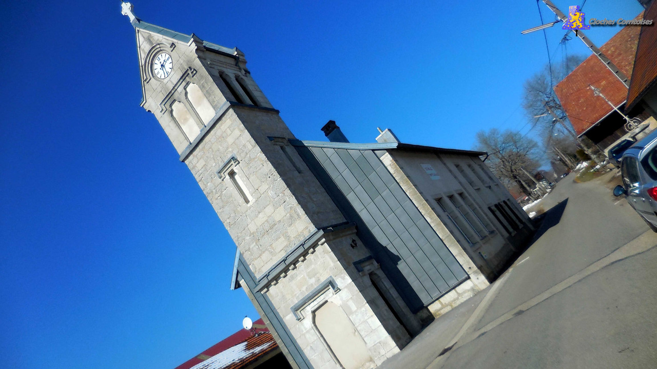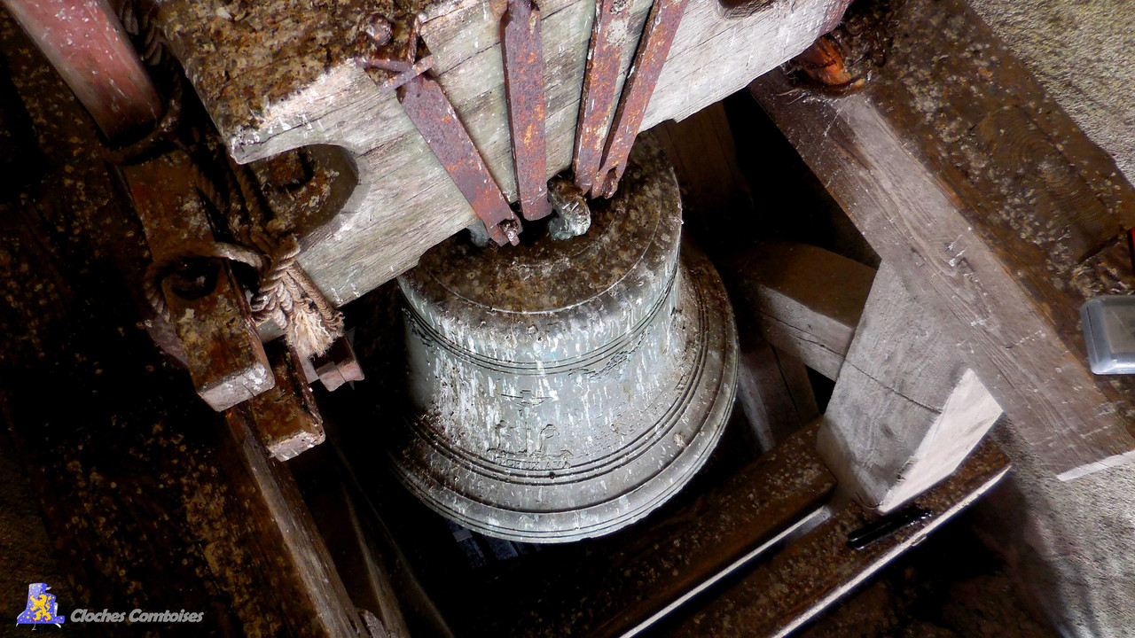 La Bosse, ce petit village paisible en plein cœur de la campagne du Haut-Doubs, est peuplé par 80 âmes tout au long de l’année. Le village ne possède ni église, ni chapelle. En guise d’horloge, les bâtiments de la Mairie et de l’école disposent d’un clocher. Les cadrans sont encore, et c’est chose rare, actionnés par une très belle horloge mécanique! Le clocher fut élevé vers l’an 1 860, et il semblerait que les pierres ayant servi à la construction de ce dernier, proviendraient de l’ancien château du Belieu, commune située juste à cote. Cette fausse église donc, possède cependant une cloche. Cette cloche, bien qu’inactive depuis des décennies, nous chante un joli Do4. Pour tout vous dire, lors de mon passage au sein du clocher, cette cloche n’avait pas sonnée depuis plus de 30 ans! Il est vrai qu’elle mériterait une petite cure de jouvence, tout comme son beffroi, mais malgré ça, cette petite cloche sonne à merveille, bien qu’il faille lui donner de l’angle. Cloche nommée Mélanie, il aura fallu tout de même près de 175 kg de bronze pour que Mélanie prenne la forme que nous lui connaissons aujourd’hui! Fondue par les soins d’Emile Bournez, à Morteau, la cloche fut aussitôt livrée à la commune en 1 864. J‘ai tout de même des doutes quant à savoir sur cette « Fausse église » l’est depuis le début, puisque sur cette cloche qui est baptisée, nous pouvons y voir en plus de cela, des signes religieux, est-ce réellement une ancienne église reconvertie? Le mystère reste entier.