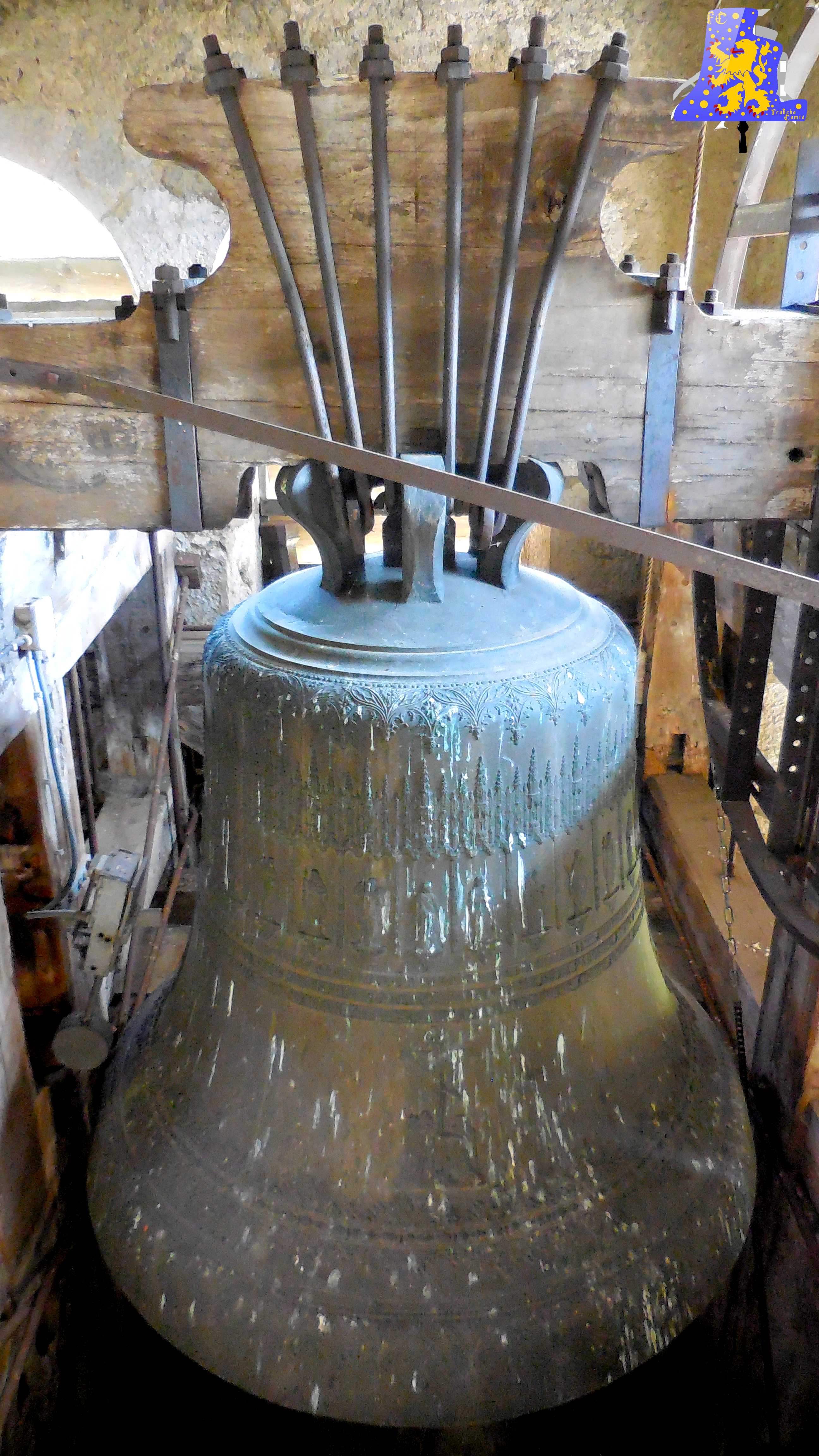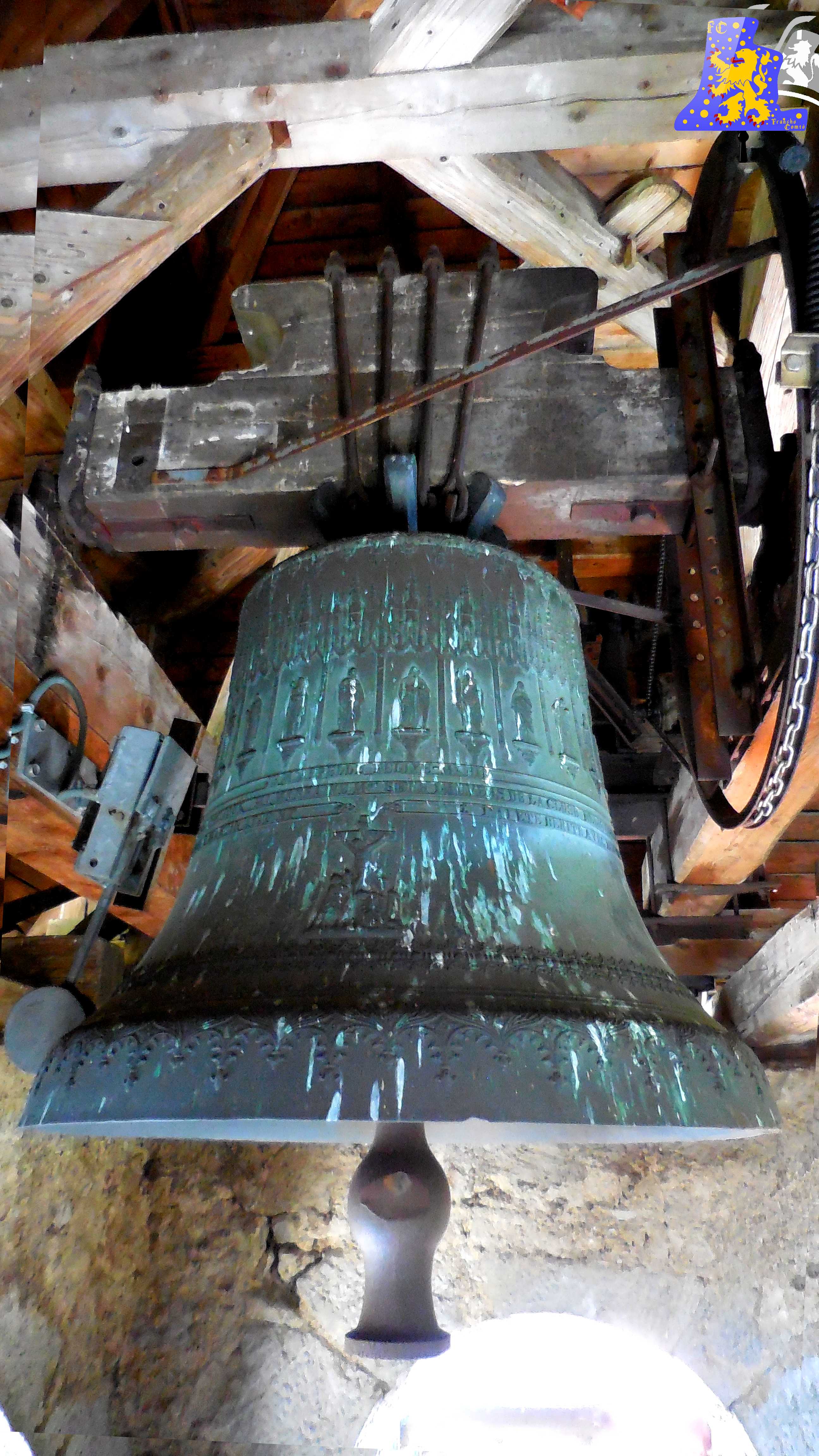 Diamètre 112,4cm , Poids 800 kg, Fondue en 1 899 par Jules Robert, à Nancy. Chante le Fa3