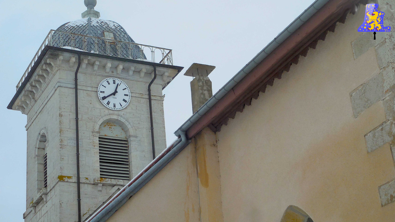 Le petit village du Barboux est idéalement situé afin de profiter pleinement de la nature, que notre belle région comtoise a à nous offrir. En effet, petit village de 225 âmes, il est situé en pleine campagne, à 20 min des deux petites villes que sont Maîche, et Morteau. Bien que plus petit, le village du Russey se trouve à seulement 5 minutes de route, avec toutes les commodités nécessaires. L‘église du village, sous le vocable de Saint-Ronebort, possède des dimensions assez modestes, en revanche, son histoire est assez intéressante. La partie la plus ancienne date de l’an 1517 et 1 553. Quant à son clocher, tout du moins, sa tour, elle serait datée du 19e siècle. L‘intérieur est certes sobre, mais possède tout de même des statues du 16e siècle. Dans lorsque nous arrivons dans la chambre des cloches, c’est avec surprise que j’ai pu en voir 3. Les deux plus grosses sont suspendues sur un beffroi en métallique, tandis que la plus petite, sur un beffroi en bois, complètement indépendant, mais reprise directement dans la maçonnerie du clocher. La plus petite des cloches fut ainsi fondue en l’an 1 818 par François-Joseph Bournez et son fils, Généreux-Constant. Ce fut alors une année très prolifique pour la fonderie. Marie-Prospère de son nom, nous pèse un poids de 210 kg environ, pour un diamètre de 72 cm. Sa grande sœur fut également fondue à Morteau par les Bournez, mais cette fois-ci, 25 ans plus tard. En effet, c’est en 1 843 que la commune passa commande d’une nouvelle cloche de 695 kg, afin d’étoffer la sonnerie de deux cloches existante. Le nom choisi pour cette cloche: Marie-Adélaïde. Quant à la plus grande, Anne-Thérèse, elle est classée. Nous avons affaire à une cloche dite « Prérévolutionnaire ». Fondue en 1 774 des mains de Claude-Joseph Cupillard, son imposant poids est de 940 kg tout de même, pour un diamètre d’un peu plus de 115 cm. Elle émet un son puissant et agréable, ce qui est moins le cas pour la plus petite des cloches. Enfin, l’ensemble de ces trois cloches possèdent leurs battants du XIXe en fer forgé.