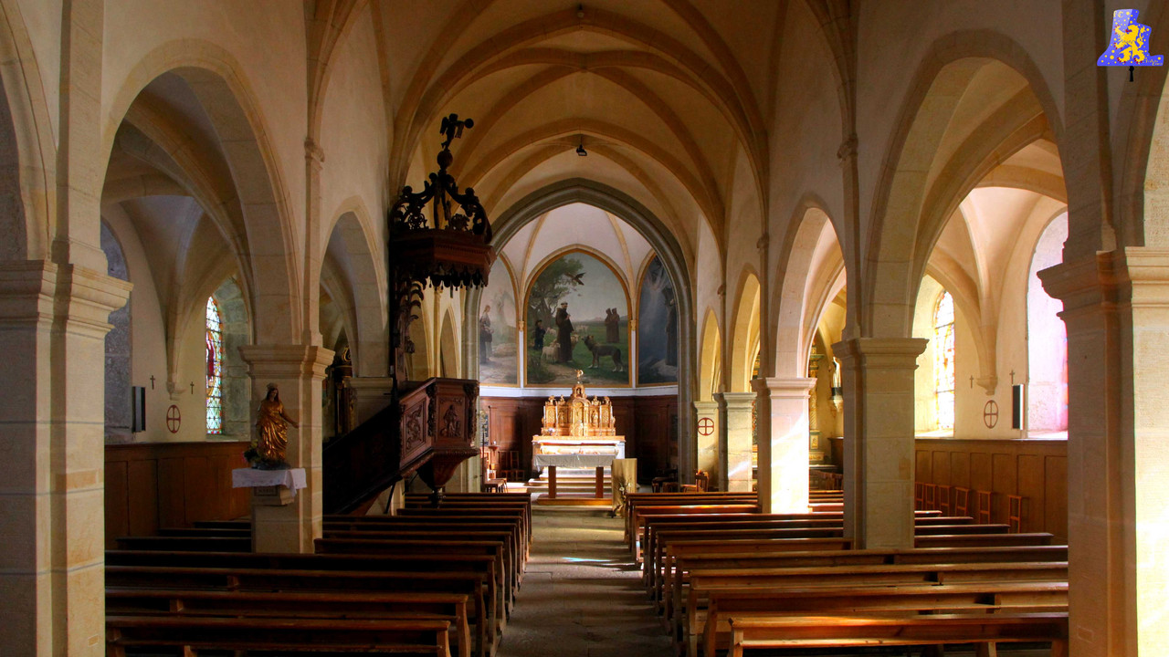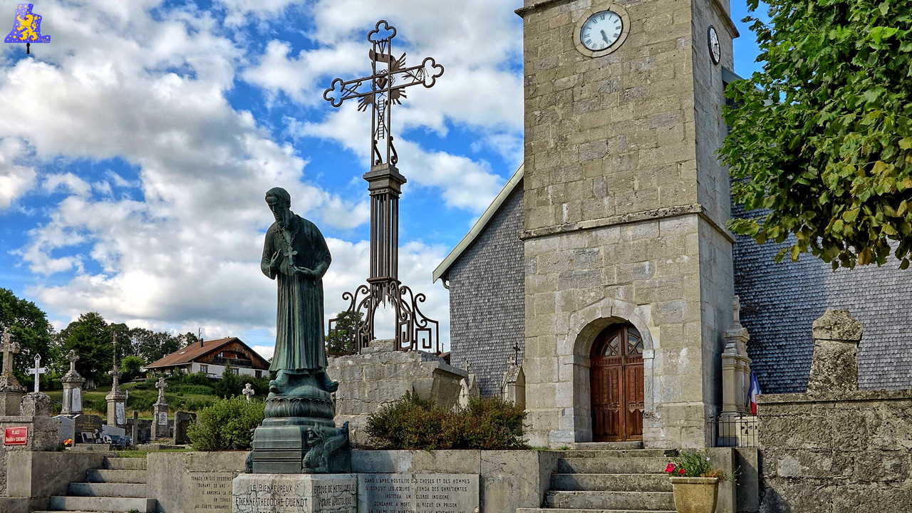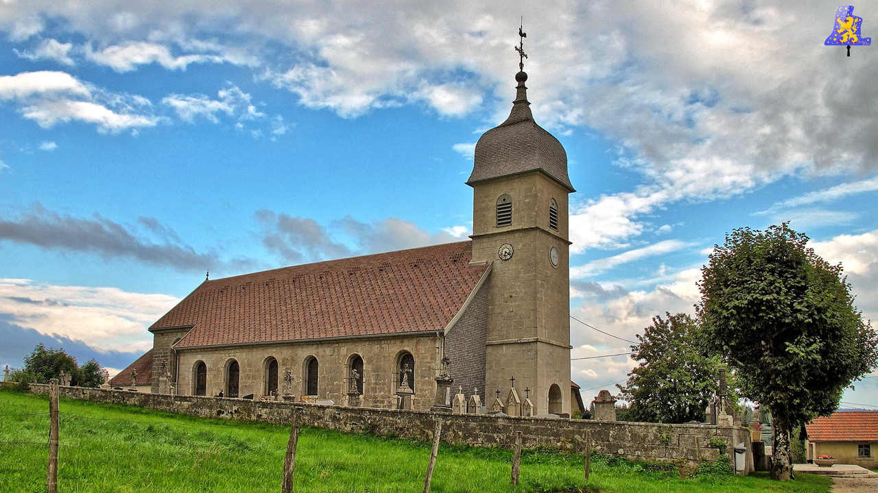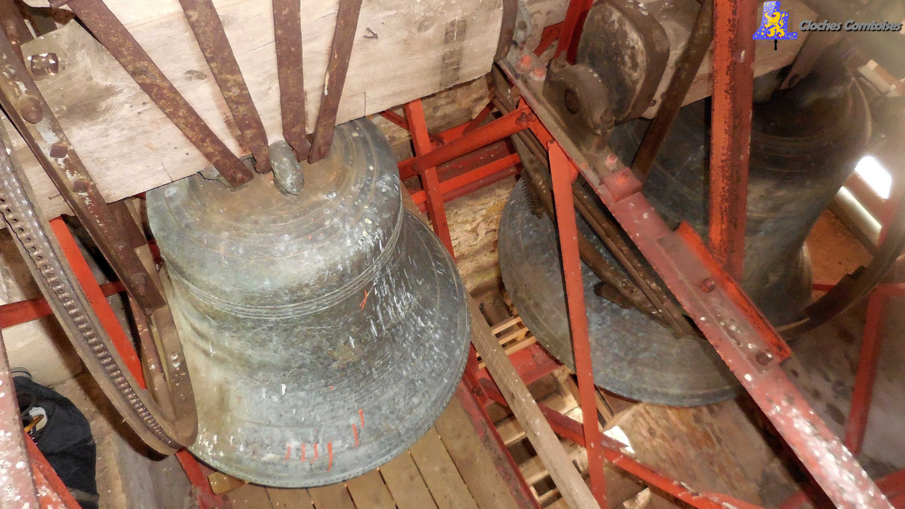 Le Bélieu est une jolie petite commune peuplée par plus de 500 Mange-Lards, car oui, c’est ainsi que sont nommés les habitants de cette bourgade. Située sur les hauteurs du Plateau du Russey, à plus de 1000m d’altitude, de nombreux coins de nature sont à découvrir, avec également de beaux panoramas en guise de récompense pour les efforts fournis. L‘église du Bélieu est classée aux Monuments Historiques. Elle fut érigée entre l’an 1 629 et 1 631. Elle possède la particularité de posséder un clocher comtois dont les « tuiles » sont en fait, des tavaillons, tout comme les côtés de la partie nef. L‘intérieur de l’église n’est pas en reste, puisqu’il possède entre autres, un retable du XVIIe siècle, un maître-autel du XVIII, et une Vierge De Pitié (Pietà) du XVIIIe également. D‘autres œuvres classées sont aussi à découvrir au sein de l’édifice. En revanche, dans le clocher, il n’y a pas de cloches aussi ancienne que les objets précédemment cités. Vous allez le constater, la description de ces deux cloches sera assez rapide. Ces deux cloches reposent sur un beffroi métallique, qui, je dois le dire, pique les yeux de par sa couleur orange vif. En revanche, les jougs en bois d’époque ont eux, été conservés. Fondues en 1 853 par François Humbert, ces cloches ont pris vie à Morteau. Pour la plus grosse, d’un poids de 865 kg, elle fut prénommée Marie-Josephte. Tandis que sa petite sœur elle, prit le nom de Marie-Louise. Son diamètre atteint les 103 cm, pour un poids lui, de 640 tout de même. Leurs notes sont le Mi3 et le Fa#3