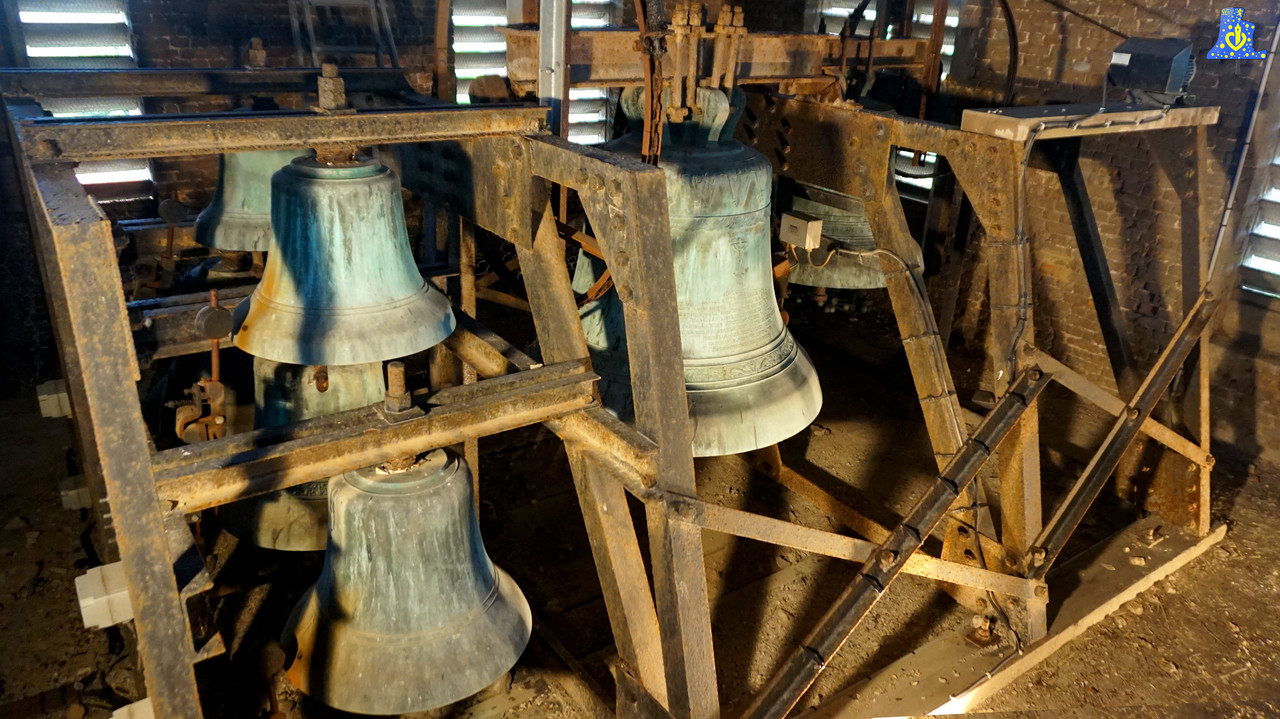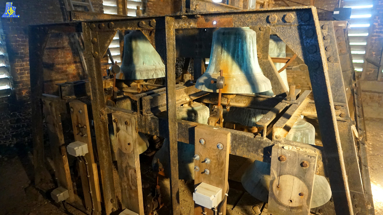 Après une grande pause de 4 semaines, c’est à Lederzeele que je me rends, petit village du Nord situé à 10 km de Saint-Omer, où se trouve au sein de l’église paroissiale Notre-Dame de L’Assomption, 7 cloches d’une période assez récente, en effet, l’église à hélas brûlée en 1 955.. Le site « Le carillon en région » nous apprend qu’avant ça, le clocher comptait au moins une cloche de volée de 1 617, et d’un carillon de 6 cloches daté de 1 883. Les cloches furent refondues en 1 956, c’est la fonderie Paccard (A ma grande surprise) qui fut choisie pour livrer la commande de 7 nouvelles cloches. Sur les 7 cloches. Deux sont équipées de systèmes de volée, ce sont les deux plus grosses de l’ensemble, en revanche, seule la grosse cloche est munie d’un marteau de tintement. Ida-Gustave de son nom, avec ses 5 sœurs fixes, chantent l’Avé Maria toutes les heures. Elles tintent également les heures a proprement dite. Elle mesure un bon 110 cm de diamètre et pèse environ 840 kg, elle donne la note du Fa. Sa petite sœur lui répond avec un beau Sol#, elle se nomme Marie-Joseph et pèse 515 kg, enfin, son diamètre est d’un petit 95 cm. Les cloches fixes sont situées sur la même structure que les cloches de volées, elles donnent les notes suivantes :Do, Ré, Mi, Fa et Sol, toutes sur octave 4. Deux défauts sont a noter sur ce bel instrument, en effet, lors de mon passage, le marteau de la cloche 3 (Do4) s’est détaché, j’ai du en urgence sonner un bout de l’Avé maria. Le marteau de la cloche 4 (Ré4) est également en mauvais état, mais rien de bien méchant, un agent communal s’occupera de les réparer.