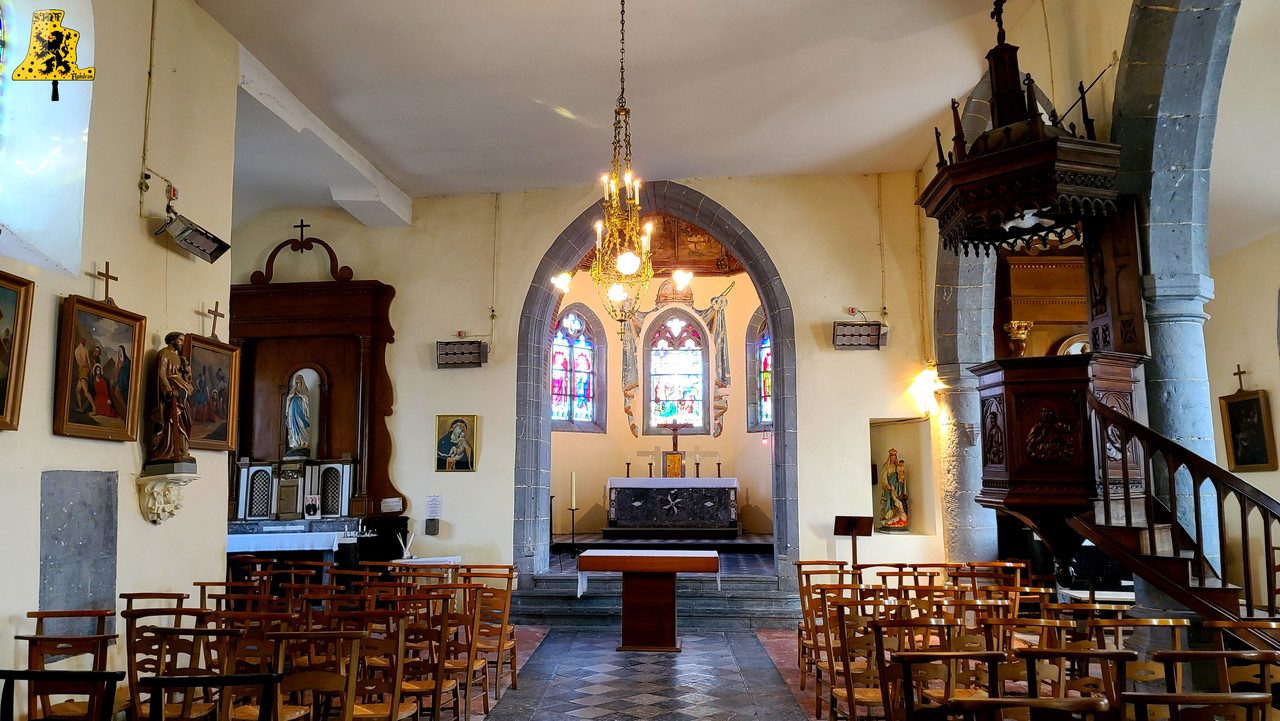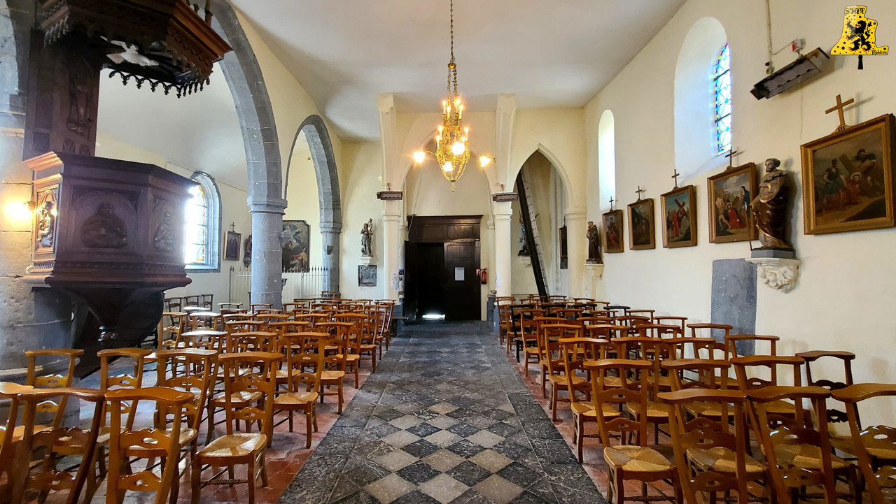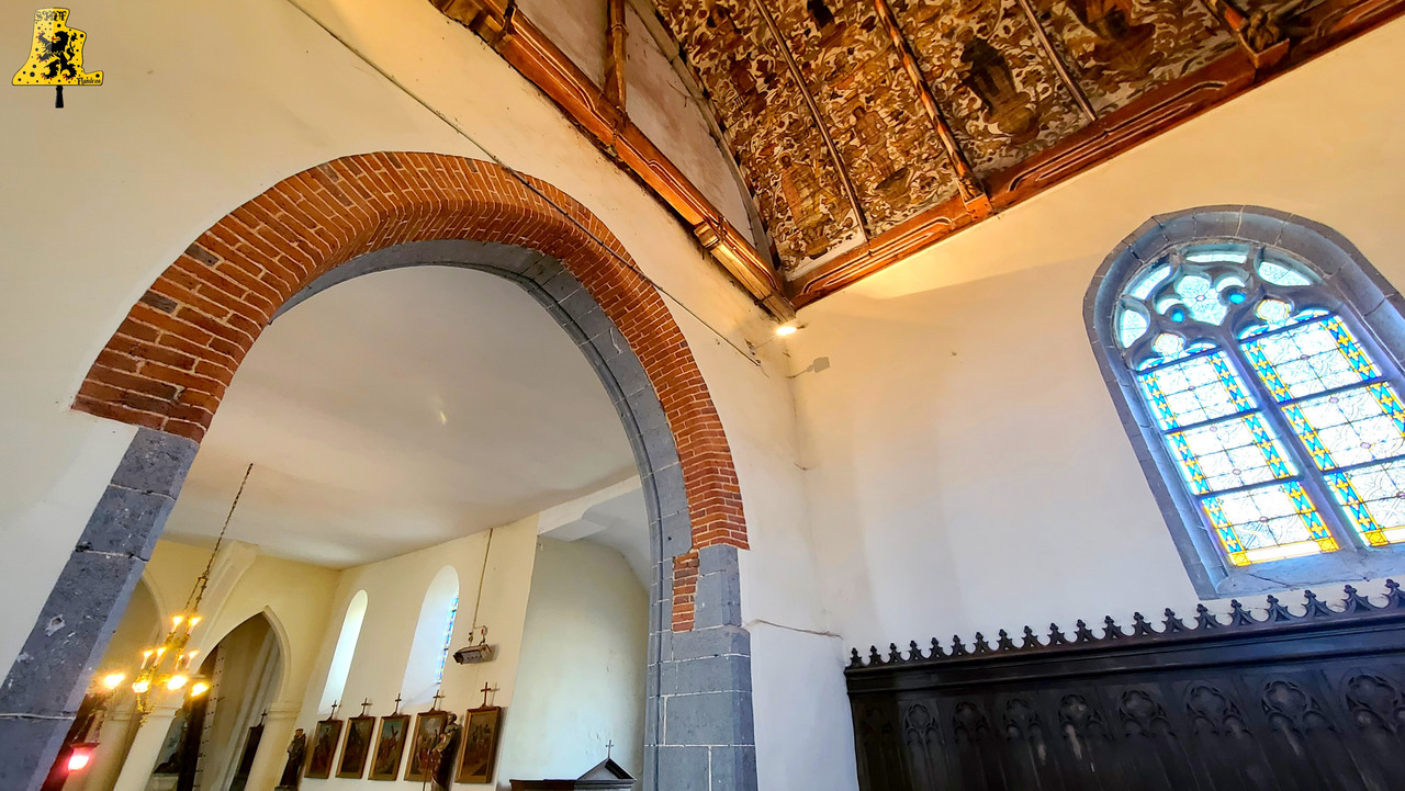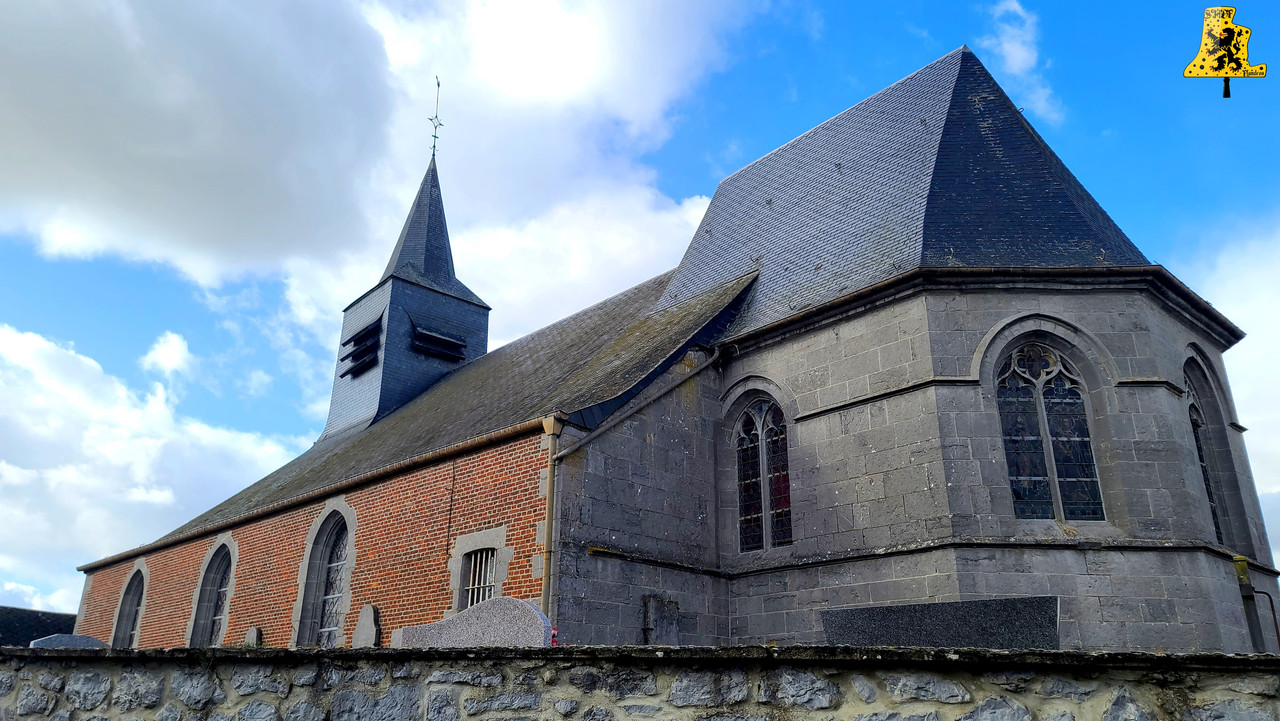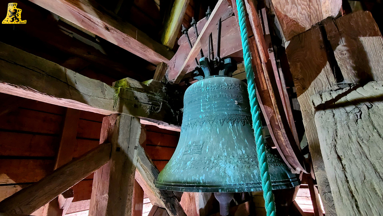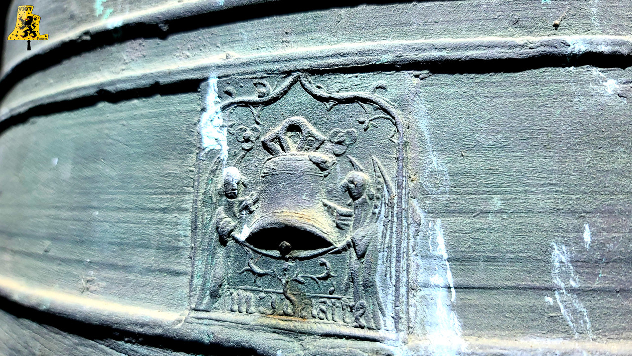 Pour cette nouvelle découverte, c’est à Lez-Fontaine que j’ai eu l’honneur de promouvoir le patrimoine des cloches. Cette petite commune limitrophe de Solre, où je me suis déjà rendu, compte 220 habitants. Son patrimoine est remarquable, avec notamment la présence d’un théâtre de verdure (De plein air), et d’une chapelle possédant des fresques très anciennes. L‘église du village n’est pas en reste, puisqu’elle est classée aux monuments historiques. On relèvera notamment sa voûte en bardeaux à charpente apparente peinte est un témoignage unique et extrêmement rare du style primitif flamand. Cette voute daterait de l’an 1 531! Concentrons-nous sur ce qui nous intéresse davantage, la montée aux cloches est assez ardue, dans un premier temps, il nous faut prendre une échelle partant du bas de la nef, jusqu’à la charpente. De là, ça se complique un peu, une autre échelle, un peu plus raide cette fois, nous emmène jusqu’aux cloches. Le clocher est rempli à merveille, et je peine à travailler confortablement. Sur les trois cloches, deux sont classées aux monuments historiques! C‘est un véritable miracle lorsque l’on sait ce qu’il s’est passée à Solre et Avesnes! Ces deux cloches ont donc survécus à la révolution et aux guerres! La plus grosse des cloches a été fondue en l’an de grâce 1 620. Avec l’aide précieuse d’un ami campanophile, et de Mr Sutter, président de la SFC, je peux vous donner avec quasi certitude les fondeurs qui ont œuvrés à la réalisation de cette cloche. Le premier blason visible sur la cloche est celui de Michel Brochard, et le second, d’Antoine Regnault (A.R.). Ils sont tous deux Lorrains, et ont fondu la cloche vraisemblablement sur place. Grâce à la mairie et a son site web, un travail de relevé d’inscriptions a été fait, les voici: « EN MEMOIRE DE HAVT ET PVISSANT SEIGNr DE CROY ET DAME MEE PHELS GVILTE DE COVCY SON ESPOVSE COMTE ET COMTESSE DE SOLRE, DV CONSEIL D’ESTAT, GRAND ESCVYER DE LEVERS AA SS GOVVr CAPne ET GRAND BAILLY DES VILLES ET CHASTEAVX DE TOVRNAY, CHEF D’VNE COMPnie D’HOMMES D’ARMES, DES ORDONNACES DE LEVRS AA. AN 1620. » Puis, sous ces textes, voici d’autres inscriptions, celles-ci sont entrecoupées,: « JE FLORIRAY COVCY, JASPIRERAY COVCY, POVR SERVIR LE VRAY DIEV, JESVEILLERAY LES CŒURS, EN MEMOIRE A TOVJOURS, DE SI BRAVES SEIGNrs. ». Cette jolie cloche nous chante un Fa3 un peu haut. Son poids est de 655 kg, pour un diamètre dépassant légèrement les 105 cm. La doyenne du clocher nommée Jeanne, est la cloche de taille moyenne. Elle fut fondue en 1 546, la même année que la campagne d’embellissement de l’église, portée par Jeanne De Ligne. D‘ailleurs, Jeanne De Ligne figure sur cette cloche à travers ces inscriptions en lettres gothiques: « Jeanne de ligne, dame de Molembaix, mil Ve XLVI.« . Bien qu’il ait un écusson avec une cloche, signe de la griffe d’un fondeur (Enquête en cours, serait-ce peut-être un certain Jean Delaitre? », je ne parviens pas à le déchiffrer. Cette vénérable cloche pèse 510 kg, pour un diamètre de 96cm, c’est un véritable joyau de l’époque gothique, qui nous chante un Sol3 un peu bas, d’où cette impression de demi-ton entre la grande et elle. L‘histoire de la plus petite des cloches est bien plus mouvementée. Avant la cloche actuelle, datée de 1 923, il y avait une cloche de 1 853, sur celle-ci, nous pouvions y lire qu’elle remplace une cloche de 1 720. La cloche actuelle a été fondue comme dit plus haut, en 1 923, par le fondeur C.Wauthy, fondeur à Douai. Elle possède un diamètre de 90 cm, pour un poids affichant 415 kg. Je tiens à m’excuser, car j’ai omis de relever le prénom de cette cloche… Le plus surprenant dans tout ça, c’est que l’ensemble des 3 cloches sont actionnées encore à la corde! C‘est ce qui rend la sonnerie unique dans mon aventure des Sonneries-Hauts-De-France! Comme vous l’aurez compris, à ce jour, cette découverte se classe parmi mon top3 des plus belles trouvailles! Trouvailles faite grâce à Amadéo, enfant de chœur de la paroisse. Il est tant de nous mettre en position pour sonner, Mr Hannecart à la petite cloche, moi-même à la moyenne, et Thomas à la plus grande! La suite, est a voir ci-dessous, dans la vidéo.