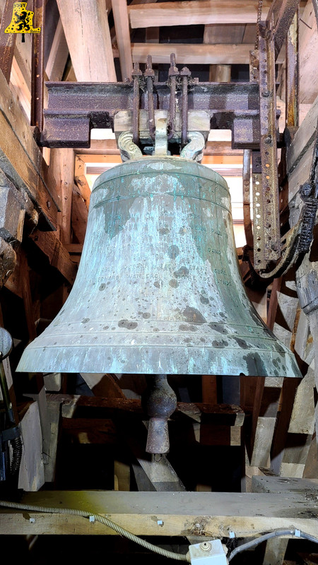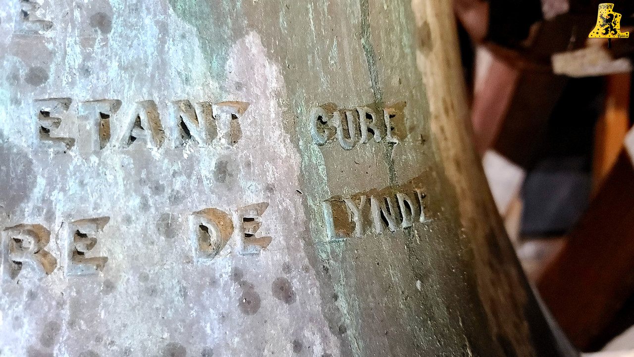 Pour cette nouvelle découverte, je me suis rendu avec enthousiasme à Lynde, petite commune située entre Saint-Omer et Hazebrouck. L‘une des parties les plus anciennes de l’église et sa tour, en effet, celle-ci est datée du XIIe, et est de style Roman-Byzantins. Sur la porte d’entrée principale, se trouve la date de 1 762. Enfin, un des éléments les plus remarquables est son orgue d’une richesse assez exceptionnelle, tout comme son mobilier liturgique. L‘église « Hallekerque » s’est vu offrir une très lourde rénovation faites en 3 tranches, ayant couté plus de 2 millions d’euros à la commune, quasiment entièrement subventionnée par les pouvoirs publics, et par la commune elle-même. Je ne peux qu’être admiratif devant ce défi relevé, car ne l’oublions pas, mais Lynde n’a pas les mêmes moyens qu’une petite ville, le village ne compte que 750 âmes! Il aura fallu plus de 10 ans pour retrouver une église digne de sa superbe, j’ai moi-même été ébahi par la richesse que ce lieu cache en son sein. La montée aux cloches se fait de la façon suivante, et vous allez voir, que c’est un vrai labyrinthe. Il nous faut accéder à l’orgue de l’église, une échelle assez raide située juste derrière l’instrument nous est à prendre, celle-ci nous emmène jusqu’à la charpente de la nef, il nous faut la traverser sur toute sa longueur, afin d’arriver dans la tour. Une fois ici, nous pouvons admirer le cabanon abritant jadis, l’horloge mécanique. Aujourd’hui, seuls deux marteaux de tintement y sont visibles. Il nous faut encore monter deux séries d’escaliers fraîchement refaits, avant d’être côte à côte avec les dames de bronze. Le beffroi en bois comporte un espace vide, mais je ne peux pas vous dire qu’il y a la présence d’une cloche fantôme, en effet, il n’y a aucune trace d’installation précédente. Il se peut qu’une troisième cloche était prévue, mais que les moyens manquèrent, et donc, cette cloche ne vit jamais le jour. Comme vous l’aurez compris, dans ce ravissant clocher, il y a deux cloches, celles-ci chantent le La# de la 3e octave, et une Sol# du même octave. La plus grande des cloches, nommée Marguerite-Jean-Claude, est la plus récente. Elle fut fondue par la célèbre fonderie Cornille-Havard, en 1 981. C‘est cette fonderie qui a fondu 8 des 9 nouvelles cloches de la cathédrale de Paris. Elle fut bénite par Monseigneur Adrien Gand. Son parrain n’est tout autre que la personne que j’ai rencontrée lors de mon intervention, Mr Jean-Claude-Arnouts, sa marraine est Mme Marguerite Bocquet-Debacker. Cette cloche a été installée par les soins de l’entreprise Mimas. Pour ce qui est de ses mensurations, elle nous fait 93 cm de diamètre, pour un poids de 465 kg. La petite cloche se nomme quant à elle, Marie-Joseph, elle fut nommée ainsi de par son parrain, Pierre-Joseph Vampouille, maire de l’époque, et sa marraine, Marie-Catherine Maerten-Cousyn. Nous ne savons pas qui, nous où elle a été fondue, mais il se peut que ce soit le fondeur audomarois Garnier qui la fonda en 1 806. La cloche fait 84 cm de diamètre, avec un poids affichant 360 kg. Elle a eu depuis peux, un tout nouveau battant. De plus, les deux cloches se sont vu offrir deux nouveaux monteurs, leur permettent de sonner de nouveau à pleine volée, chose qui n’avait pas été le cas depuis une dizaine d’années. Durant la sonnerie, étant au pied de l’édifice, une passante m’a interpelé, en me disant que les cloches lui avaient manquées énormément. Je trouve ça touchant, et ça me motive encore plus pour la suite de mes découvertes! Autre chose assez notable, la commande de mise en route des cloches a été changée 2 jours avant ma venue, j’ai donc eu la chance de l’inaugurer officiellement (Outre les essais par les campagnistes). Voilà qui vient clore cette très belle découverte en pays Flamand, découverte dont je suis très fier!