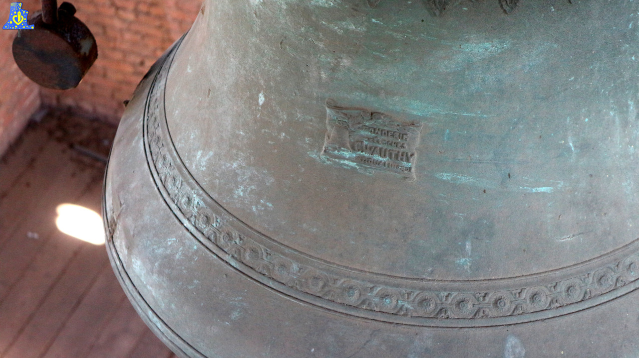 Nom: « La Cloche Des Heures », Diamètre Env. 90cm, Poids Env. 400 kg, Fondue par C.Wauthy, en 1 930, à Douai, Chante le La3