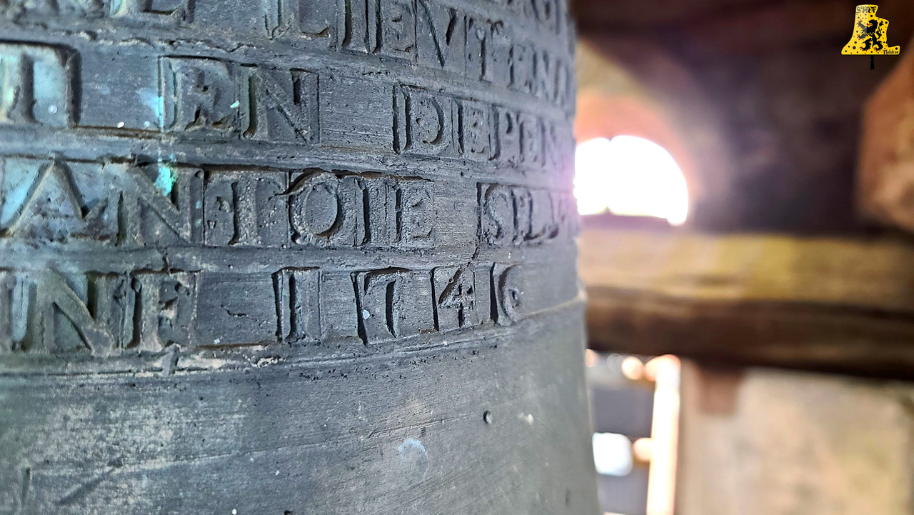 Pour cette nouvelle visite, Yannick nous emmène une fois de plus, dans un lieu charmant de son département, que j’ai nommée la Côte D’or. Cette nouvelle découverte se fait à Orret, qui se classe a la 59e place des communes les moins peuplées de France. Orret est pour ainsi dit, assez perdu. En effet, la commune se trouve sur ce que l’on appel, la « Diagonale du vide », c’est un axe d’hyper-ruralité, qui va de la creuse, jusqu’au nord-Est de la Bourgogne. Orret n’en reste pas moins intéressant, en effet, le village, fleuri, a su garder son charme champêtre, et a su garder son identité d’entant. L‘église, qui est en réalité une chapelle, est sous le vocable de Sainte-Reine, l’intérieur est relativement bien préservée, grâce aux habitants et aux locaux, qui entretiennent le lieu, malgré le peu d’office. L‘accès a la seule et unique cloche est assez simple. Comme je l’ai dit plus bas, il n’y a qu’une seule cloche, mais celle-ci est très intéressante. La cloche, nommée Marie-Anne, est datée de l’an 1746 ,ce qui reste rare en France, comte tenue des différents conflits que le pays a connu. En revanche, nous n’avons pas pu identifier l’artiste de l’œuvre. Cette petite cloche de 75 kg, chante un très joli Fa#4. La cloche s’est vue offrir, un bon coup d’entretien de la part d’Antoine, de chez Campan’est, et de Yannick, Antoine et Thomas!