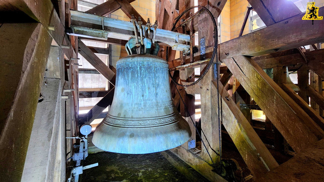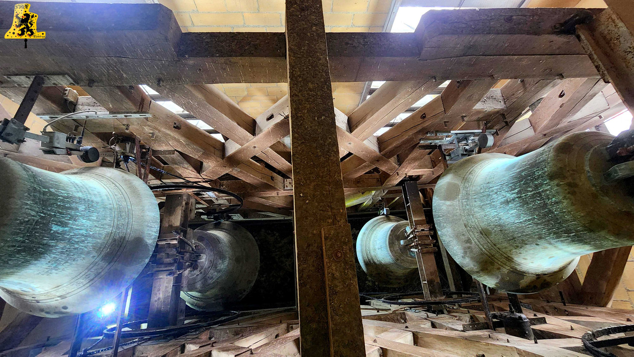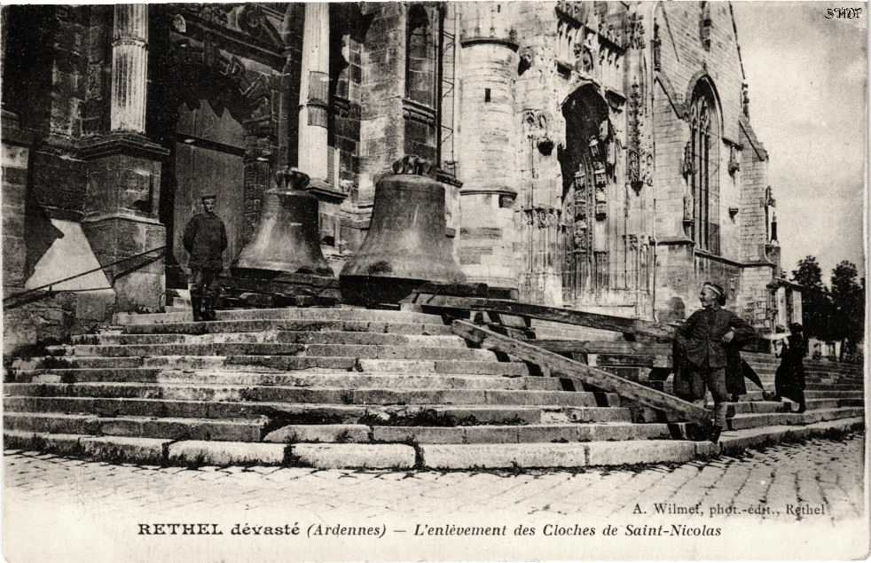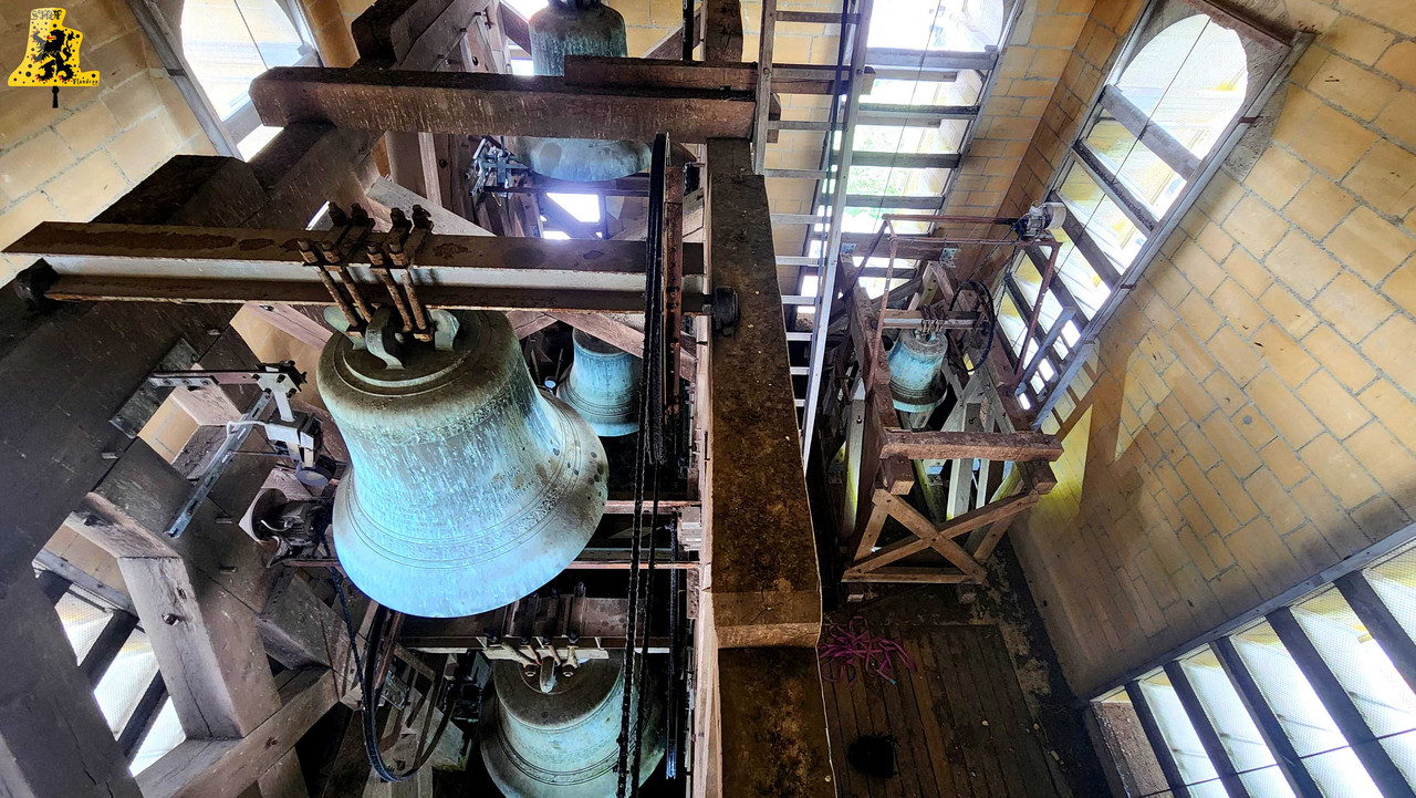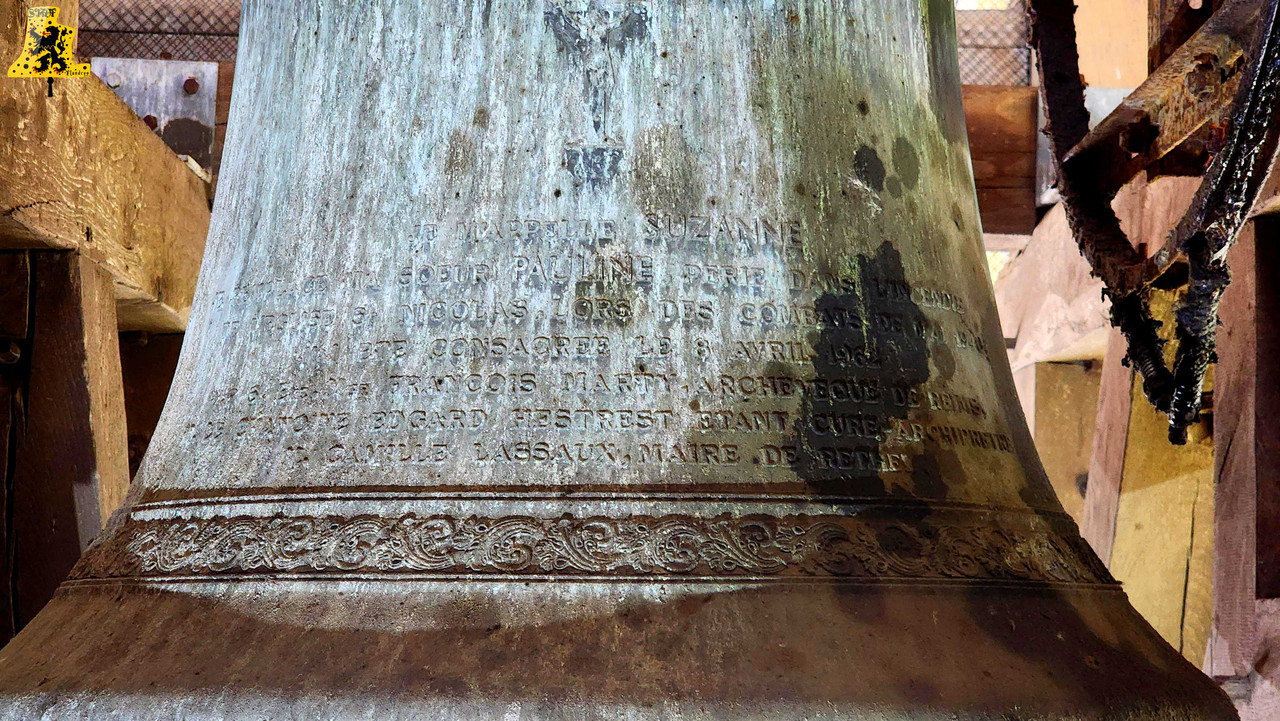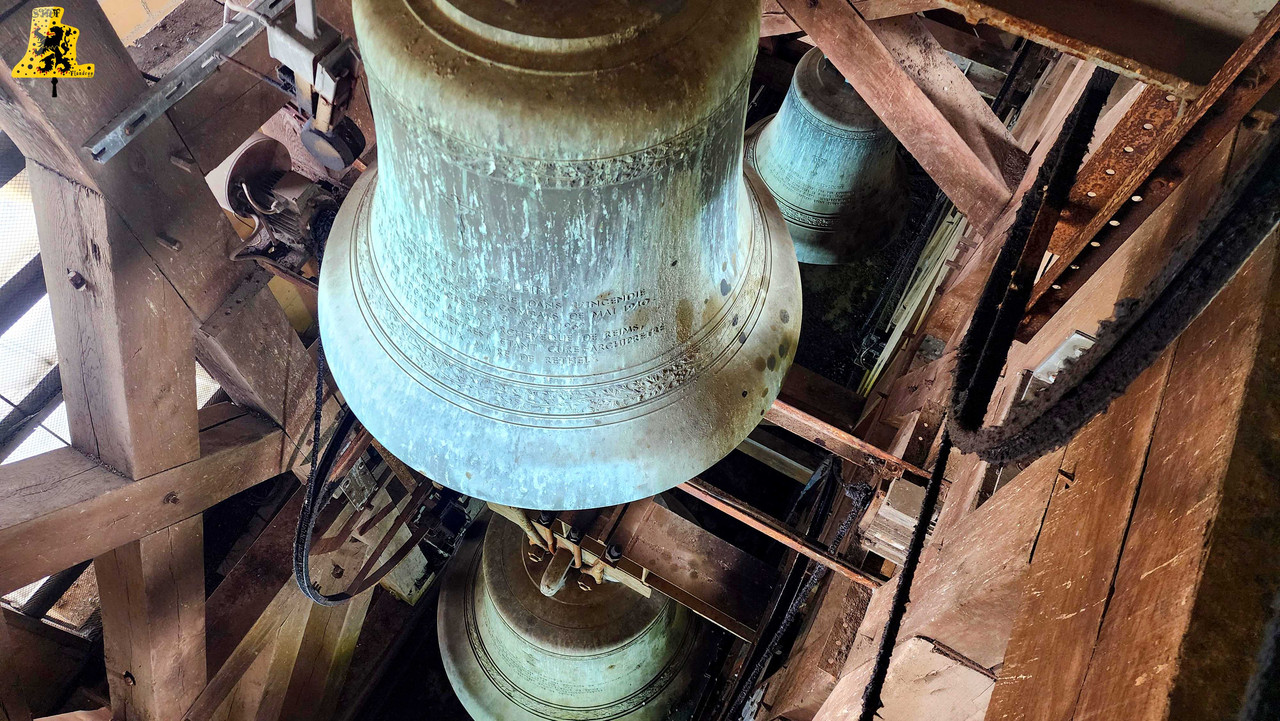 Après avoir été à Epernay, c’est du côté de Rethel que j’ai eu la chance de découvrir le patrimoine campanaire de l’église Saint-Nicolas. Rethel est la première ville ardennaise dans laquelle j’ai la chance de me rendre pour la réalisation d’un reportage sur les cloches. Cette ville de 7 800 habitants, située entre Charleville-Mézière et Reims, m’est liée également de par mon enfance. L‘imposante église sous le vocable de Saint-Nicolas, fut construite sur les ruines d’un édifice antérieur du 13e siècle. L‘édifice fut pas mal de fois marqué par l’histoire via des remaniements, mais aussi de par les guerres mondiales, qui ont fait subir à l’église, des dommages considérables. Ce n’est qu’en 1 969 que l’église fut entièrement réparée des dommages des conflits, avec la pose de la nouvelle toiture. L‘intérieur de l’église est très particulier. En effet, elle possède deux nefs, avec un autel chacun. C‘est une chose assez particulière. L‘autre « bizarrerie » est l’emplacement du Grand’Orgue, ce dernier est situé à même le sol. C‘est assez surprenant. L‘église possède de beaux vitraux ainsi qu’un mobilier très intéressant. Nous allons pouvoir monter dans la tour, dont le clocher culmine à 50 mètres, qui elle, est datée de l’an 1 614. Dans la chambre des cloches, 5 dames nous sont observables, avec une histoire dont nous avons pas mal de détails. Avant de vous conter l’histoire de ces cloches, je tiens à remercier très chaleureusement Mme Namur, pour le prêt des archives que son papa avait alors pris soin de garder de son vivant, sans eux, il est clair que l’article aurait été bien moins fourni.