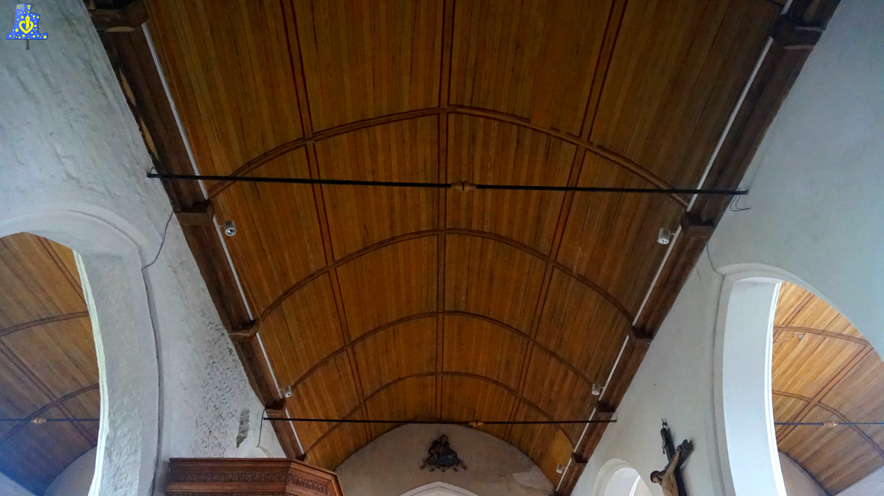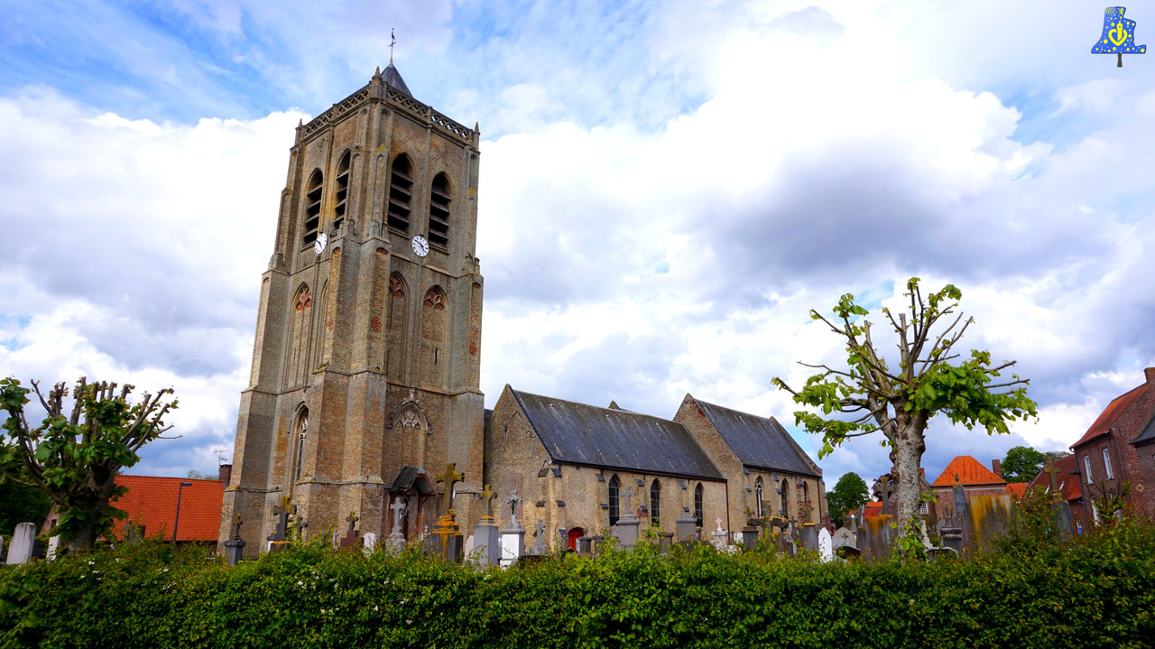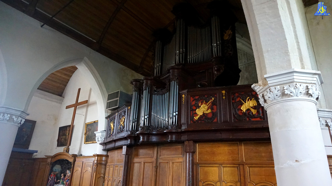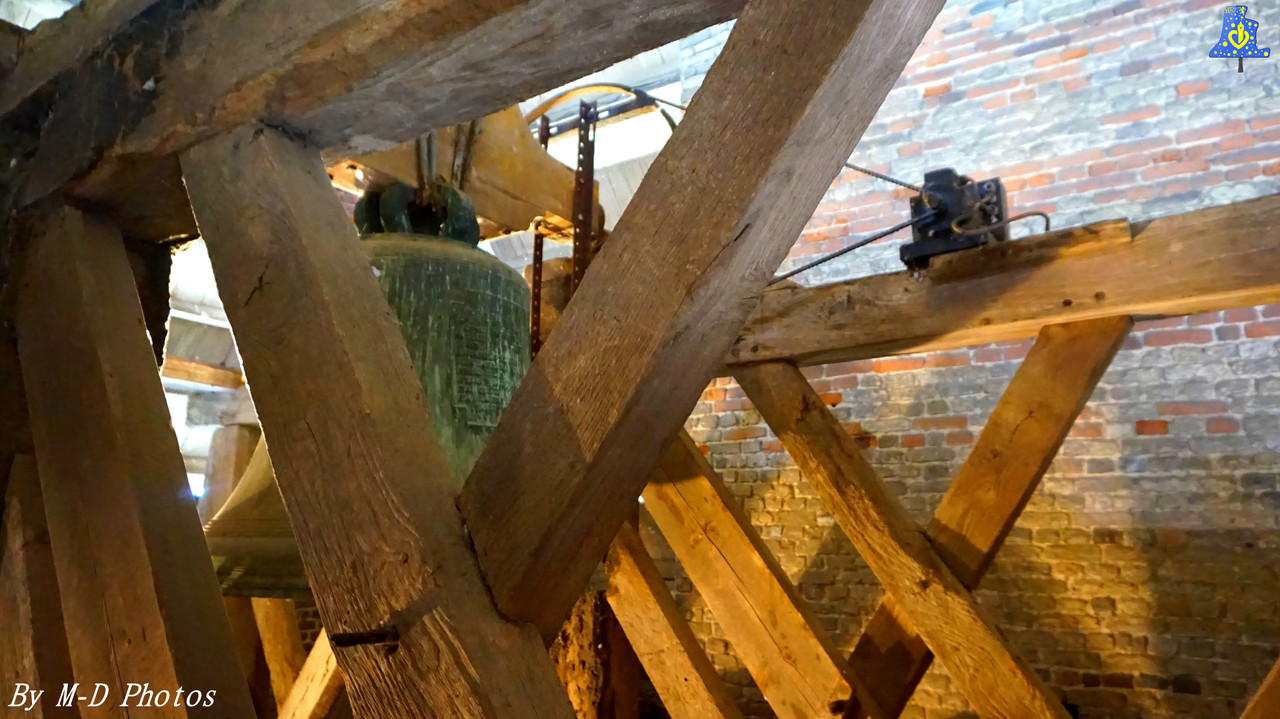 Dans ce joli petit village, trône fièrement une église de taille imposante, pas étonnant, avant le passage de la voie ferré, Rubrouck était un village de 1 000 habitants. Dans cette église, logent deux cloches, supportées par un immense beffroi de bois. La plus petite des cloches comporte des inscriptions et des décors assez particuliers, ce qui, de prime abord, me laissa penser qu’il s’agissait d’un fondeur inconnu dans mon « répertoire ». J‘avais vu juste, si le premier fondeur me disait quelque chose, son associé en revanche, ne me disait rien. Martin Drouot et un certain Garnier la fonda en 1 825, a en croire les inscriptions, cette cloche fut un don de la famille Morel. Elle semble porter un nom, puisque ses inscriptions détaillant son nom se termine ainsi « m’ont donnés le nom de… » Puis deux saints sont représentés de chaque coté, il s’agirait de le vierge Marie, quant à l’autre, d’après mes recherches, il possède des similitudes avec le patron de l’église, c’est-à-dire, Saint-Sylvestre, je le note, mais rien n’est sûr. Elle a comme diamètre 110 cm, pour un poids de 820 kg. La grosse, qui est particulièrement intéressante de par son époque, a été fondue en 1 653!, Je ne pus prendre les inscriptions flamandes, puisque je ne sais pas les traduire, en revanche nous savons que c’est un certain François Fiefvet qui en est son créateur, aucune autre info sur ce fondeur. La cloche Pèse un joli poids de 1 160 kg pour un diamètre de 120 cm environ. C‘est une bien belle découverte que j’ai eu la chance de faire, bien que seules deux cloches sont dans cet imposant clocher! Ah, j’allais oublier, les notes des cloches sont le Mi3 un peu grave, et le Fa#3!