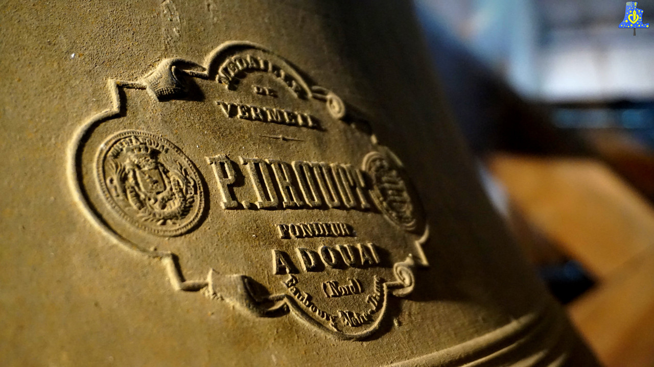 Nom: « Sainte-Marie », Diamètre 128,2 cm, Poids 1 250 kg, Fondue par P. Drouot, à Douai, en 1 876, Chante le Ré3