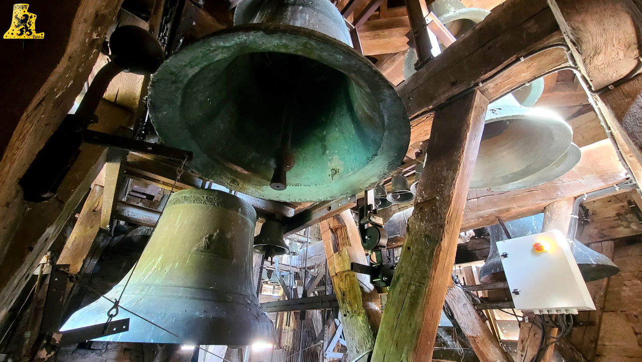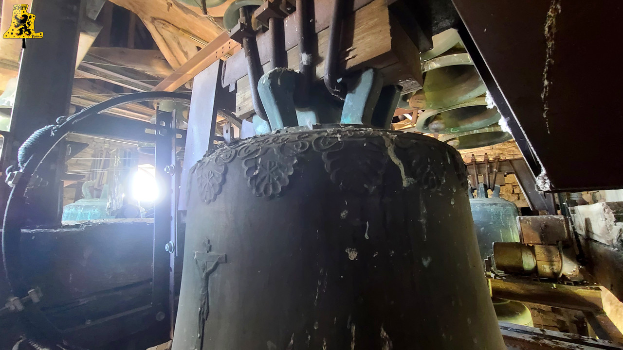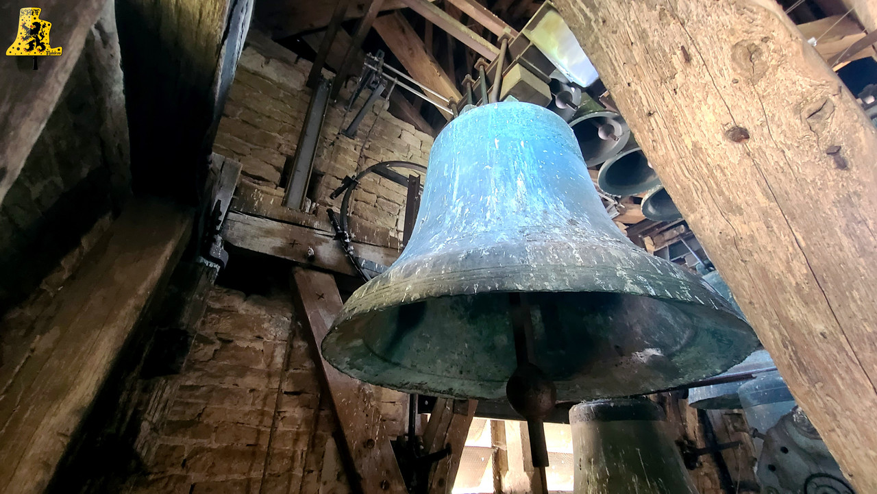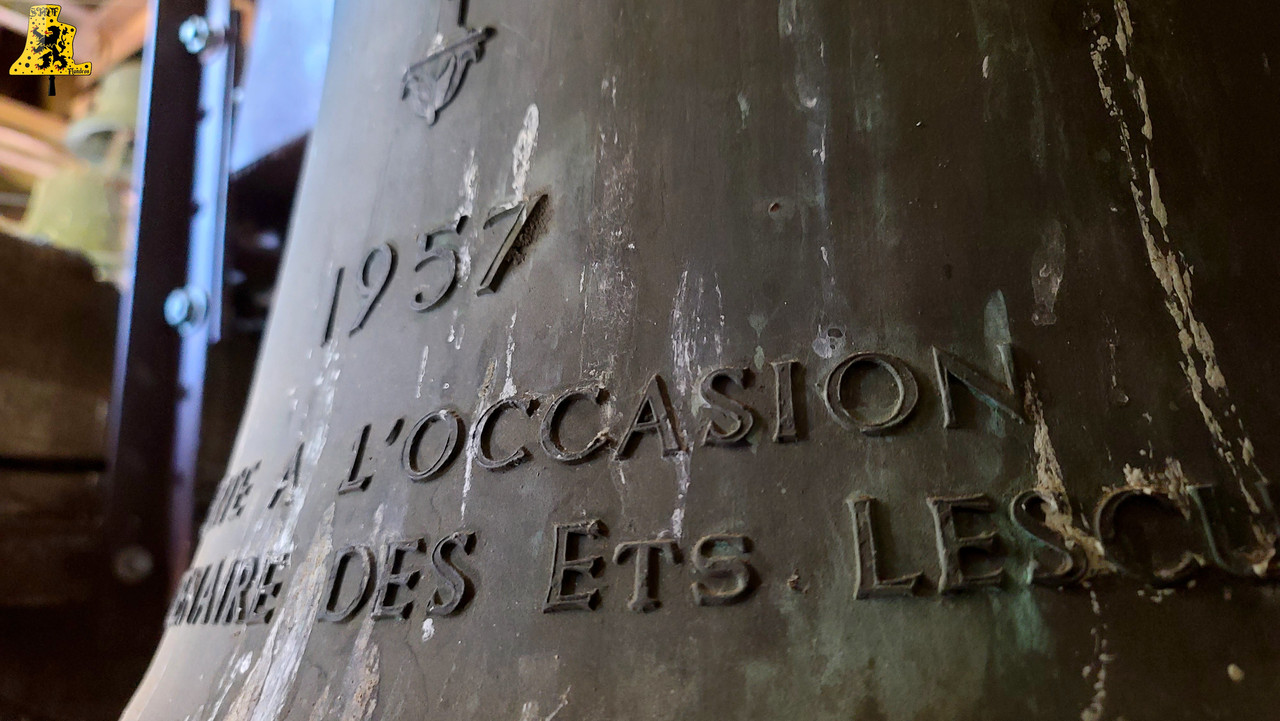 Les amis, pour cette nouvelle découverte, nous allons nous attaquer a très gros morceau de la campanologie de Côte-D’or, car, c’est à Selongey que nous nous rendons. Bien que possédant seulement 2300 âmes, Selongey est une ville où il fait bon vivre. Commerce, écoles et calme rythment la vie de la commune, le tout, au rythme des 48 cloches que compose le carillon. L‘église du village possède des dimensions plus qu’honorables, certains disent même qu’elle ressemble à une basilique, tant l’intérieur est impressionnant, chose qui, une fois sur place, se vérifie. Le tout est entretenue avec soin par la municipalité. Ne nous attardons pas davantage en bas, et montons jusqu’aux cloches. Mais avant ça, il me faut vous partager l’histoire du carillon, qui nous est contée dans la nef, via des affiches. La première datation de l’instrument nous est inconnue, mais il semble qu’il y avait alors 17 cloches, qui allaient du Do4, au Mi5, avec en plus, 3 cloches de volée (Probablement celles en place actuellement), cet instrument fut agrandi plusieurs fois au fil du temps: de 8 cloches en 1 957, dont une mise en volée, ce qui porte à 4, le nombre de cloche à la volée, 6 en 1 968, 15 en 1975 et enfin, 16 cloches en 1980. L‘instrument est d’une qualité indéniable d’après les différents Trézeleur Bourguignon (Carillonneur en patois local). De nos jours, les cloches sonnent encore avec un clavier type « Coup de Poing ». Nous allons pouvoir passer aux cloches qui nous intéressent le plus, les volées. Tout d’abord, il faut savoir que les trois plus grosses sont antérieures à toutes les cloches fixes, elles n’ont pas les même inscriptions, et celles-ci sont assez dégradées par le temps. Jeanne, de son nom, est la plus grosse des cloches, elle possède un diamètre de 127 cm, pour un beau poids de 1 235 kg. Elle est accompagnée par sa seconde sœur, dont le nom nous est trop illisible, qui elle, pèse 860 kg, pour un diamètre de 114 cm. La troisième cloche, dont les inscriptions sont ici aussi, très dégradées, pour les déchiffrer, nous pèse 660 petits kilos, pour un diamètre de 103 cm. Ces trois cloches ont toutes été fondues par B.Gaulard et P.Hanryot, en 1 807. La plus petite des cloches de volée, est une offrande de la société Lescure pour ses 100 ans, Lescure, connue de nos jours sous le groupe « Seb », car Selongey est le lieu où a vu naître cette société tant reconnu dans le monde. Cette cloche, tout comme l’ensemble du carillon, a été fondue par les ateliers Paccard, en 1 957! Cette cloche de 360 kg, ne porte donc, aucun nom. Enfin, la petite mention pour la 49e cloche de l’église (Et oui!), qui semble être une cloche Goussel. Cette cloche ne sonne malheureusement plus. C‘est une belle découverte que nous avons fait, après Dijon, plus grand carillon de Côte-D’Or, mais surtout de ka région, je suis fier de vous partager le deuxième plus gros carillon du 21! Sonnerie de qualité, le carillon de même, dans une église aussi ravissante que sa ville, tout était parfait!