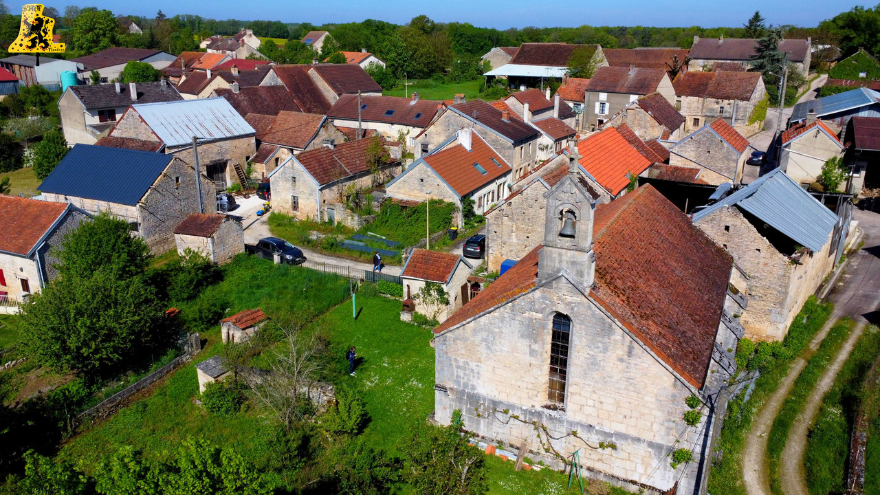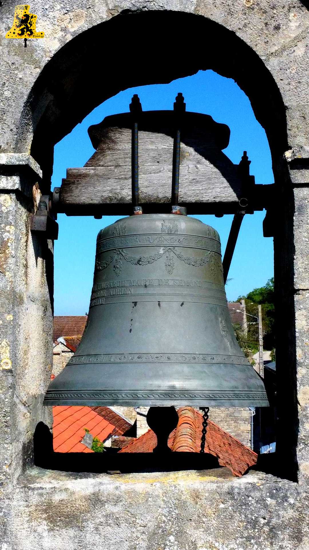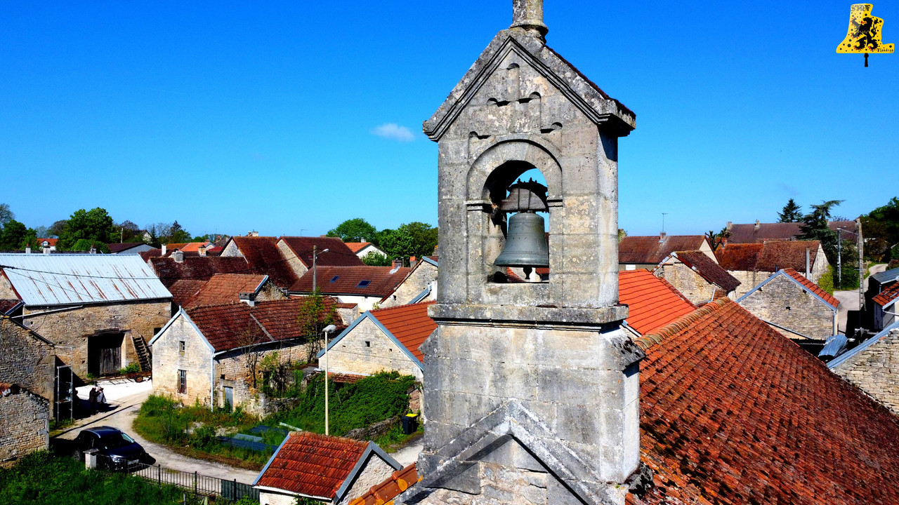 Commune de seulement 25 habitants permanents, c’est à Semond que j’ai eu la chance d’assister à la sonnerie de la seule et unique cloche de l’église du village. J‘ai bien dit église, puisque malgré ses faibles démentions, l’édifice à bien le statut d’église. L‘église de L’immaculée-Conception possède l’un des rares clochers mur du chatillonnais. Celui-ci s’élève à environ 15 mètres. L‘église telle que nous la connaissons aujourd’hui a été refaite en 1 820. Avant cela, c’était une chapelle de l’ancienne dépendance de l’abbaye de Quincy. L‘intérieur est tout aussi intéressant que l’extérieur, avec la présence de plusieurs statues: une de Saint-Antoine de Padoue datée du XVIe siècle, et une statuette « Education à la vierge » du XVIe siècle. L‘église possédait aussi une autre statue, celle de Saint-Roch, qui malheureusement, fut volée en 1 971. La nef est remplie de bancs, permettant aux nombreux fidèles présents ce jour-là, de pouvoir célébrer la messe dans de bonnes conditions. Comme vous vous en doutez, il m’était très difficile d’avoir accès à la cloche, heureusement que mon « super drone » était là, j’ai pu, avec ce bel outil, réaliser de jolis plans vidéos et photos. J‘ai aussi été grandement aidé par Yannick et Mme le maire, qui m’a fourni aimablement une archive communale, indiquant la somme et l’année de commande de la cloche. La commande de cette cloche fut passée auprès de la fonderie bien présente dans le secteur, des Richebourg-Petitfour, Fondeurs alors à Arbot, et ce, en 1 874. Cette cloche a alors coûtée 666 francs de l’époque à la commune. Je n’ai malheureusement pas d’autre information sur cette cloche. Je peux en néanmoins vous estimer le poids et son diamètre, qui seraient d’environ 65 cm, pour un poids de 150 kg. Enfin, sa note est le Ré4. Vous allez constater que la vidéo n’est pas comme d’habitude, j’ai voulu innover un peu, en sachant que la qualité audio de l’enregistrement n’allait pas être très bon, puisque l’enregistrement allait se faire depuis le pied du clocher (Audio avec mon téléphone). Pour cette découverte, l’avant-dernière de ce week-end en Bourgogne, elle fut vraiment très sympathique, et ce, dans un très joli village isolé de tout!