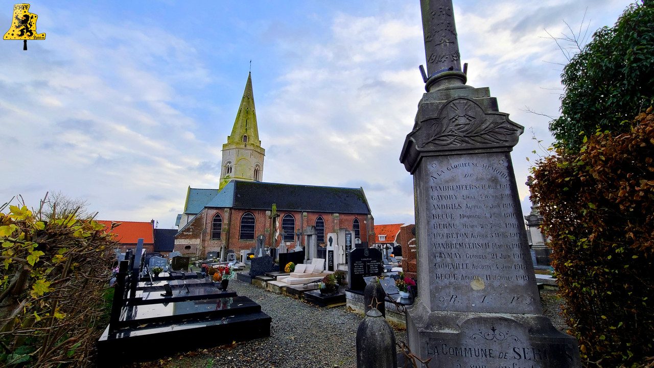 C‘est ce qui s’annonce comme la dernière découverte campanaire de cette année 2 021, je m’apprête à vous faire découvrir le patrimoine du village de Sercus, dont le clocher du XIIe, a subi une très grosse restauration, dont les travaux se sont fini, il y a 2 mois! Lors de mon premier contact avec Mme le maire, elle m’avait alors expliqué que les cloches ne sonnaient plus à la volée, du fait que le clocher état trop fragile, cela fait donc des années qu’elles ne sonnent qu’en tintement. Quelques mois plus tard, je pris rendez-vous afin de reporter sur leurs cloches. Le jour de la visite, je fus très bien accueilli, nous avons longuement échangé sur mon projet de reportage dans les Flandres, et sur les projets de la commune aboutis dernièrement. L‘église en elle-même est très jolie, je suis toujours aussi amoureux des églises de type « Hallkerque », c’est a dire, des églises Flamandes à 3 nefs, et Sercus en possède une. La montée se fait par la sacristie, elle est assez aisée, du fait que des travaux d’accessibilité ont été entrepris, il ne faut cependant pas avoir le vertige, puisque la fin de la montée est marquée par deux escaliers en bois assez raides d’environ 3 mètres. Arrivé au clocher, je n’ai pu que constater que le temps avait eu raison du beffroi, et des cloches. En effet, les deux cloches ne peuvent sonner en toute sécurité à la volée. La plus grosse des cloches possède une particularité encore jamais vue de mes yeux, puisqu’elle fut percée de part en part par ce qui semble être un obus, durant l’une des deux guerres mondiale! C‘est impressionnant à voir. Elle fut tout de même électrifiée pour sonner en volée « Franc ». Nous sentons lors des tintements horaires, que le son est quelque peu altéré, mais étonnamment, la note n’est pas disgracieuse. Cette cloche, tout comme sa petite sœur, a été fondue en 1 810, par les fondeurs Garnier Père et Fils, basés à Saint-Omer. Elle se prénomme Marie-Catherine. Elle a comme diamètre 88 cm, pour un poids estimé de 400 kg. Sa sœur dénommée « Marie-Louise-Joseph », bien plus petite, affiche sur la balance, le poids de 80 kg, alors qu’elle possède un diamètre de 55 cm. Cette charmante petite cloche n’a semble t’il, jamais été électrifiée. Un peu plus bas, dans la partie « Pistes Audio », vous allez trouver une simulation du plenum que pourrait avoir l’église, après restauration des cloches. Avant de finir, je voudrais revenir sur une autre cloche, ou devrais-je dire « Cloche Fantôme », car sur le beffroi en bois, il y a un espace vide, qui jadis, supportait une cloche, de taille intermédiaire, en tout cas, les traces d’elle ne font pas l’ombre d’un doute. Mme le maire a à cœur de restaurer les cloches du village, pour que celles-ci puissent redonner vie au village, je n’en doute pas, je l’ai senti très attachée au patrimoine de son village.
