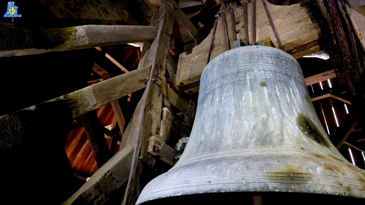 La deuxième visite de beau samedi 20 juin, se déroule dans le charmant village de Solre-Le-Château. L‘imposante église du village, a été bâtie entre le XIV et le XVII siècle. Les clochers sont penchés pour la simple et bonne raison, qu’il doivent pouvoir contrer le fort vent dominant, car avec avec une telle hauteur (60 mètres environ pour le clocher principal), la charpente subit une prise au non négligeable. Le clocheton du chœur dispose également de cette particularité. La montée au clocher, très bien sécurisé, se fait par un escalier en colimaçon, celui-ci nous emmène directement dans la chambre des cloches. Plus haut, nous pouvons admirer une vue à 360° sur le village et ses alentours, en revanche, pour des raisons évidentes de sécurité, il nous est impossible d’atteindre le bulbe, qui lui, est perché à 55 mètres. Redescendons au niveau des cloches. Il y a deux cloches, ce qui est frappant au premier abord, est la grande taille du bourdon, et la petite taille de sa compagne, un peu a la manière des duos Franc-comtois que j’ai pu croiser par le passé. D‘après les archives, il nous faut remonter jusqu’en l’an 1 260, là où une première cloche fut fondue pour le village, qui n’avait alors pas le nom que nous lui connaissons aujourd’hui. Cette cloche se nomma « Dindin ». Par la suite, l’église fut victime d’un incendie en 1 611, Dindin avait alors survécu à cette épreuve du feu. Quelques mois plus tard, la décision fut prise de faire fondre une nouvelle cloche. Ce Bourdon est encore présent de nos jours. Prénommée Ysabelle, j’ai longtemps cru qu’il était daté de l’an 1 612, comme le stipulait ses inscriptions, mais, il n’en est rien. En effet, sur le côté de la cloche, nous pouvons y lire « Fêlée en 1 873 par cause accidentelle inconnue… », puis « Refondue la même année par les Drouot à Douai ». En fait ce qu’il s’est passé, c’est que le nouveau bourdon a été refondu sur le même modèle que l’ancienne cloche, d’où les inscriptions disant que la cloche a été fondue en 1 612. Les inscriptions nous apprennent également que cloche fut également fondue à Douai (Dovai), par un certain Florent De La Court. Les refontes dans ce style sont véritablement intéressantes, d’autant qu’ici, la cloche a su conserver le son caractéristique de cette époque. Actuellement, Ysabelle mesure 160 cm de diamètre, pour un poids de 2 400 kg, lorsqu’elle se balance, elle exerce un effort de 7t600 sur cet imposant beffroi. La note qu’elle nous chante, est un très puissant Si2. Pour ma part, c’est une cloche que j’apprécie à sa juste valeur, on sent une certaine histoire qui se dégage d’elle lorsqu’on l’entend à la volée. Passons à la petite. Beaucoup plus récente que sa grande sœur, Jeanne-D’arc-Juliette-Henriette a été fondue elle aussi dans les ateliers de Douai, mais cette fois-ci, en 1 920 de par les mains de Charles Wauthy. Ici aussi, les inscriptions nous apprennent des choses, bien qu’elle fût fondue dans un style plus contemporain. Selon les écrits, la nouvelle cloche contiendrait 8,5 kg de bronze de sa prédécesseur. Et cette cloche n’est tout autre que Dindin, cloche médiévale de 1 260, qui fut détruite par les Allemands en 1 918… Jeanne-D’Arc pèse aujourd’hui 330 kg, pour un diamètre de 84 cm. Elle chante le La3 Mr Dehem, Maire de la commune, m’a proposé d’aller jeter un œil en fin de reportage, à une petite cloche entreposée dans le grenier de la mairie, curieux comme je suis, j’acceptai sans rechigner, c’est alors que nous avons prit la direction de l’hôtel de ville. Une fois arrivé à bon-port, je vis cette toute petite cloche de 23 kg. La chose qui la rend exceptionnelle, est sa date, nous pouvons y lire 1 743! La curiosité de cette vieille dame, elle se nomme « La Cloche De L’Hôpital », Il s’agissait de la cloche qui était comme son nom l’indique, affectée à l’hôpital de la ville, qui fut par la suite, fermée. Il n’y a hélas, pas la moindre d’indication sur le fondeur, ni même son lieu de fonte. Une vraie petite surprise qui fait toujours plaisir, après de genre de belle découverte dans un lieu magnifique.