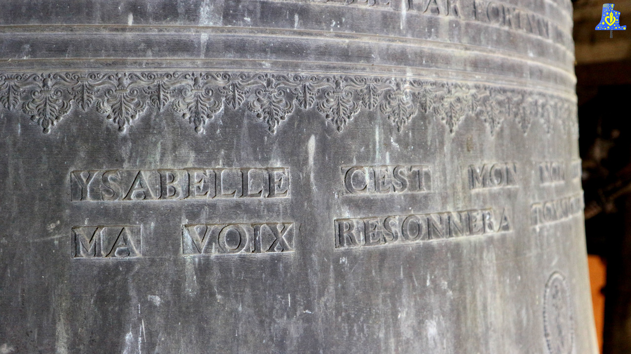 Nom: « Ysabelle », Diamètre 160,5 cm, Poids 2 400 kg, Refondue par Drouot, en 1 873, à Douai, Chante le Si2