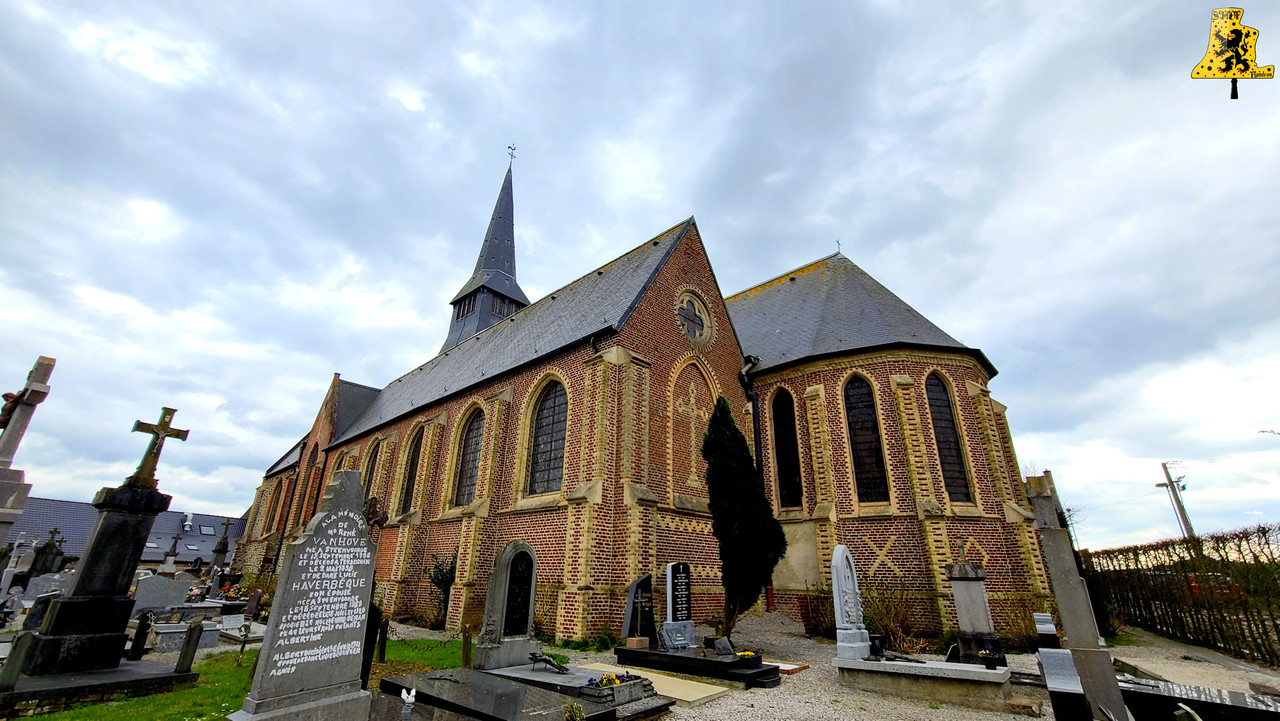 Bienvenue à Terdeghem, charmant village de quelque 500 âmes, profitant d’un calme des plus ravissants des Flandres. Au centre de ce beau village, trône l’église gothique de type Halkerque, dont les premières pierres sont du XVIe siècle. Les églises Halkerque, typiques des Flandres, se démarquent de par ses trois nefs, il se peut que certaines églises n’en possèdent que deux. Dans le petit clocher, située au cœur des nefs, se trouve, à ma grande surprise, trois cloches, celles-ci sont de plus, dans un état assez remarquable. Les cloches ont subi en 2004, une belle restauration. Tous leurs système ont été changée, ce qui comprend les battants, roues de volée, chaînes, ressort, ferrures et leurs jougs. Ces trois cloches ont un joug relativement conséquent, surtout pour la Grand’cloche, de ce fait, l’effort sur la structure du clocher, et du beffroi est bien moindre qu’une cloche sonnant de façon « classique ». Ce genre de joug agit comme un contrepoids, ralentissant ainsi le rythme d’oscillation de la cloche. Ces trois cloches sont toutes issues de la même fonderie, mais nous n’avons cependant, aucune mention sur les inscriptions. Les seules indications qui nous ont été données, sont qu’elles ont été fondues à Péronne, dans la Somme, en l’année 1 821. Leurs inscriptions sont assez compliquées à déchiffrer, mais j’ai eu la chance de trouver les noms de ces cloches. La plus grosse des cloches se prénomme « Marie-Vierge », ne pèse pas moins de 640 kg, pour un diamètre de 105 cm environ. Marie-Cléopha quant à elle, pèse 470 kg, pour un diamètre un peu en dessous des 95 cm. Pour finir, Marie-Salomé possède un diamètre de 345 kg, avec un diamètre de 85 cm. Les notes sont les suivantes: Fa#3, Sol#3 et le La#3. Nous avons là l’accord du Pater-Noster. Les cloches possèdent de fins décors: La croix du Christ, magnifiquement détaillée, entourée de 8 feuilles aux détails assez saisissants, le tout surplombé par les inscriptions, prises en sandwich entre deux belles frises.