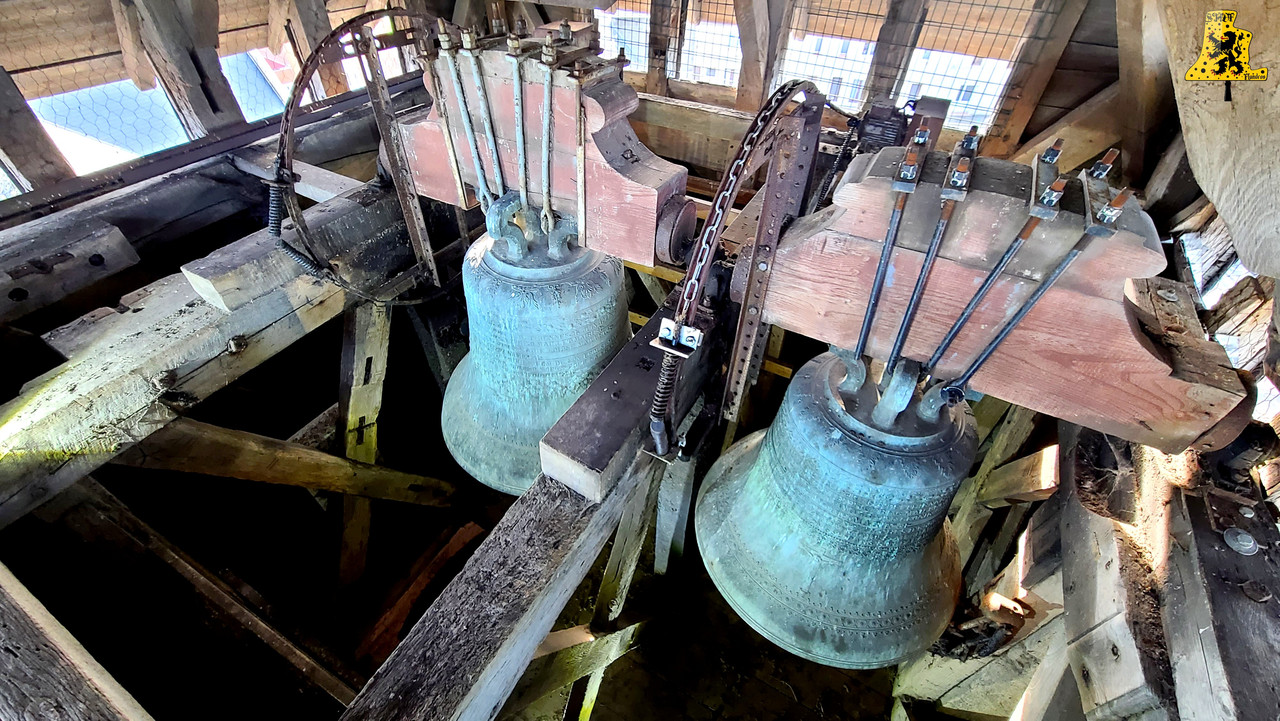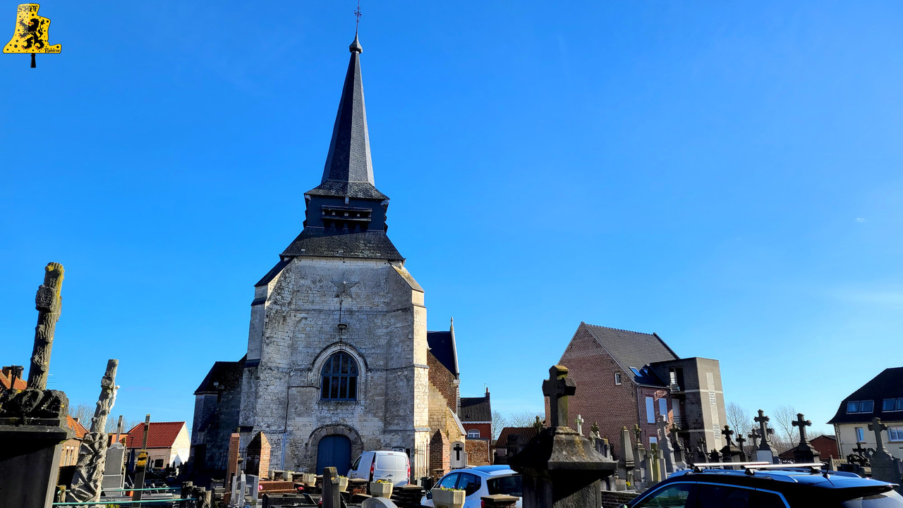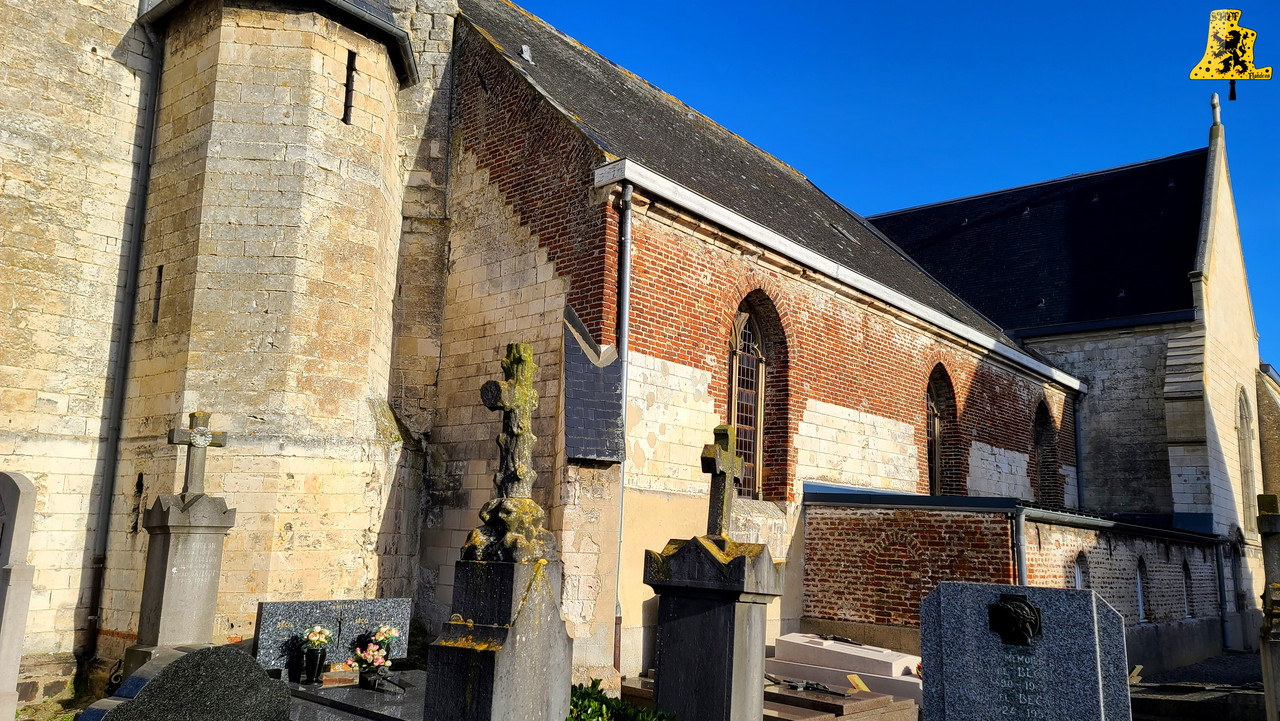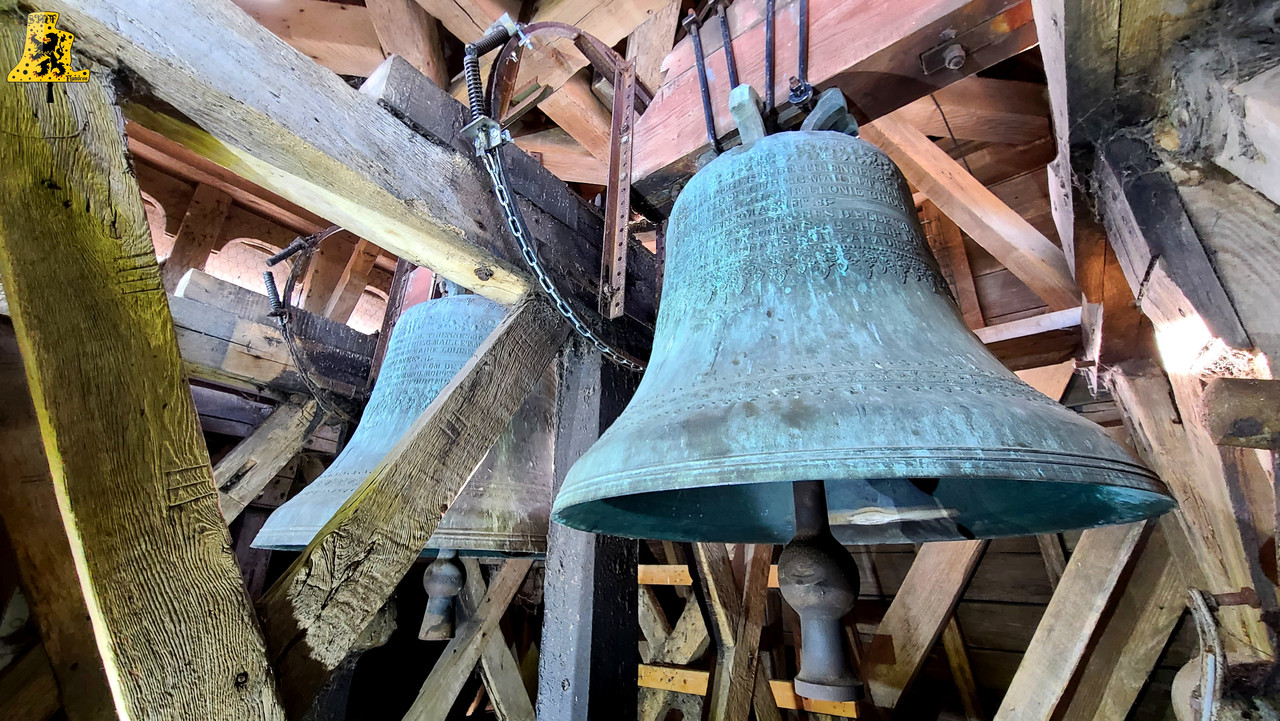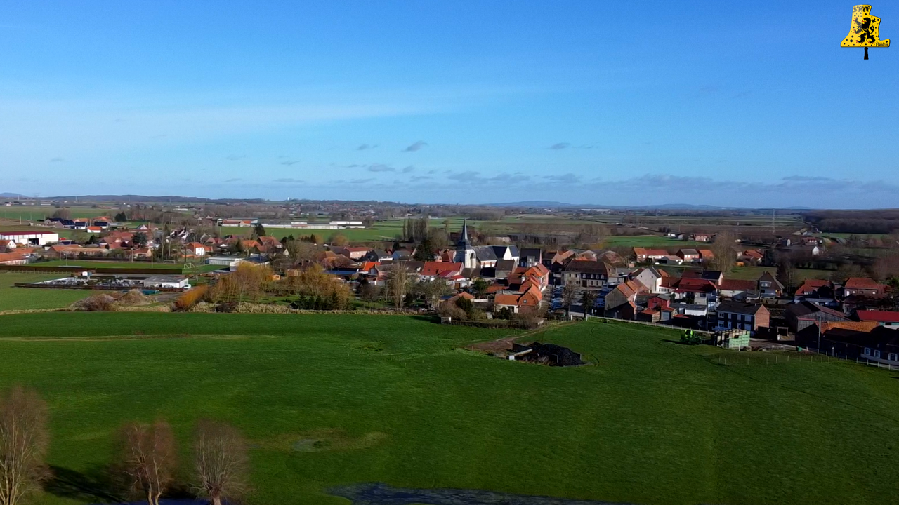 Cette nouvelle découverte m’emmène à la périphérie du Nord, à quelques dizaines de mètres du Pas-De-Calais, dont la frontière est marquée par le canal de la Lys. Bienvenue à Thiennes! Commune peuplée par 920 Thiennois et Thiennoises. L‘église du village, bien que modeste de par ses dimensions, n’en reste pas moins ravissante, et intéressante. La construction de l’édifice remonte tout de même à l’an 1 550. Bien qu’à la limite avec le Pas-De-Calais, nous ayons là, une église Hallekerque, bénéficiant de trois nefs avec, comme j’aime les appeler, ses coques de bateaux retournées en guise de plafond. C‘est choses courantes en région Flamande, et je ne peux qu’apprécier! La montée aux cloches se fait de façon simple, hormis à la toute fin, où une petite échelle métallique nous est à franchir. Dans le clocher, il y a de la place pour travailler aisément. Les cloches sont relativement récentes, mais nul doute que le clocher fut plus riche de par le passer, puisque celui-ci comptait 4 cloches. Deux cloches furent enlevées ou détruites (« Cloches Fantômes »). Il y en avait probablement une un peu plus petite que les deux actuellement en place, et une autre, bien plus petite, pesant à vue de nez, dans les 50 kg. Une modification sur la structure du beffroi a dû être faite pour l’accueillir dignement. Les cloches actuelles ont été offertes par Aimé Vanpoulle, en 1 922, elles furent bénites le 25 juin de la même année. La plus grosse des cloches affiche sur la balance, un poids respectable de 675 kg, pour un diamètre dépassant légèrement les 105 cm. Grâce aux inscriptions, nous savons que son parrain fut le donateur des deux cloches, Aimé Vanpoulle, et sa marraine, Marie-Louise Maillet. Étant donateur et parrain, cette cloche a naturellement pris le nom féminisé d’Aimé, c’est-à-dire, Aimée. Pour obtenir le poids de la plus petite des cloches, il nous suffit d’enlever 200 kg de la grosse cloche, car en effet, elle pèse 475 kg, pour un diamètre de 95 cm. Le parrain de cette cloche est Paul Vanpoulle (Encore eux), quant à sa marraine, ce fut Léonie Grioche. Pour terminer sur une bonne note, ces cloches nous chantent un Fa#3, et un Sol#3, qui s’harmonisent relativement bien. Ce fut une très sympathique découverte pour moi, car je l’attendais depuis près de 2 ans, dû aux préparatifs pour les élections municipales, ainsi qu’aux les restrictions liées au Covid. J‘ai de ce fait, dû mettre de côté ce petit projet, pour mieux repartir ensuite.