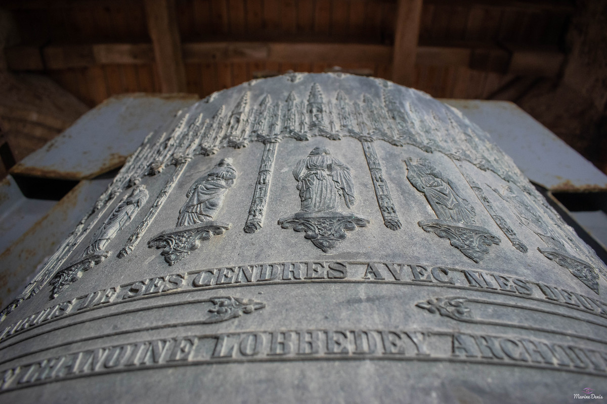 Nom: « Marie-De-L’Assomption », Diamètre 133,5 cm, Poids 1 450 kg, Fondue en 1 900 par J. Robert à Nancy, Chante le Ré3