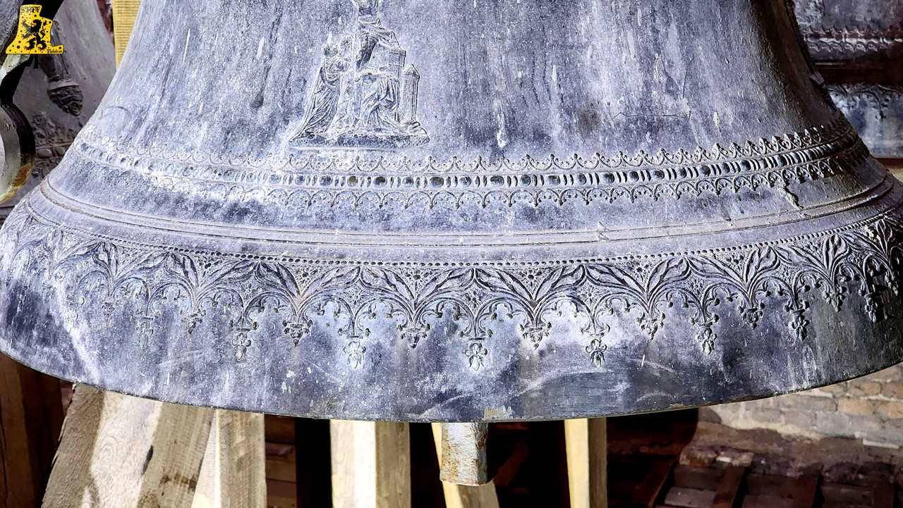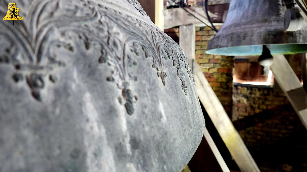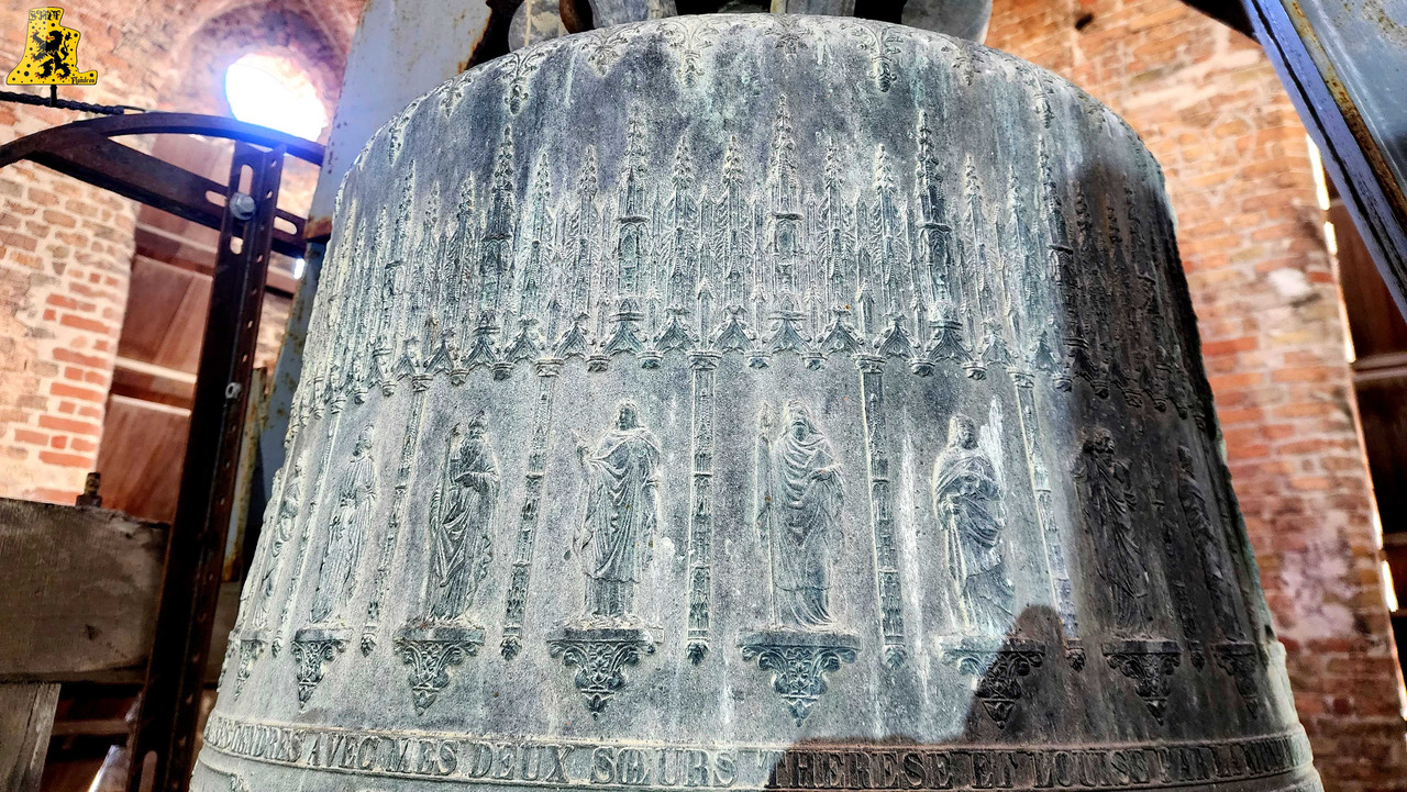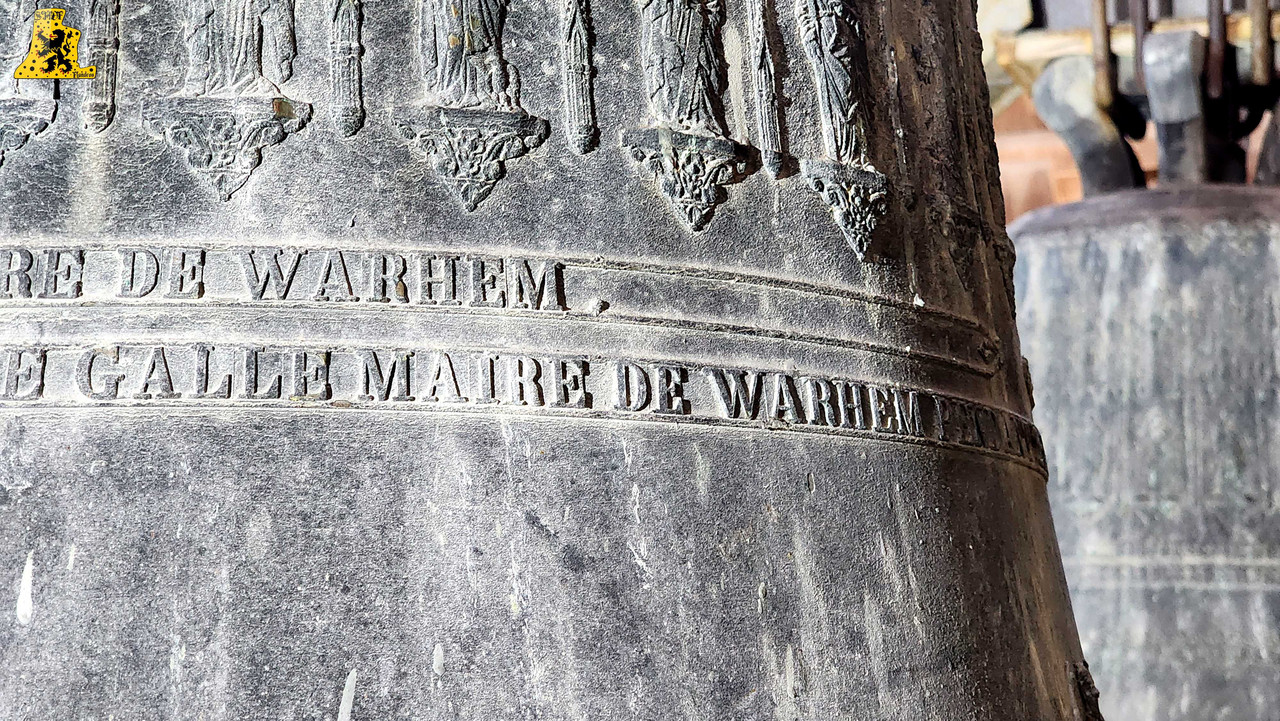 Pour cette 112e découverte campanaire à travers nos campagnes de France, c’est à Warhem que je vais avoir la grande chance de vous y raconter l’histoire des cloches, et de l’église. Lors de cette visite, j’étais accompagné de Mr Seidel, le sacristain de l’édifice, qui m’a permis d’en apprendre davantage sur l’histoire des cloches, à travers la fourniture de précieux documents. Avant toute chose, le village de Warhem se trouve à quelques kilomètres de Dunkerque, peuplé de 2 000 habitants, c’est un village où il y fait bon vivre. Ici, comme partout ailleurs dans l’extrême nord de la France, le patrimoine Flamand y est bien présent, et surtout, conservé, à l’image de son église, fraîchement restaurée. Les origines de l’église de Warhem remontent à l’an 1 208, là où les premiers offices eurent lieu. Elle subit un profond remaniement en 1 650, avec la création de deux nefs latérales, typique de la Flandre, ce style d’église est aussi appelée « Hallekerque. Pour plus d’informations sur l’histoire du lieu, je vous renvoie volontiers sur le site de la commune, qui a rédigée un article très complet à ce sujet. L‘intérieur de l’église vaut largement le détour, notamment par ses retables et son orgue de toute beauté, voyez par vous-même via les photos ci-dessous. Il nous faudra tout de même gravir 97 marches, afin d’arriver au niveaux des cloches, mais l’effort en vaut vraiment le coup. L’histoire des cloches connues, débute avant la révolution. Warhem possédait alors 3 cloches au sein de son clocher. Ces trois cloches furent descendues durant la révolution. Le clocher rasta de ce fait silencieux jusqu’en 1 814. C‘est cette année qu’une cloche fut fondue pour l’église, la fonte au lieu alors au cimetière, par les fondeurs de la fonderie Drouot. D‘après les archives communales, nos ancêtre disait qu’elle sonnait le Fa#. Cette cloche fut bénite le père De-Meyer, et était nommée « Marie-Louise ». En 1 832, le conseil de fabrique voulait acquérir une 2e cloche, pour d’une part, avoir une plus grande variété de sonneries, et d’autre part, pour appeler de plus loin les fidèles, car la petite cloche avait du mal à se faire entendre des paroissiens. C‘est alors qu’une occasion en or se présente. En effet, une des cloches du village de Wyldre (actuellement Wylder) , de taille trop conséquente pour son église et sa tour fraichement reconstruite, était alors en vente, je vous parlerais plus bas, du « Pourquoi une cloche de Wylder à Warhem? », il y a matière à en parler assez longuement. D‘un poids dit par les anciens, de 1 600 kg, il s’avéra qu’au final, en la pensant, cette cloche ne faisait « Que » 1 100 kg, mais cette cloche répondait à toutes les attentes. Elle fut vendue à Warhem pour la somme de 3 400 francs de l’époque. Cette cloche, était un véritable trésor pour nous autres, campanophiles du XXIe siècle, puisqu’elle fut fondue par Ignace de Cock, en Septembre 1 699. Catherine De Zegers-Cappel, de son nom, appartenait donc à ses tous débuts, aux paroissiens de Zergerscappel, tout ça nous le savons, grâce à l’intégralité de ses inscriptions, rédigés en Flamand. Et cela fait sens, de par la présence d’une petite cloche à Zergerscappel, fondue en 1 716, par Ignace De Cock, dont j’ai eu la chance de découvrir il y a voilà maintenant 4 ans. Elle fut choisie par le village de Wylder à la suite de la destruction de ses 3 cloches, lors de l’incendie de l’église, survenu en 1 795. Wylder avait le droit de choisir une cloche parmi tant d’autres, appartenant aux villages des environs. Ils choisirent naturellement, la plus belle des cloches, celle de Zegers’. Mais voyant que la nouvelle tour ne pouvais pas supporter la cloche, de par son poids et sa taille, la décision fut prise à contrecœur, de la vendre. Elle sonna de nombreuses années, mais en 1900, les habitants se rendirent compte que la cloche avait perdu de sa superbe, le consta est sans appel, la cloche possède une fêlure, qui ne cesse de grandir. C‘est alors que la décision fut prise de la réparer, avec l’approbation des habitants. C‘est le fondeur Jules Robert, de Nancy, qui fut choisi. C‘était une chance incroyable pour lui, de pouvoir essayer de se faire connaître en pays Flamand. Le projet de base voulait que seule la grosse soit refondue, mais lors de son expertise, Jules Robert constata que la cloche était de mauvaise qualité et usée. La décision fut donc de refondre les deux, pour former 3 cloches. Ce sont donc au total 2 850 kg de bronze qui ont été coulé, soit, 950 kg de plus que la refonte intégrale des deux cloches, comme le prévoyait le projet initial. Marie-De-L’Assomption est la plus grosse des cloches, d’un poids de 1 600 kg, cette cloche possède un diamètre de 135 cm environ. Elle a pour parrain Mr Heervader-Edouard Vandaele-Vermersh, et pour marraine, dame Octavie Clément. Pour la moyenne, pesant 800 kg, c’est Mr Henry Cochin, député de la 2e circonscription de Dunkerque, et maire de Saint-Pierre-Brouck. Sa marraine est Mme Euphémie Vendewéghe, épouse du maire de Warhem, Mr Ch. Vandeale. Cette belle cloche porte le nom de Thérèse. La petite cloche, portant les noms de Louise-Sebastien-Winoc, pèse 450 kg, son diamètre est d’environ 90 cm. Son parrain est Mr Abel Durie, abbé de Warhem, et sa marraine, Mme Louise Vermersch. Les cloches sont montées sur un très beau beffroi en bois, bien que leur type de sonnerie à la volée soit le lancé rétro-grade, leur rythme est bon, et la pureté du son est indéniable! Et que dire de leurs décors absolument somptueux! La finesse des moulures, le choix des décors, tout y est absolument majestueux! C’est un quasi sans-faute !