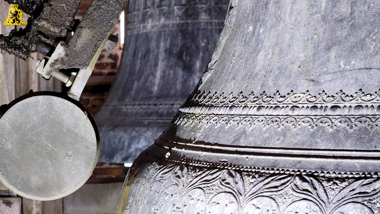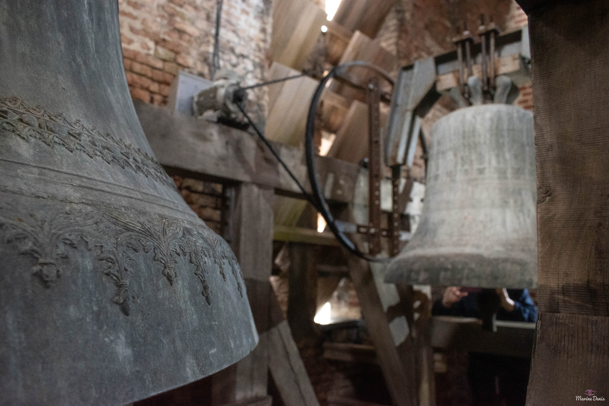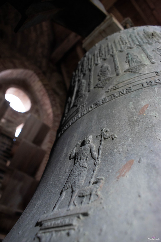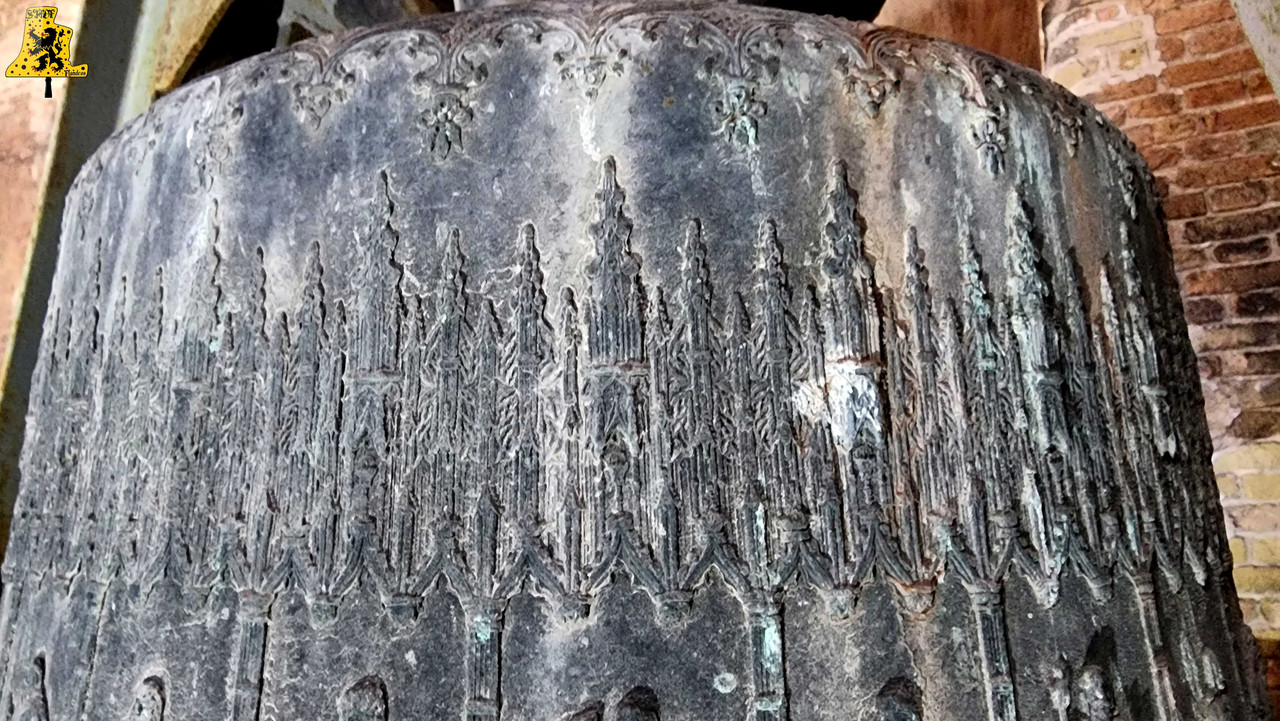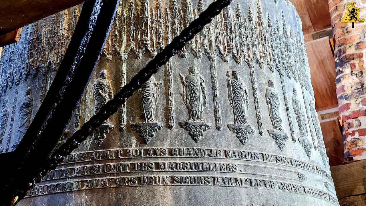 Pour cette 112e découverte campanaire à travers nos campagnes de France, c’est à Warhem que je vais avoir la grande chance de vous y raconter l’histoire des cloches, et de l’église. Lors de cette visite, j’étais accompagné de Mr Seidel, le sacristain de l’édifice, qui m’a permis d’en apprendre davantage sur l’histoire des cloches, à travers la fourniture de précieux documents. Avant toute chose, le village de Warhem se trouve à quelques kilomètres de Dunkerque, peuplé de 2 000 habitants, c’est un village où il y fait bon vivre. Ici, comme partout ailleurs dans l’extrême nord de la France, le patrimoine Flamand y est bien présent, et surtout, conservé, à l’image de son église, fraîchement restaurée. Les origines de l’église de Warhem remontent à l’an 1 208, là où les premiers offices eurent lieu. Elle subit un profond remaniement en 1 650, avec la création de deux nefs latérales, typique de la Flandre, ce style d’église est aussi appelée « Hallekerque. Pour plus d’informations sur l’histoire du lieu, je vous renvoie volontiers sur le site de la commune, qui a rédigée un article très complet à ce sujet. L‘intérieur de l’église vaut largement le détour, notamment par ses retables et son orgue de toute beauté, voyez par vous-même via les photos ci-dessous. Il nous faudra tout de même gravir 97 marches, afin d’arriver au niveaux des cloches, mais l’effort en vaut vraiment le coup. L’histoire des cloches connues, débute avant la révolution. Warhem possédait alors 3 cloches au sein de son clocher. Ces trois cloches furent descendues durant la révolution. Le clocher rasta de ce fait silencieux jusqu’en 1 814. C‘est cette année qu’une cloche fut fondue pour l’église, la fonte au lieu alors au cimetière, par les fondeurs de la fonderie Drouot. D‘après les archives communales, nos ancêtre disait qu’elle sonnait le Fa#. Cette cloche fut bénite le père De-Meyer, et était nommée « Marie-Louise ». En 1 832, le conseil de fabrique voulait acquérir une 2e cloche, pour d’une part, avoir une plus grande variété de sonneries, et d’autre part, pour appeler de plus loin les fidèles, car la petite cloche avait du mal à se faire entendre des paroissiens. C‘est alors qu’une occasion en or se présente. En effet, une des cloches du village de Wyldre (actuellement Wylder) , de taille trop conséquente pour son église et sa tour fraichement reconstruite, était alors en vente, je vous parlerais plus bas, du « Pourquoi une cloche de Wylder à Warhem? », il y a matière à en parler assez longuement. D‘un poids dit par les anciens, de 1 600 kg, il s’avéra qu’au final, en la pensant, cette cloche ne faisait « Que » 1 100 kg, mais cette cloche répondait à toutes les attentes. Elle fut vendue à Warhem pour la somme de 3 400 francs de l’époque. Cette cloche, était un véritable trésor pour nous autres, campanophiles du XXIe siècle, puisqu’elle fut fondue par Ignace de Cock, en Septembre 1 699. Catherine De Zegers-Cappel, de son nom, appartenait donc à ses tous débuts, aux paroissiens de Zergerscappel, tout ça nous le savons, grâce à l’intégralité de ses inscriptions, rédigés en Flamand. Et cela fait sens, de par la présence d’une petite cloche à Zergerscappel, fondue en 1 716, par Ignace De Cock, dont j’ai eu la chance de découvrir il y a voilà maintenant 4 ans. Elle fut choisie par le village de Wylder à la suite de la destruction de ses 3 cloches, lors de l’incendie de l’église, survenu en 1 795. Wylder avait le droit de choisir une cloche parmi tant d’autres, appartenant aux villages des environs. Ils choisirent naturellement, la plus belle des cloches, celle de Zegers’. Mais voyant que la nouvelle tour ne pouvais pas supporter la cloche, de par son poids et sa taille, la décision fut prise à contrecœur, de la vendre. Elle sonna de nombreuses années, mais en 1900, les habitants se rendirent compte que la cloche avait perdu de sa superbe, le consta est sans appel, la cloche possède une fêlure, qui ne cesse de grandir. C‘est alors que la décision fut prise de la réparer, avec l’approbation des habitants. C‘est le fondeur Jules Robert, de Nancy, qui fut choisi. C‘était une chance incroyable pour lui, de pouvoir essayer de se faire connaître en pays Flamand. Le projet de base voulait que seule la grosse soit refondue, mais lors de son expertise, Jules Robert constata que la cloche était de mauvaise qualité et usée. La décision fut donc de refondre les deux, pour former 3 cloches. Ce sont donc au total 2 850 kg de bronze qui ont été coulé, soit, 950 kg de plus que la refonte intégrale des deux cloches, comme le prévoyait le projet initial. Marie-De-L’Assomption est la plus grosse des cloches, d’un poids de 1 600 kg, cette cloche possède un diamètre de 135 cm environ. Elle a pour parrain Mr Heervader-Edouard Vandaele-Vermersh, et pour marraine, dame Octavie Clément. Pour la moyenne, pesant 800 kg, c’est Mr Henry Cochin, député de la 2e circonscription de Dunkerque, et maire de Saint-Pierre-Brouck. Sa marraine est Mme Euphémie Vendewéghe, épouse du maire de Warhem, Mr Ch. Vandeale. Cette belle cloche porte le nom de Thérèse. La petite cloche, portant les noms de Louise-Sebastien-Winoc, pèse 450 kg, son diamètre est d’environ 90 cm. Son parrain est Mr Abel Durie, abbé de Warhem, et sa marraine, Mme Louise Vermersch. Les cloches sont montées sur un très beau beffroi en bois, bien que leur type de sonnerie à la volée soit le lancé rétro-grade, leur rythme est bon, et la pureté du son est indéniable! Et que dire de leurs décors absolument somptueux! La finesse des moulures, le choix des décors, tout y est absolument majestueux! C’est un quasi sans-faute !