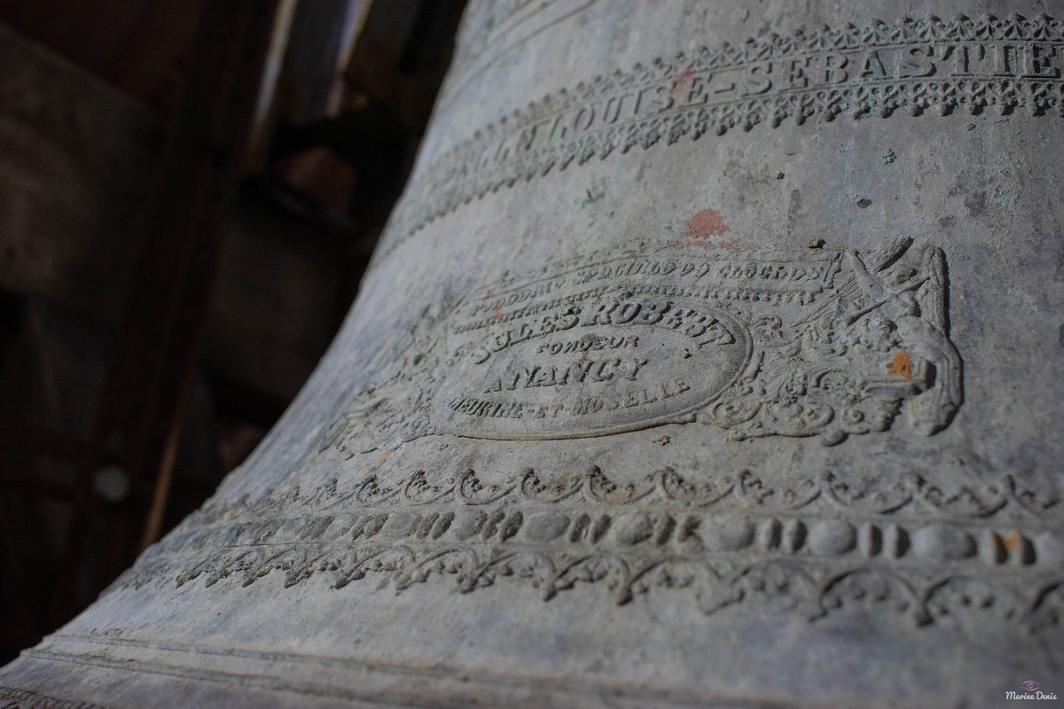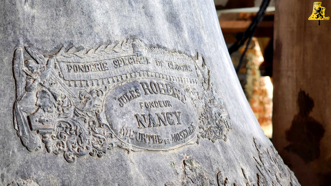 Nom: « Thérèse », Diamètre 105,6 cm, Poids 680 kg, Fondue en 1 900 par J. Robert à Nancy, Chante le Fa#3