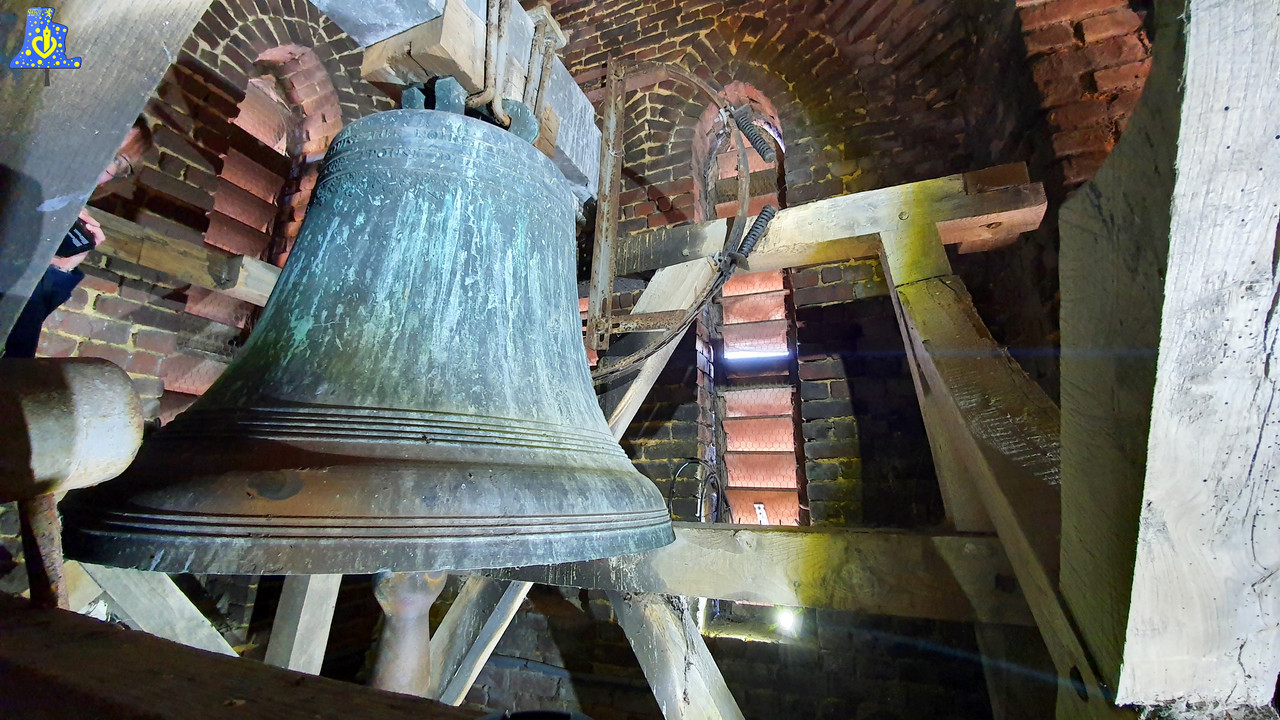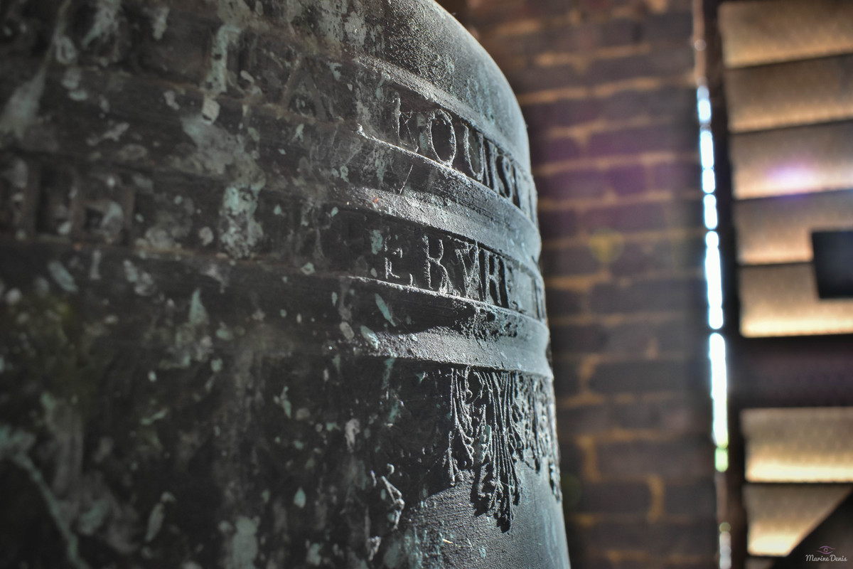 Après deux très très très longues semaines rester confiné à la maison, dû au COVID19, c’est avec beaucoup de joie, et d’impatience que nous nous sommes rendu le Samedi 16 mai, en l’église de Wittes. Cette visite marque deux choses. Tout d’abord, la reprise de mon activité campanaire dans les clochers du Nord, et la seconde, la mise a disposition des photos en ultra haute qualité, chose que je ne faisait pas avant le confinement. Les choses étant mises aux claires après cette pause forcée, je peux enfin vous parler de la seule et unique cloche du Village. Tout d’abord, avant d’accéder à la chambre, nous allons devoir gravir les marches qui nous mèneront jusqu’à notre but, 15 mètres plus haut. Nous avons peu de place pour travailler de façon rapide, puisque ce clocher est assez fin, et son beffroi occupe la totalité de la chambre, nous devons donc circuler sous le beffroi, et sous la cloche pour faire les petits relevés de base. Que dire sur cette petite cloche, La Louise, comme elle se nomme, nous chante un très agréable La3. Elle fut fondue par un certain Garnier, qui officiait alors, à Saint-Omer, chose assez atypique sur cette signature, le « A » veut se faire la malle, personnellement, je trouve ça plutôt joli, ça donne certain un cachet à cette vénérable cloche de l’an 1 830. Pour en finir, passons aux mensurations: la cloche mesure presque 90 cm de diamètre, pour un poids estimé à 455 kg, une bonne cloche en soi. Cette visite inaugure une nouvelle méthode d’enregistrement audio des cloches. En effet, ce ne sont plus un, mes deux enregistreurs qui enregistrent, au plus près de la cloche, pour capter les moindres détails, ainsi que les vibrations que les cloches ont à nous transmettre… C‘est donc une vidéo inaugurale.